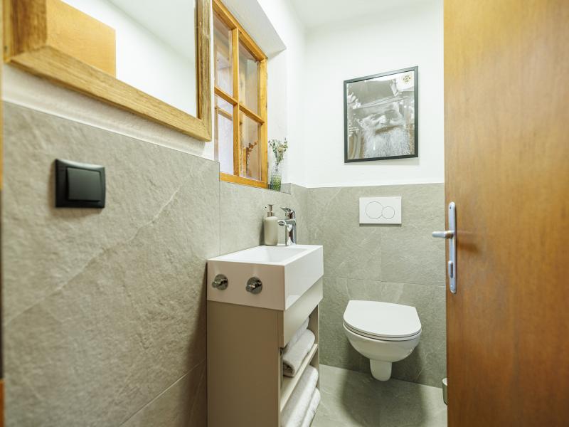 In der 1. Etage: Schlafzimmer mit Doppelbett(180 x 200 cm), Etagenbett(90 x 200 cm) , Schlafzimmer mit Einzelbett(90 x 200 cm), Doppelbett(180 x 200 cm) , Schlafzimmer mit Doppelbett(180 x 200 cm), 1x Kinderbett (exkl. Bettwäsche) , Badezimmer mit Dusche, Waschbecken , Toilette mit Waschbecken, Toilette , Balkon
