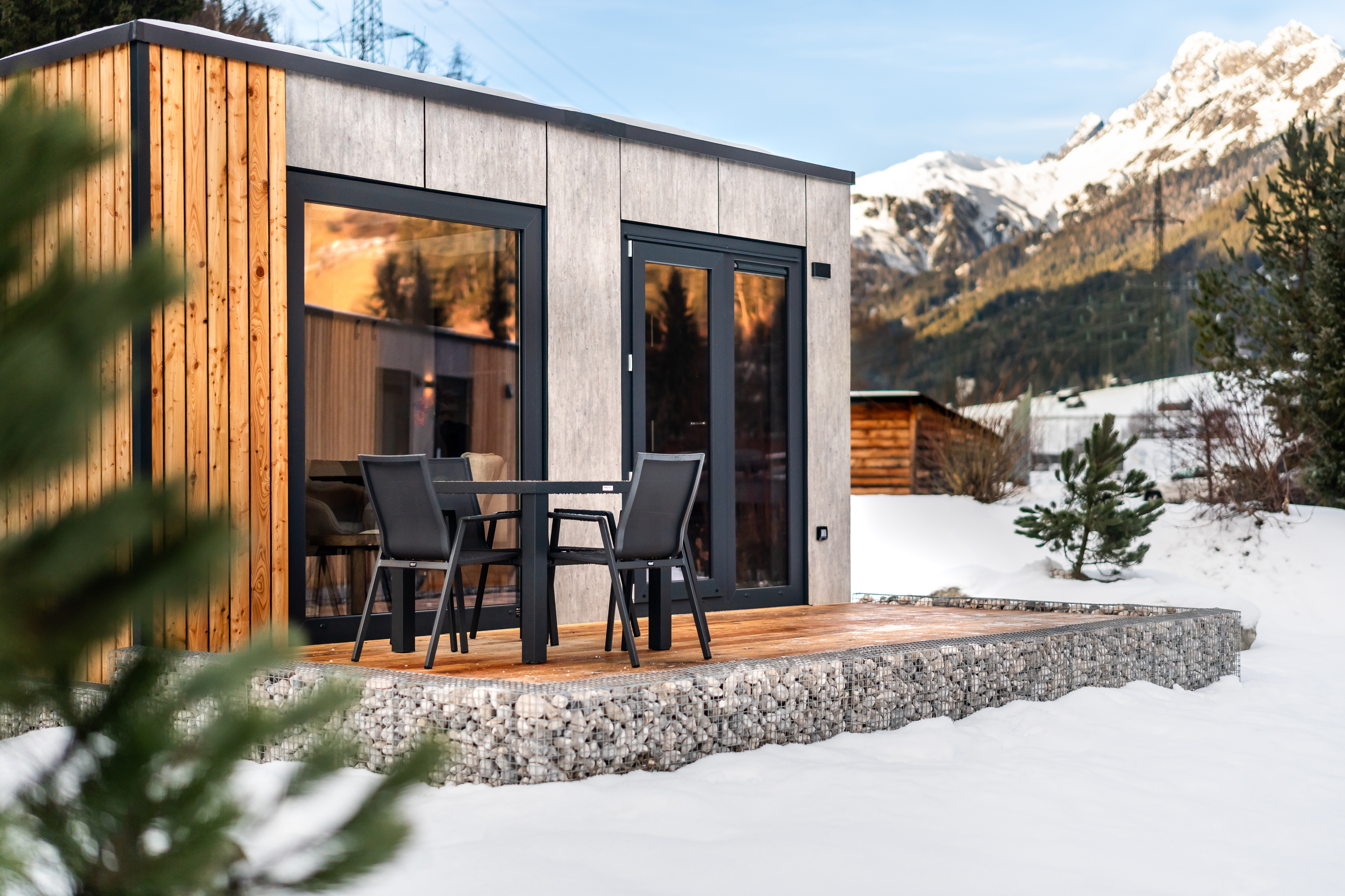 Bitte beachten Sie: Die Stanzertal Cabins befinden sich derzeit im Bau. Die verwendeten Bilder sind künstlerische Eindrücke und können von der endgültigen Gestaltung abweichen.