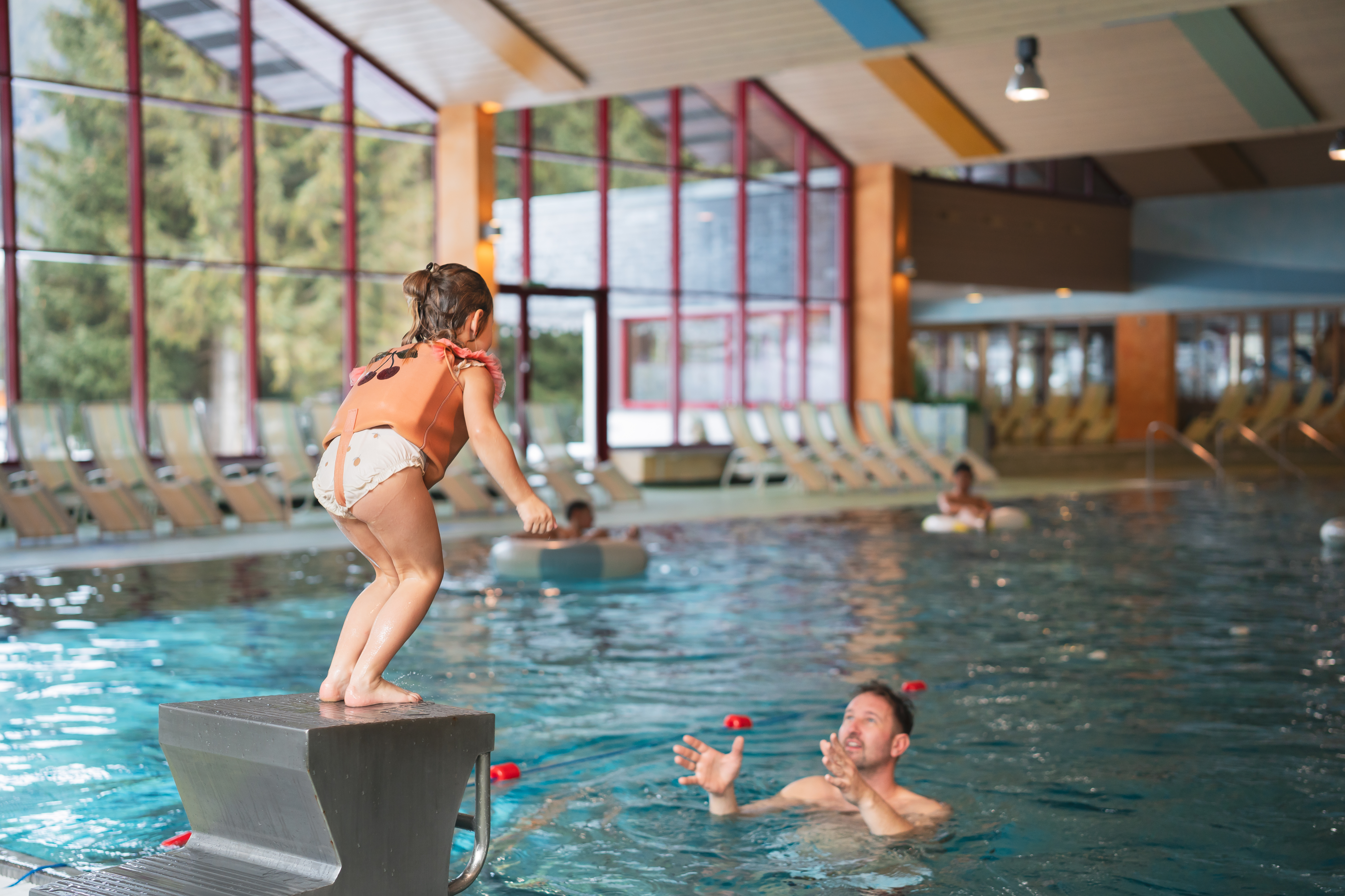 Genießen Sie Wasserspaß im Schwimmbad mit separatem Planschbecken im Wellnesspark Pettneu, der sich direkt neben dem Park befindet. Gegen eine zusätzliche Gebühr können Sie auch umfangreiche Wellnesseinrichtungen wie eine finnische Sauna, ein Dampfbad und eine Infrarotkabine nutzen. Die Eintrittskarte für das Schwimmbad ist an der Rezeption unseres Parks erhältlich. Hinweis: Dieser Service ist nur auf den Unterkünften und den Stellplätzen Valluga & Arlberg-Campingplätzen inbegriffen, nicht auf den normalen Campingplätzen ohne Privatsanitär.