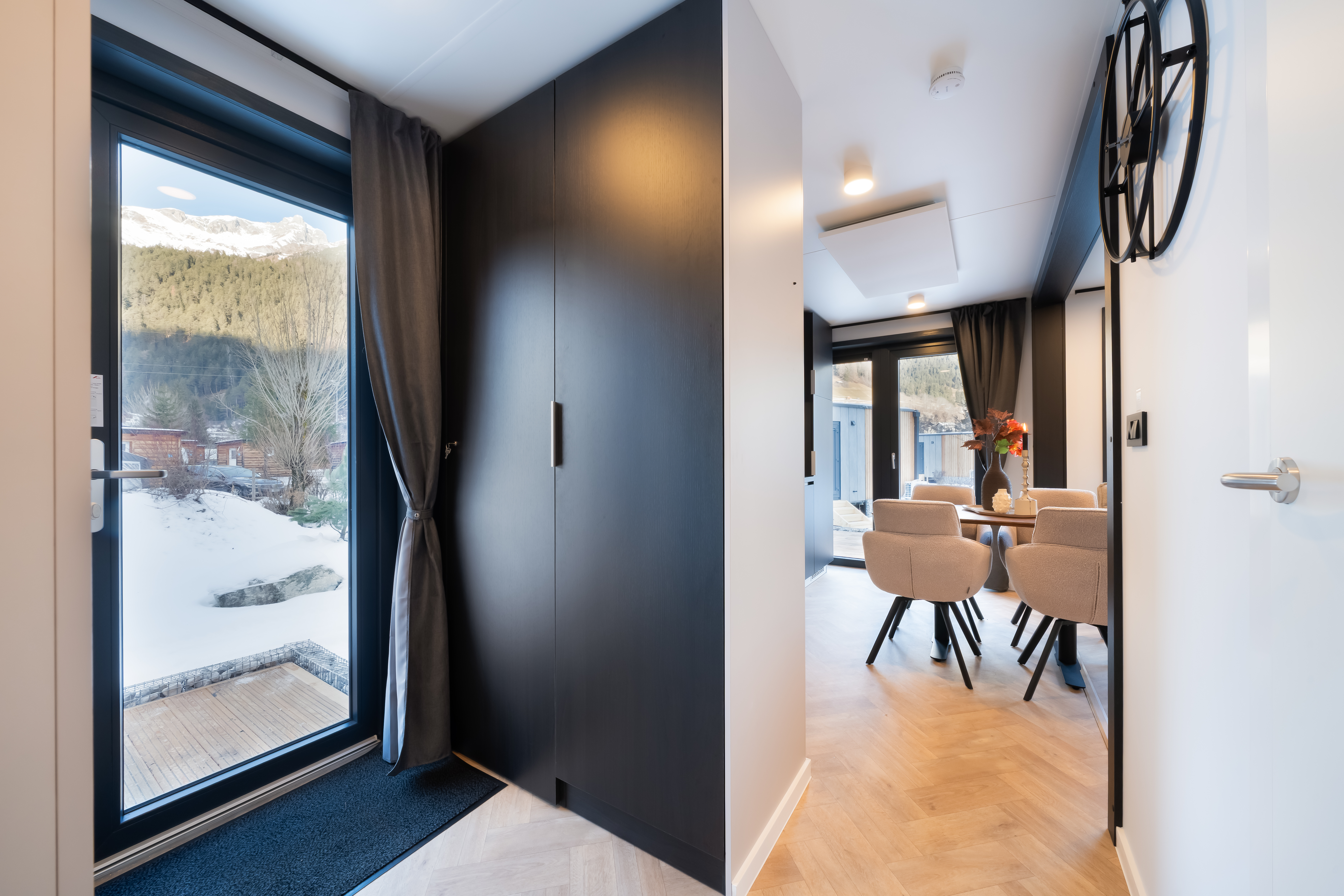Auch draußen lässt es sich herrlich genießen. Auf der großzügigen Terrasse mit Gartenmöbeln kannst du in aller Ruhe entspannen und den Blick auf die imposanten Alpen genießen. Die Cabin wurde nachhaltig gebaut und fügt sich dank der Verwendung natürlicher Materialien perfekt in die grüne Umgebung ein. Mit Annehmlichkeiten wie Fußbodenheizung, Klimaanlage, einem Smart-TV mit Netflix und Videoland sowie kostenlosem WLAN ist diese Unterkunft zu jeder Jahreszeit bestens ausgestattet. Wintersportler schätzen den beheizten Skischrank, in dem die gesamte Ausrüstung warm und trocken bleibt. Und noch besser: Der Skibus hält direkt vor dem Resort und bringt dich in nur sieben Minuten zur Seilbahn von St. Anton am Arlberg.