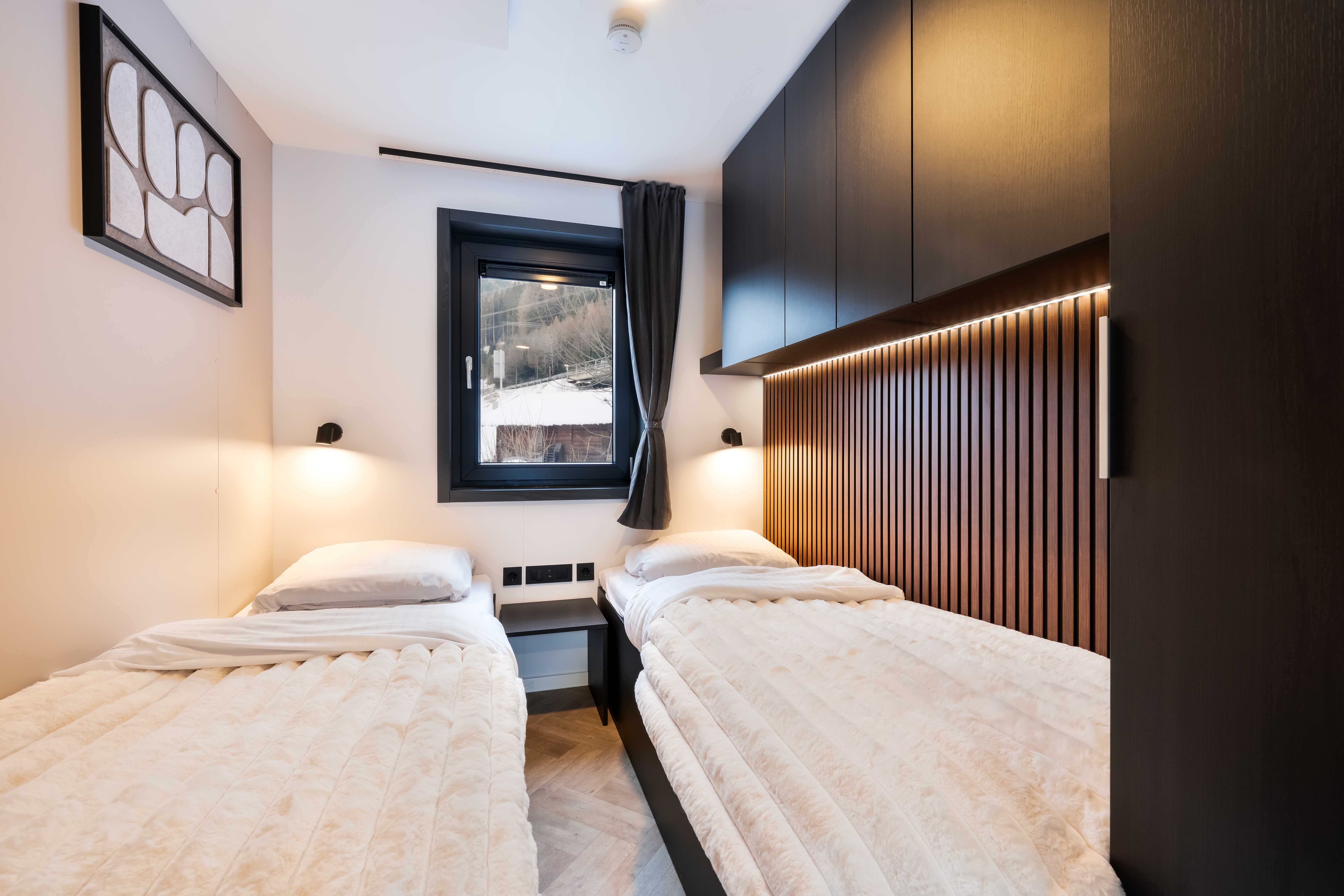 Die Stanzertal Cabin auf Camping Arlberg ist ein wunderbarer Ort für alle, die Komfort, Natur und Ruhe lieben. Die moderne Holzhütte ist stimmungsvoll mit warmen Farbtönen und natürlichen Materialien eingerichtet, die eine entspannte Atmosphäre schaffen. Im Inneren findest du ein helles Wohnzimmer mit gemütlicher Sitzecke und Esstisch, eine komplett ausgestattete Küche mit Induktionskochfeld, Geschirrspüler und Backofen sowie zwei schöne Schlafzimmer mit luxuriösen Betten. Das moderne Badezimmer verfügt über eine Dusche, ein Waschbecken und eine Toilette. Alles ist mit Liebe zum Detail eingerichtet, sodass du dich sofort wie zu Hause fühlst. Während deines Aufenthalts hast du freien Zugang zum Schwimmbad; die Wellnesseinrichtungen sind gegen Gebühr nutzbar.