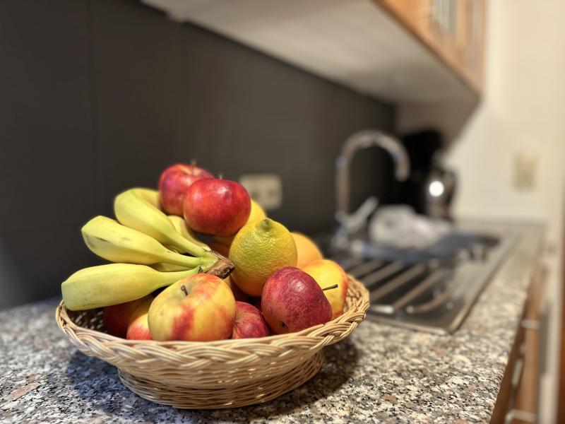 Parterre: Eingang, Küche mit Wasserkocher, Kochherd(4 Kochplatten, Ceranfeld), Dunstabzugshaube, Kaffeemaschine(Filter), Backofen, Mikrowelle, Kühlschrank , Wohn/Esszimmer mit TV(Flatscreen, Satellit), Esstisch, Sitzecke , Badezimmer mit Badewanne, 2x Waschbecken, Dusche, Toilette , Abstellraum mit Waschmaschine, Staubsauger, Bügelbrett, Bügeleisen In der 1. Etage: Schlafzimmer mit Doppelbett(180 x 200 cm) , Schlafzimmer mit Doppelbett(180 x 200 cm) , Schlafzimmer mit Doppelbett(180 x 200 cm), Etagenbett(90 x 200 cm) , Badezimmer mit Waschbecken, Dusche, Toilette, Toilette Heizung(Fernwärme), Terrasse(30 m2), Garten(nicht umzäunt, 1000 m2), Gartenmöbel, BBQ(Holzkohle), 4x Parkplatz, Liegestühle, Rutsche, 1x Kinderbett (inkl. Bettwäsche ), 1x Hochstuhl, Sonnenschirm, Schaukel