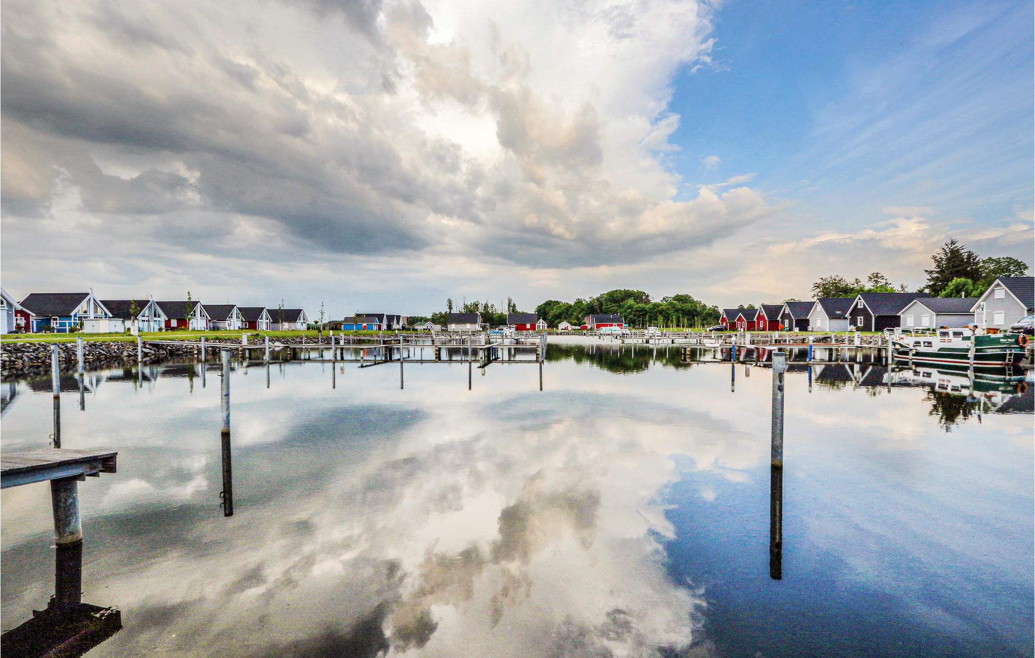Das Hafendorf Zerpenschleuse ist noch im Bau, so dass es zu Bautätigkeiten in der Nachbarschaft kommen kann. Bootsanlegeplatz am Hafen.