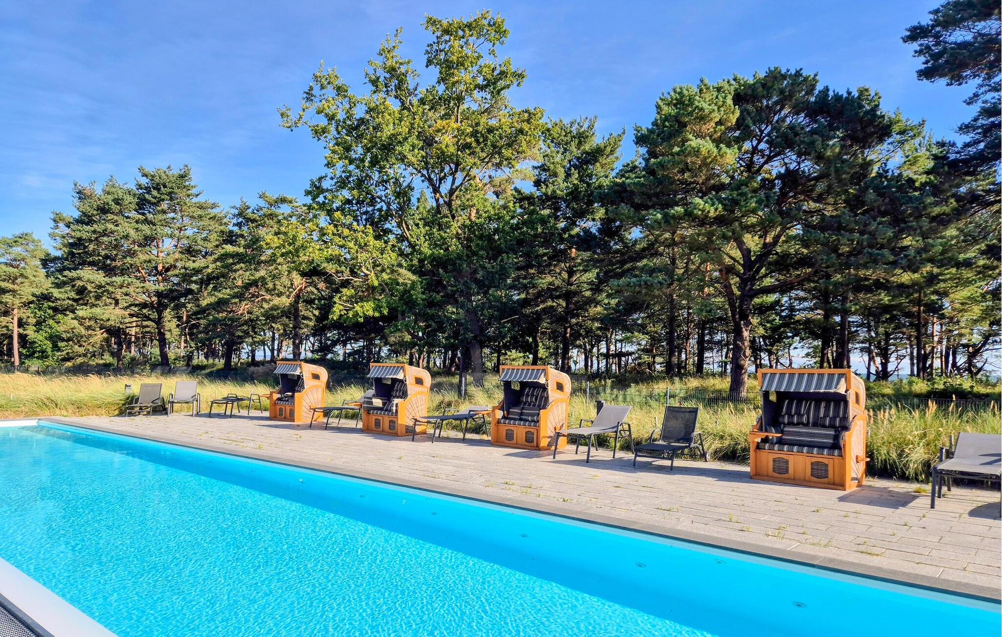 Den großzügigen Wellnessbereich von Prora Solitaire erreichen Sie von Ihrer Wohnung aus, hier laden Innenpool, Saunen und Ruhebereiche zum Entspannen ein, mehrmals die Woche können Sie an Yogakursen oder Fitnesstraining teilnehmen. Für die Kleinsten gibt es einen sehr schönen Spielplatz.