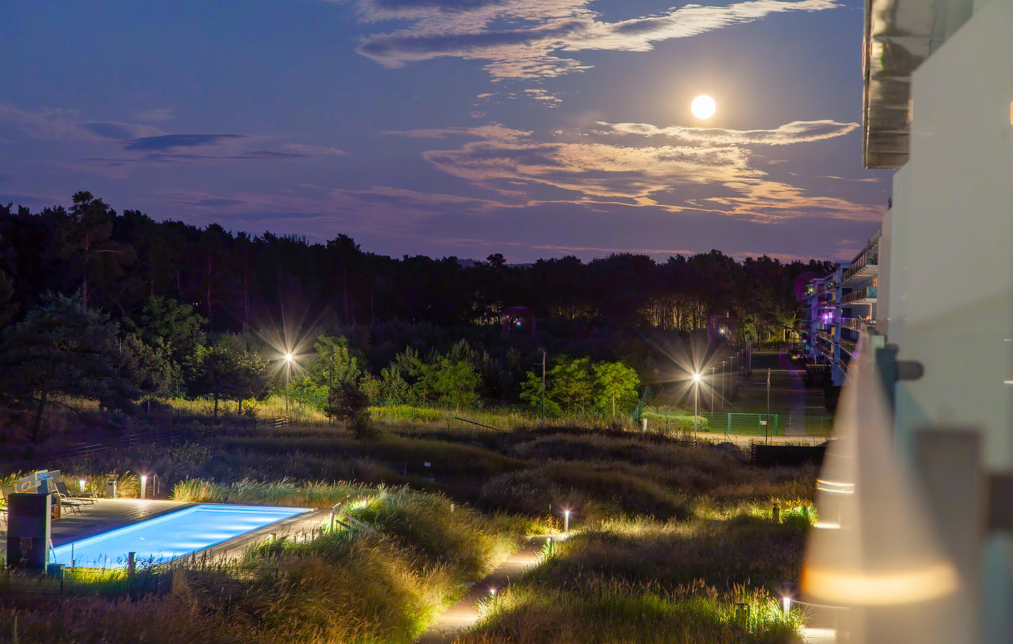Genießen Sie vom Balkon einen schönen Blick auf den Park und den Kiefernwald bis hin zur Ostsee.