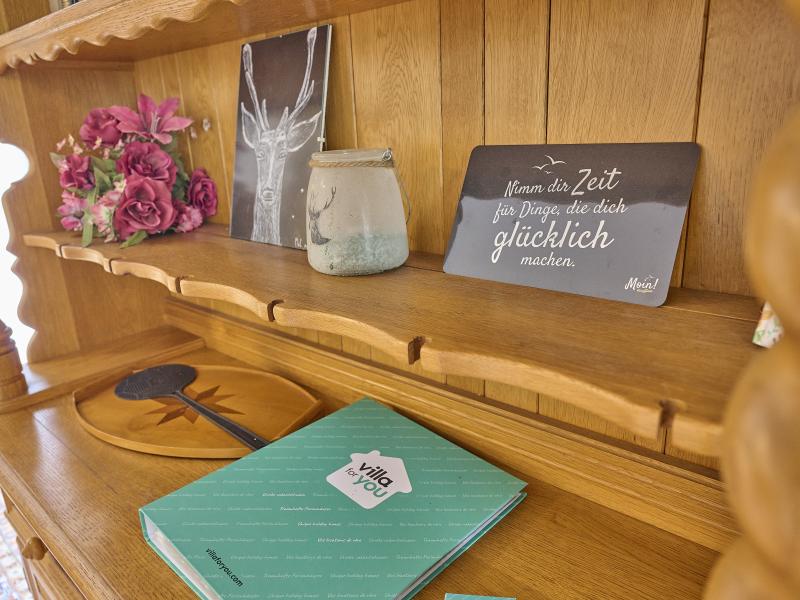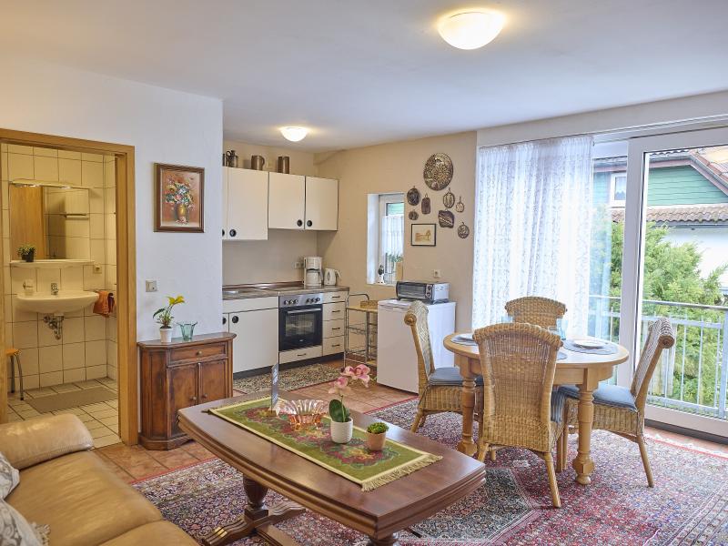 In der 1. Etage: offene Küche mit Wasserkocher, Toaster, Kochherd(4 Kochplatten, Ceranfeld), Kaffeemaschine(Filter), Backofen, Kühlschrank, Zitruspresse , Wohn-/Schlafzimmer mit Einzelbett(100 x 200 cm), Doppelbett(180 x 200 cm), TV(Flatscreen, Satellit), Esstisch, Sitzecke , Badezimmer mit Waschbecken, Dusche, Toilette Wäschetrockner(Gemeinschaftliche Nutzung mit dem Eigentümer und anderen Gästen , gegen Gebühr), Waschmaschine(Gemeinschaftliche Nutzung mit dem Eigentümer und anderen Gästen , gegen Gebühr), Heizung(Öl), Terrasse(Gemeinschaftliche Nutzung mit dem Eigentümer und anderen Gästen ), Garten(Gemeinschaftliche Nutzung mit dem Eigentümer und anderen Gästen , nicht umzäunt), Gartenmöbel, 1x Parkplatz, Teich, 1x Kinderbett (exkl. Bettwäsche), 1x Hochstuhl