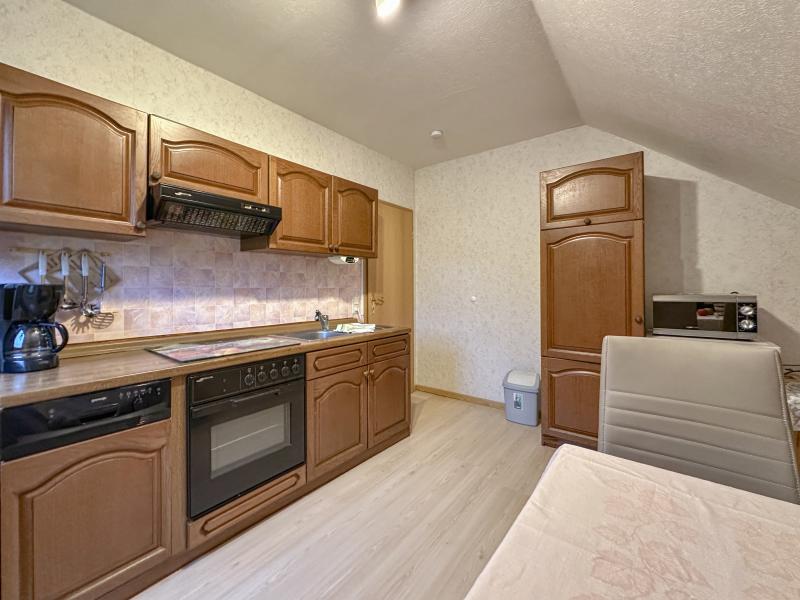 In der 1. Etage: Küche mit Esstisch, Wasserkocher, Toaster, Kochherd(Ceranfeld, elektrisch), Dunstabzugshaube, Kaffeemaschine(Filter), Backofen, Mikrowelle, Geschirrspüler, Kühlschrank, Tiefkühlschrank , Wohn-/Schlafzimmer mit Doppelschlafcouch, TV(Satellit), Sitzecke, Radio , Schlafzimmer mit Einzelbett, Doppelbett(180 x 200 cm) , Badezimmer mit Waschbecken, Dusche, Toilette, Föhn , Flur Heizung(Zentral, Öl), Terrasse, Garten(alleinige Nutzung, teilweise umzäunt, 30 m2), Gartenmöbel, BBQ(auf Anfrage, Holzkohle), 1x Parkplatz, 1x Kinderbett (inkl. Bettwäsche ), 1x Hochstuhl, Gesellschaftsspiele, Spielzeug, Fliegengitter, Sonnenschirm