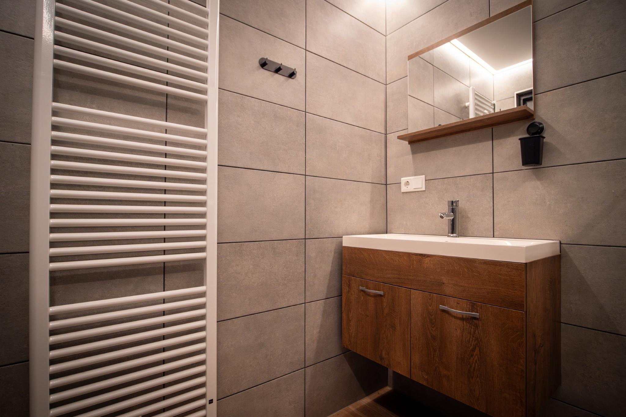 - Badezimmer: Mit Dusche, Waschbecken und WC ausgestattet.