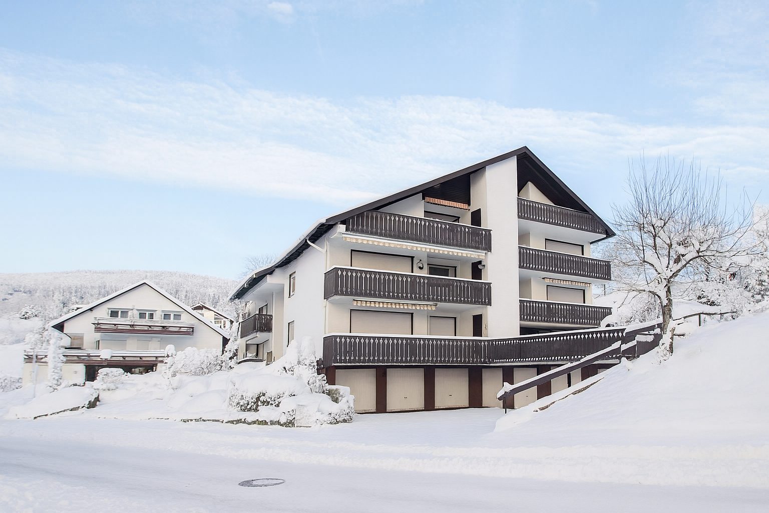Das Haus liegt in einer ruhigen Seitenstraße oberhalb vom Ortskern von Niedersfeld.