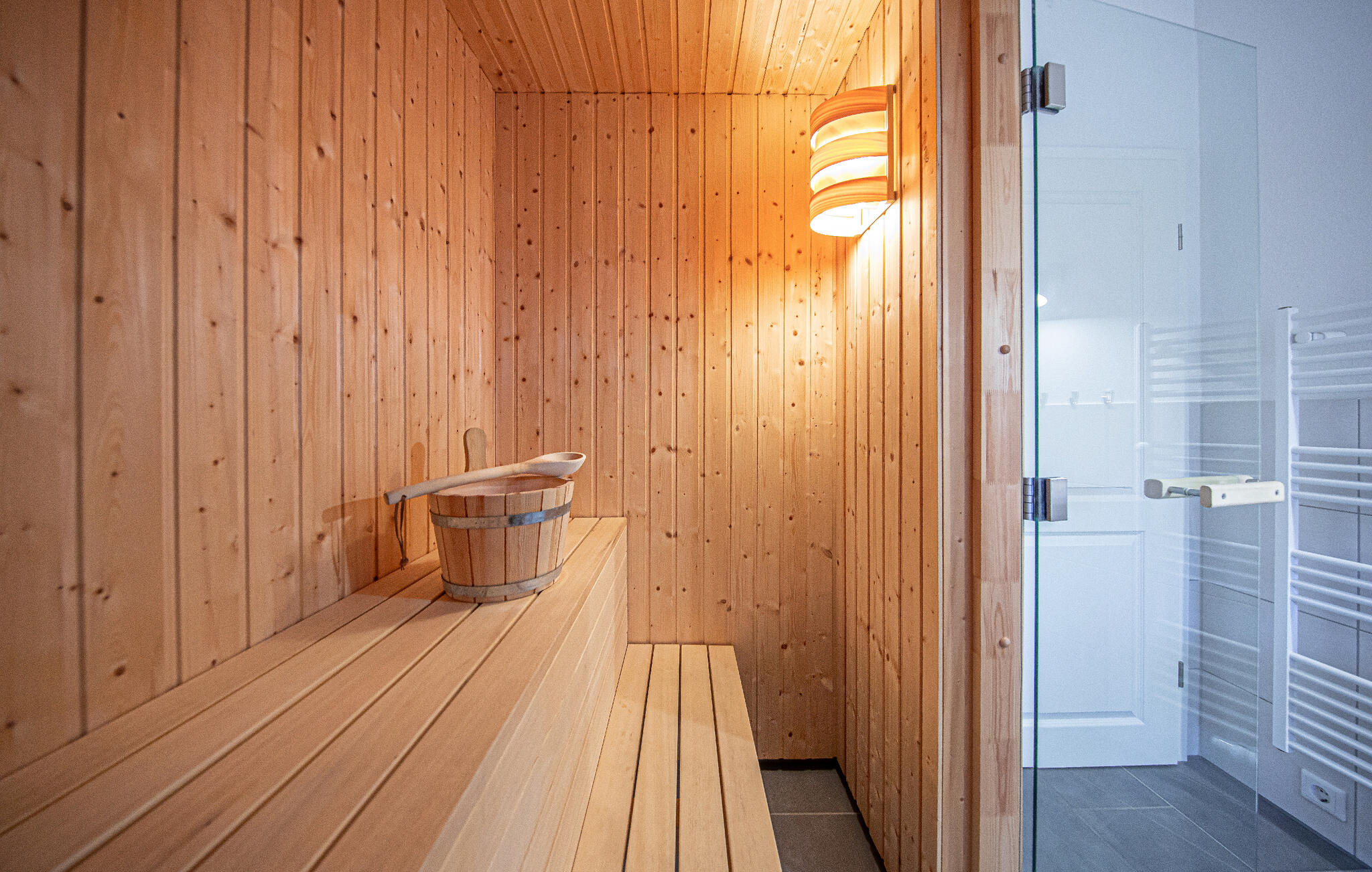 Auf der großzügigen Terrasse mit Hängematte können Sie herrlich entspannen und mit der ganzen Familie frühstücken. An verregneten Tagen können Sie sich in der Sauna aufwärmen und es sich anschließend vor dem Kaminofen im Wohnbereich gemütlich machen.