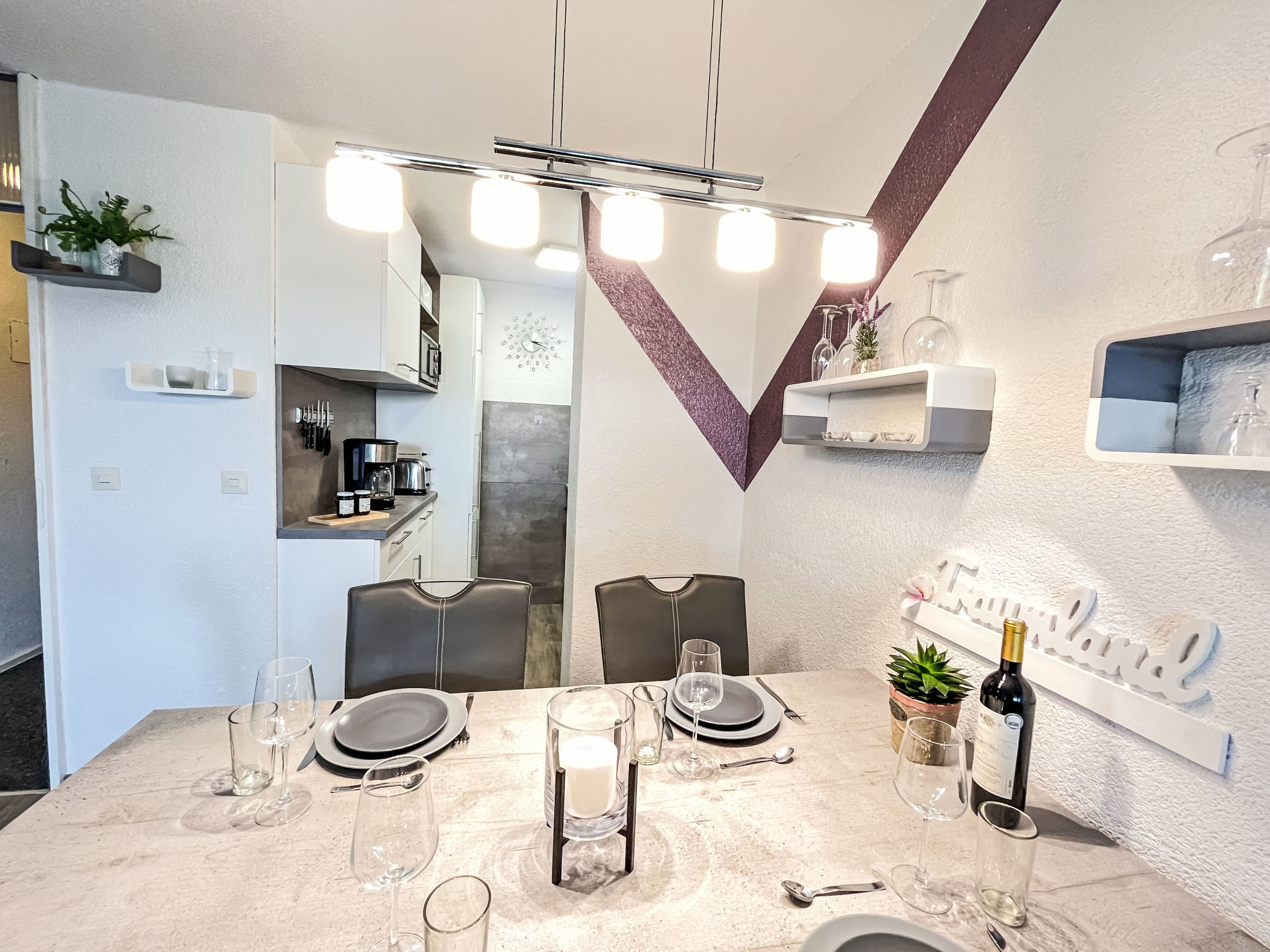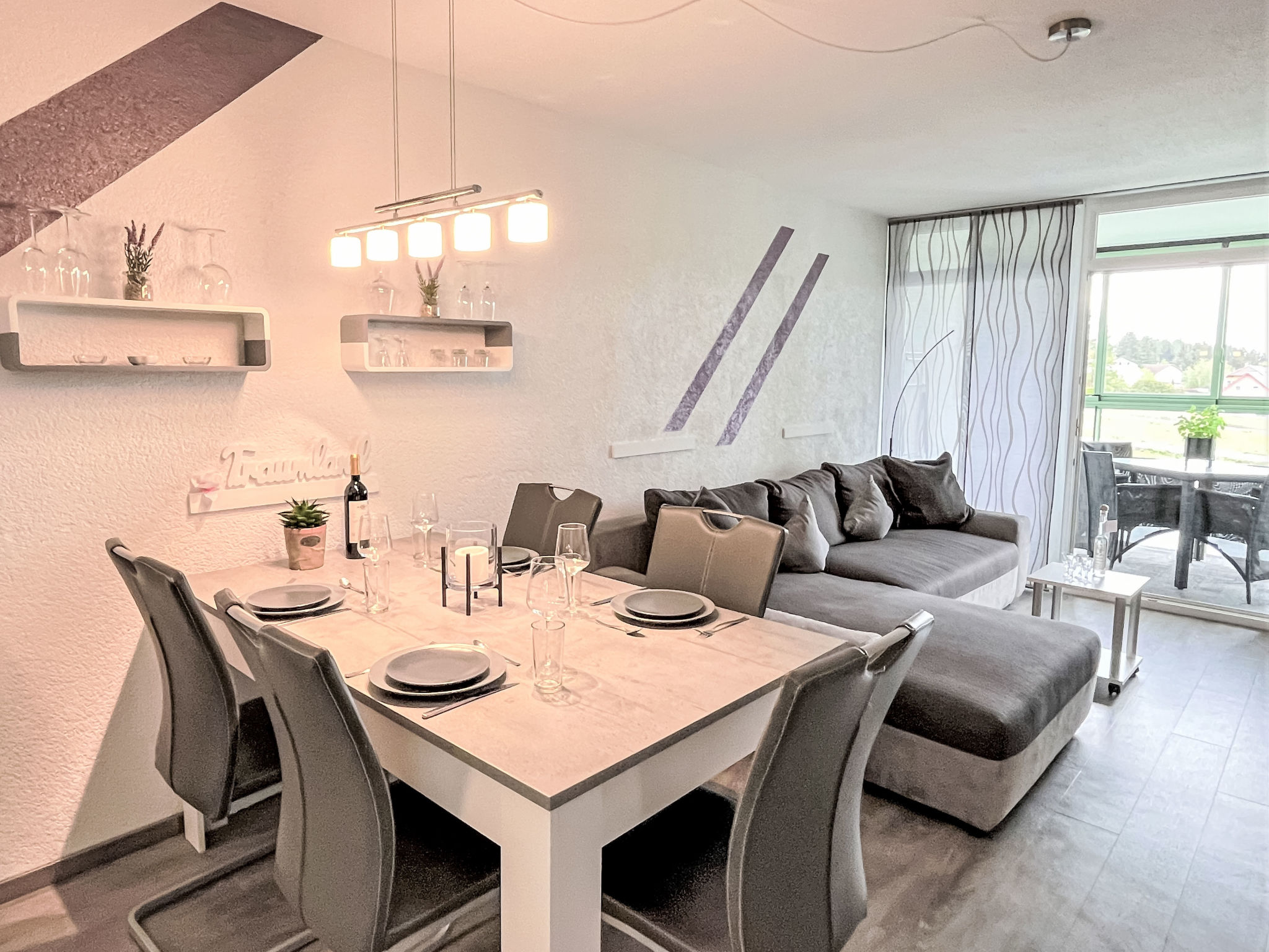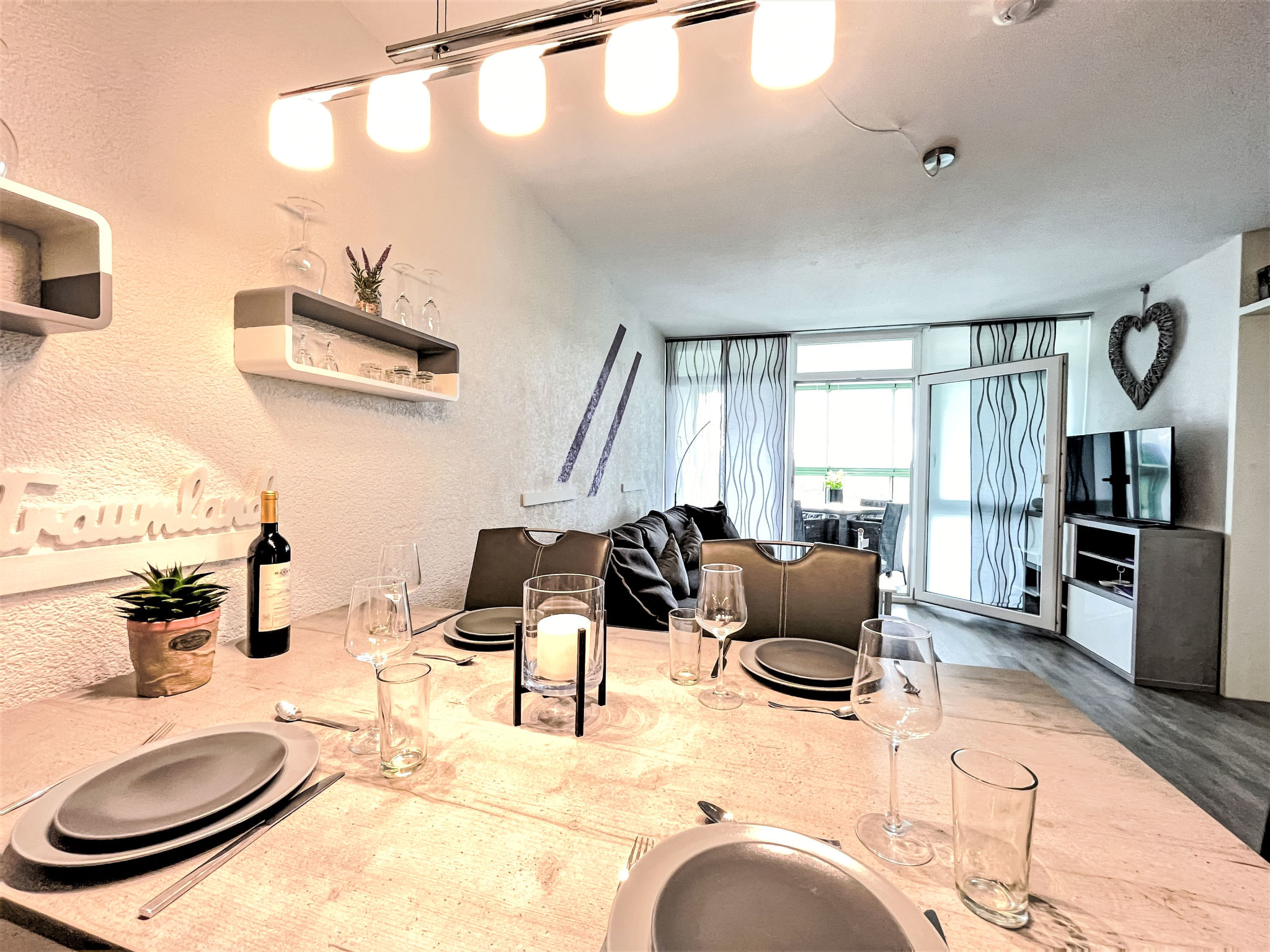 - Die Wohnung ist sehr geschmackvoll eingerichtet und nicht mit Möbeln überladen.