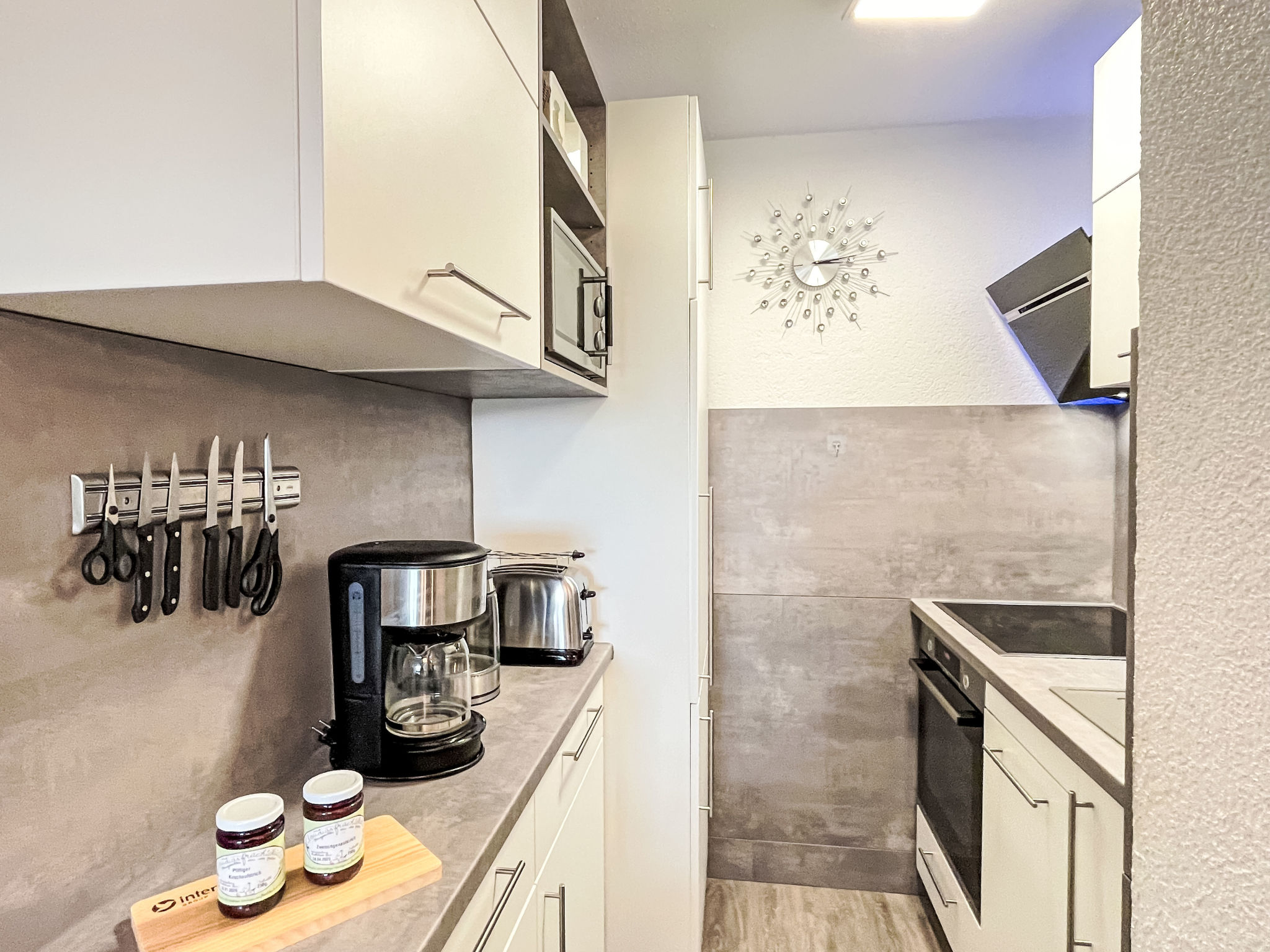 Firm I. - Aufenthaltsdauer: 12.07.2021 De appartement is super netjes, schoon en leuk ingericht. Het heeft mooi uitzicht. De keuken is compleet met vaatwasser, genoeg borden bestek en glazen. We missen alleen nog de Hollandse kaasschaaf. Badkamer is ook schoon. Jammer dat er geen WiFi is. We kunnen s avond geen tv kijken omdat alle zenders in duits wordt gesproken.