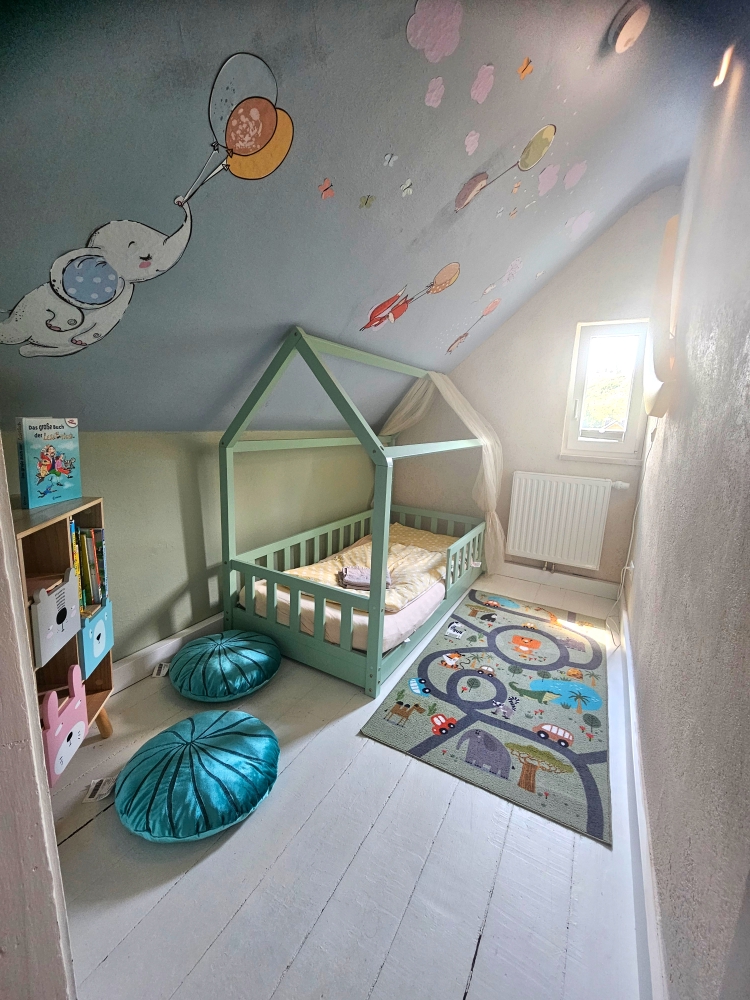 • Bettgröße 180x200 (Matratzengröße 90x200), Kinderzimmer: Hausbett 80x160, Außziehbett: 80x200 auf 160x200)