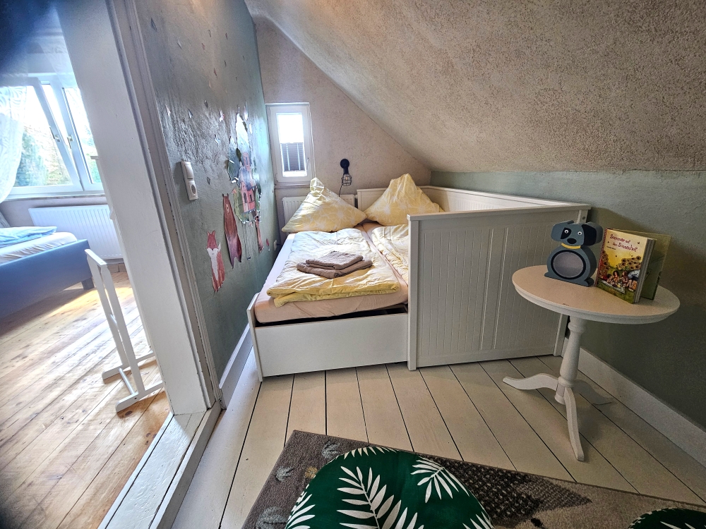 Ein eingezäunter, großzügiger Garten mit 600 qm lädt zum Entspannen und Durchatmen ein, während die gemütliche Grillkota für gesellige Abende sorgt. Für kleine Entdecker bietet ein eigener Spielplatz ausreichend Raum zum Toben und Erleben.