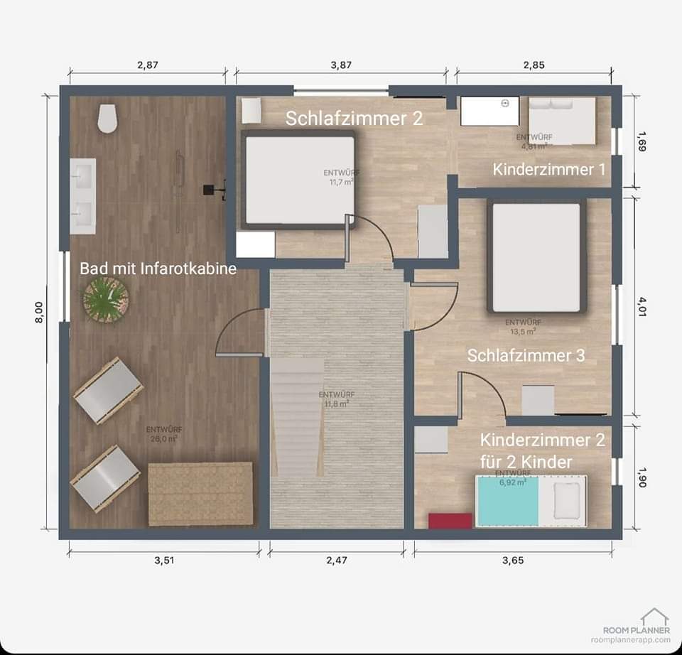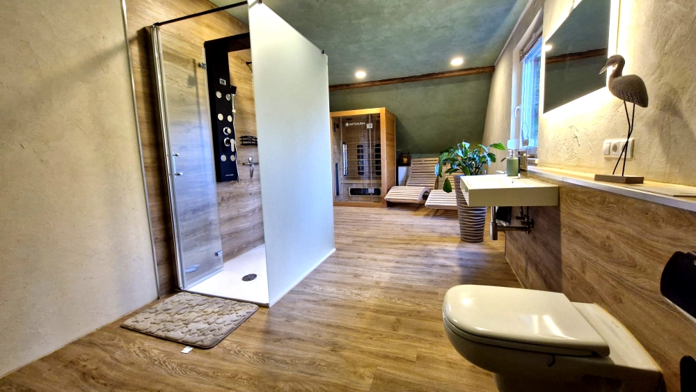 • Wellness-Oase im OG mit begehbarer Regendusche und Infrarotkabine sowie WC