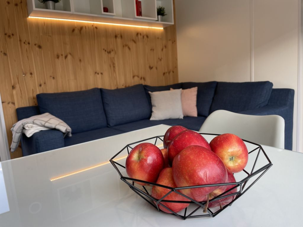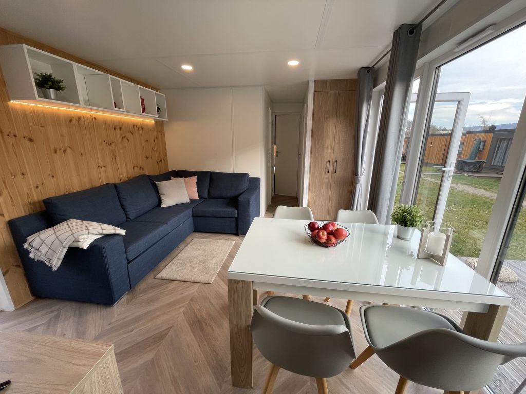 "Tiny Haus Burgblick", 3-Zimmer-Mobilheim 32 m2. Gemütlich eingerichtet: Wohn-/Schlafzimmer mit (120 cm, Länge 170 cm), Sat-TV. Ausgang zur Terrasse. 1 Zimmer mit 1 franz. Bett (140 cm, Länge 200 cm). 1 Zimmer mit 2 Betten (80 cm, Länge 200 cm). Offene Küche (4 Glaskeramikplatten, Wasserkocher, elektrische Kaffeemaschine). Dusche/WC. E-Heizung. Kleine Terrasse. Terrassenmöbel. Parkplatz beim Haus. Bitte beachten: Nichtraucher-Haus. Maximal 2 Haustiere/Hunde erlaubt.