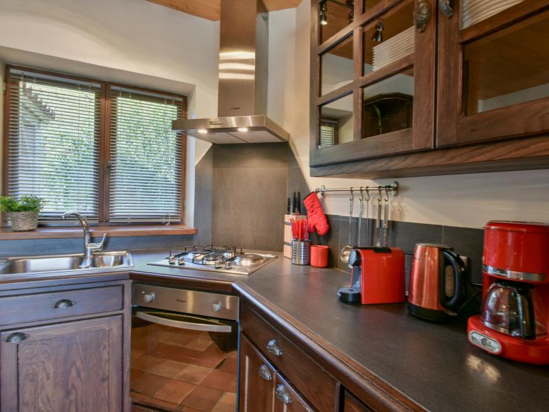 Parterre: Wohnzimmer mit TV, Ofen(Holz), Sitzecke , Esszimmer mit Esstisch , offene Küche mit Kochherd(4 Kochplatten, Gas), Dunstabzugshaube, Kaffeemaschine(Filter, nespresso cups), Backofen, Mikrowelle, Geschirrspüler, Kühl-/Gefrierkombination , Schlafzimmer mit Doppelbett(160 x 200 cm) , Badezimmer mit Dusche, Waschbecken , Toilette, Balkon oder Terrasse Souterrain: Schlafzimmer mit Doppelbett(140 x 190 cm) , Schlafzimmer mit 2x Einzelbett , Schlafzimmer mit Badezimmer mit Doppelbett(160 x 200 cm), Dusche, Waschbecken , Badezimmer mit Badewanne mit Dusche, 2x Waschbecken, Toilette , Toilette Gartentüren, Terrasse, Garten(nicht umzäunt, 7000 m2), Gartenmöbel, Liegen, 1x Parkplatz, Parasol, Pool(alleinige Nutzung, Wasseralarm, 10 x 5 m., Tiefe: 1.5m, geöffnet von Apr bis einschließlich Sep)