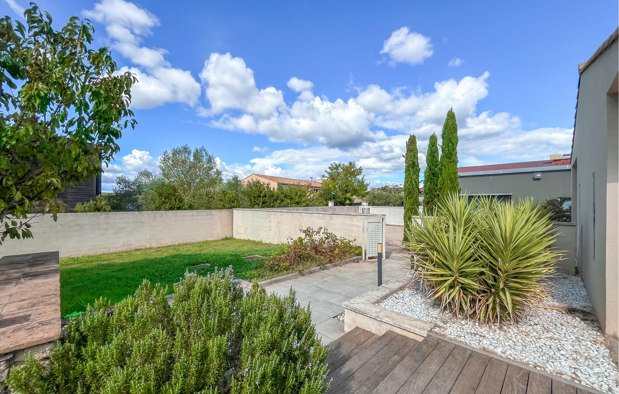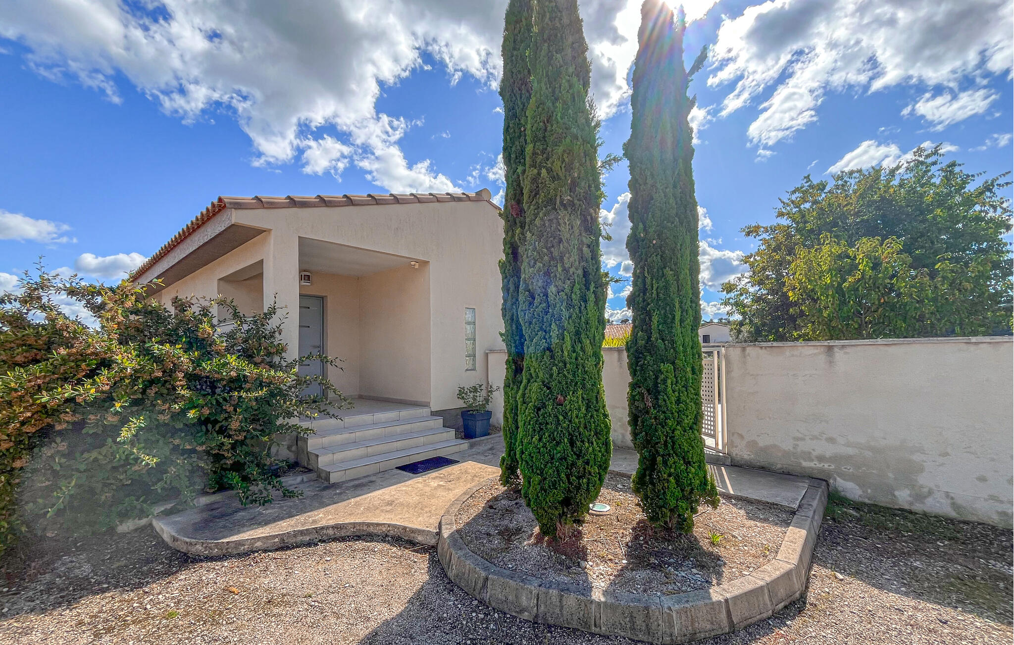 Genießen Sie sonnige Stunden auf der Terrasse oder ein erfrischendes Bad im Pool, während die Zypressen leise im Wind rauschen. Im gepflegten Garten finden Sie sowohl sonnige als auch schattige Plätze – ideal zum Lesen, Entspannen oder für ein Kaffeetrinken im Freien. Wenn abends die Sonne untergeht, taucht das warme Licht Haus und Garten in eine besonders stimmungsvolle Atmosphäre.