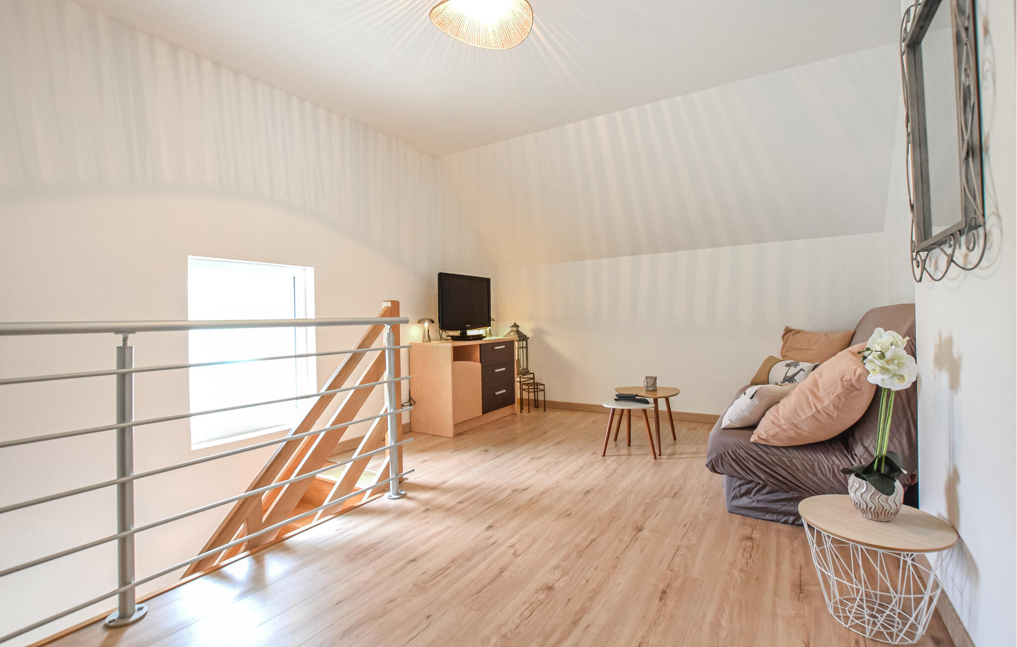 Schlafzimmer(1x Doppelbett(en)), Schlafzimmer(1x Doppelbett(en)), Schlafzimmer(1x Doppelbett(en)), Wohnraum, Essküche, Offener Schlafboden(2x Schlafsofa,Matratze,Sonstiges), Toilette(WC.Ohne Waschbecken), Badezimmer(Warmes und kaltes Wasser, Dusche und Badewanne), Badezimmer(WC. Warmes und kaltes Wasser, Dusche), Terrasse oder Ähnliches(Offene Terrasse)