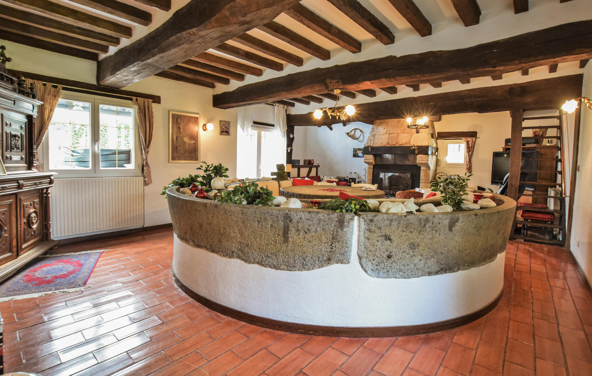 Dieses normannische Fachwerkhaus aus dem 19. Jahrhundert begrüßt Sie mit einem wunderschönen Interieur, in dem ursprüngliche Elemente eine authentische Atmosphäre schaffen. Genießen Sie die gelungene Mischung aus historischem Charme und modernem Komfort bei harmonischen Mahlzeiten im einzigartigen Esszimmer im umgebauten Apfelpressturm, plaudern Sie am Kamin und veranstalten Sie fröhliche Spieleabende.