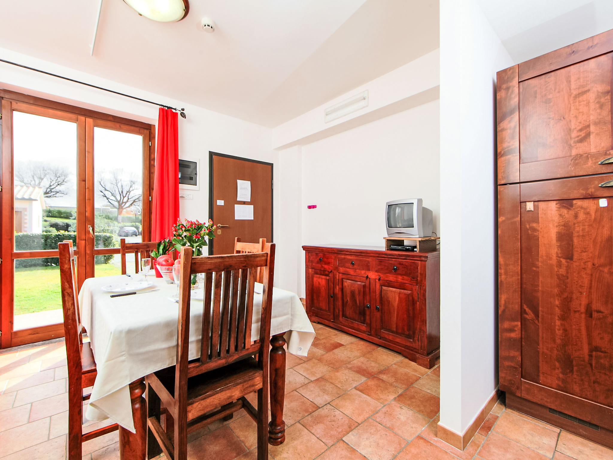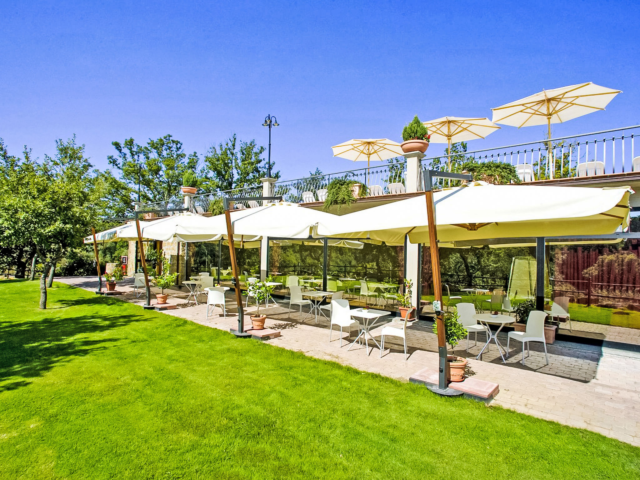 Sehr schönes Feriendorf "Oak". 24 Wohnungen in der Residenz. Im Ort Sorano, 10 km vom Zentrum von Pitigliano, 30 km vom Zentrum von Manciano, sonnige, erhöhte Lage, 60 km vom Meer, 25 km vom See, an einer Strasse. Zur Mitbenutzung: Park 20'000 m2, wunderschöner Garten zum Entspannen, Schwimmbad nierenförmig (20 x 8 m, saisonale Verfügbarkeit: 01.Mai. - 30.Sep.). Aussendusche, Tischtennis, Gartenmöbel, Grill, Grillhaus, Kinderspielplatz. In der Anlage: Restaurant, Bar, Frühstücksraum mit TV, Internetzugang, Sauna (extra). Massage (extra). Dampfbad (alles extra), Wellnessbereich, Zentralheizung, Klimaanlage, Heizung nur verfügbar von 01.Nov. - 15.Apr.. Frühstück möglich (extra). Parkplatz auf dem Grundstück. Einkaufsgeschäft 1 km, Lebensmittelgeschäft 1 km, Restaurant 1 km, Sandstrand "Albinia" 59 km, Thermalbad 3 km, Badesee "Bolsena" 25 km. Golfplatz (18 Loch) 35 km, Reitstall 15 km. Nahe gelegene Sehenswürdigkeiten: Saturnia 34 km, Orvieto 46 km, Argentario 60 km. Bitte beachten: geeignet für Familien. Die Anlage wird nachts überwacht. Die Residenz wird durch elektrische Tore geschlossen. Das Foto ist nur ein Hausbeispiel. Badetücher können für EUR 10/Woche/Person bezogen werden.