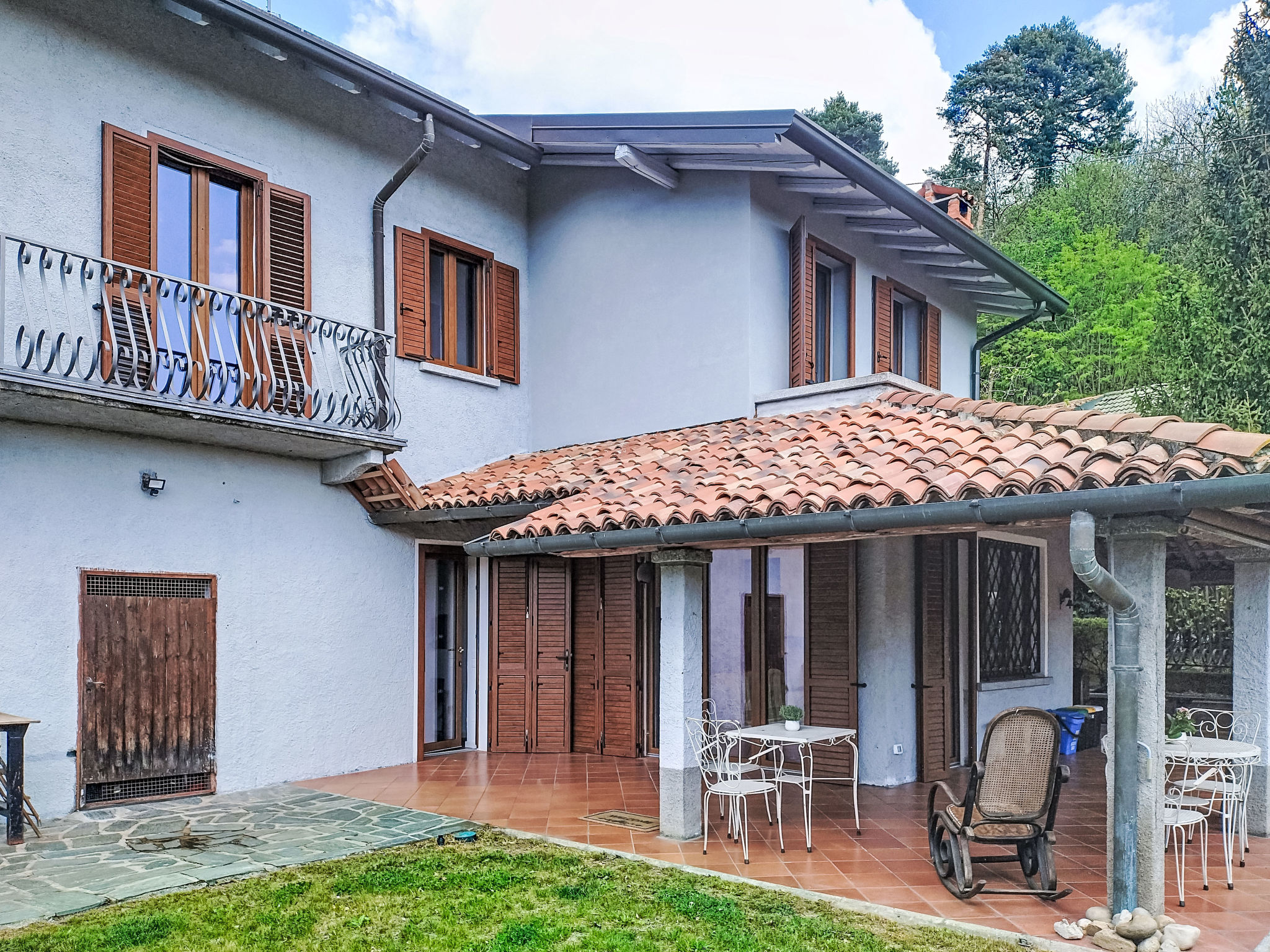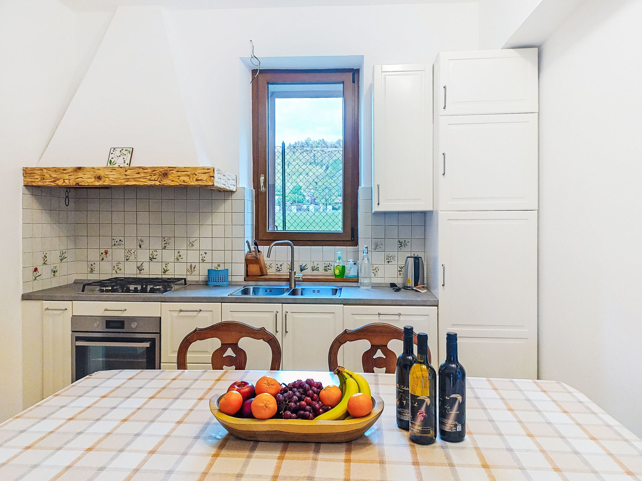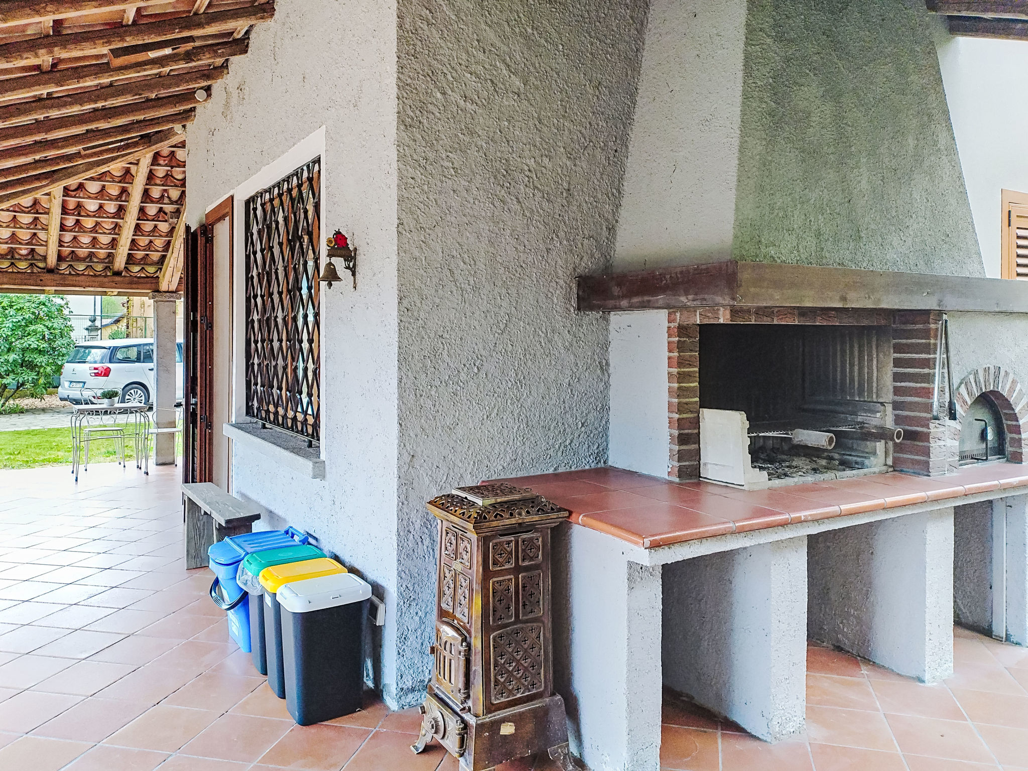 3-Zimmer-Doppelhaushälfte 80 m2 auf 2 Stockwerken, im Erdgeschoss. Zweckmässig und rustikal eingerichtet: Wohn-/Esszimmer mit offenem Kamin und TV. Ausgang zum Gartensitzplatz. Küche (4 Kochplatten, Wasserkocher, Mikrowelle, elektrische Kaffeemaschine) mit Esstisch. Sep. WC. Obergeschoss: (Aussentreppe) 1 Doppelzimmer. Ausgang zum Balkon. 1 Zimmer mit 1 x 2 Etagenbetten (140 cm, Länge 190 cm). Bad/Bidet/WC. G-Heizung. Heizung nur verfügbar von 01.10. bis 30.04. Balkon, Terrasse 50 m2, überdacht, kleiner Garten. Terrassenmöbel, Gartengrill. Zur Verfügung: Waschmaschine, Haartrockner. Internet (WLAN, gratis). Parkplatz (2 Autos). Bitte beachten: Rauchmelder, Feuerlöscher. IT012138C2J3YSUSEI