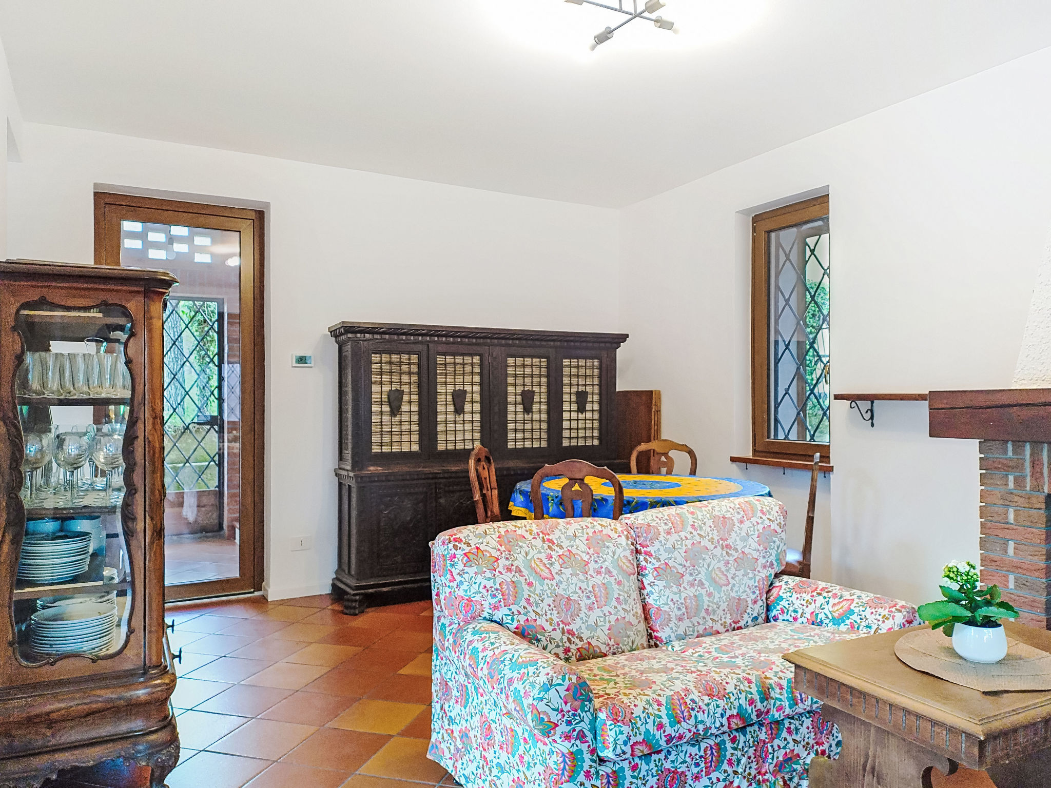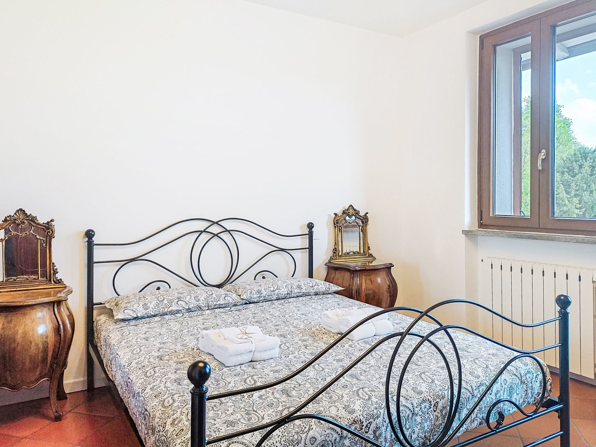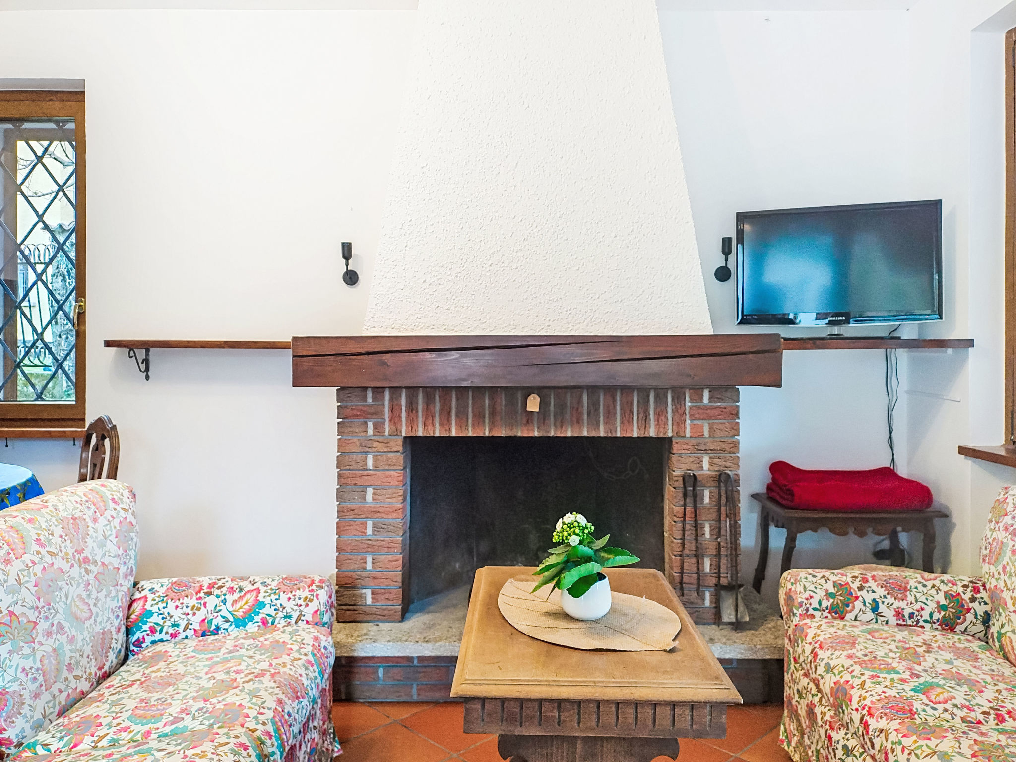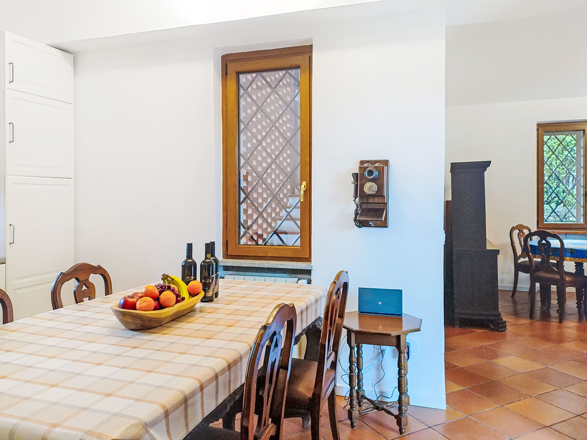 3-Zimmer-Doppelhaushälfte 80 m2 auf 2 Stockwerken, im Erdgeschoss. Zweckmässig und rustikal eingerichtet: Wohn-/Esszimmer mit offenem Kamin und TV. Ausgang zum Gartensitzplatz. Küche (4 Kochplatten, Wasserkocher, Mikrowelle, elektrische Kaffeemaschine) mit Esstisch. Sep. WC. Obergeschoss: (Aussentreppe) 1 Doppelzimmer. Ausgang zum Balkon. 1 Zimmer mit 1 x 2 Etagenbetten (140 cm, Länge 190 cm). Bad/Bidet/WC. G-Heizung. Heizung nur verfügbar von 01.10. bis 30.04. Balkon, Terrasse 50 m2, überdacht, kleiner Garten. Terrassenmöbel, Gartengrill. Zur Verfügung: Waschmaschine, Haartrockner. Internet (WLAN, gratis). Parkplatz (2 Autos). Bitte beachten: Rauchmelder, Feuerlöscher. IT012138C2J3YSUSEI