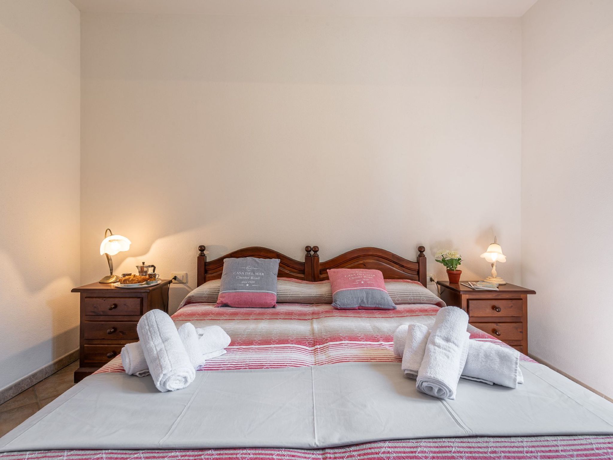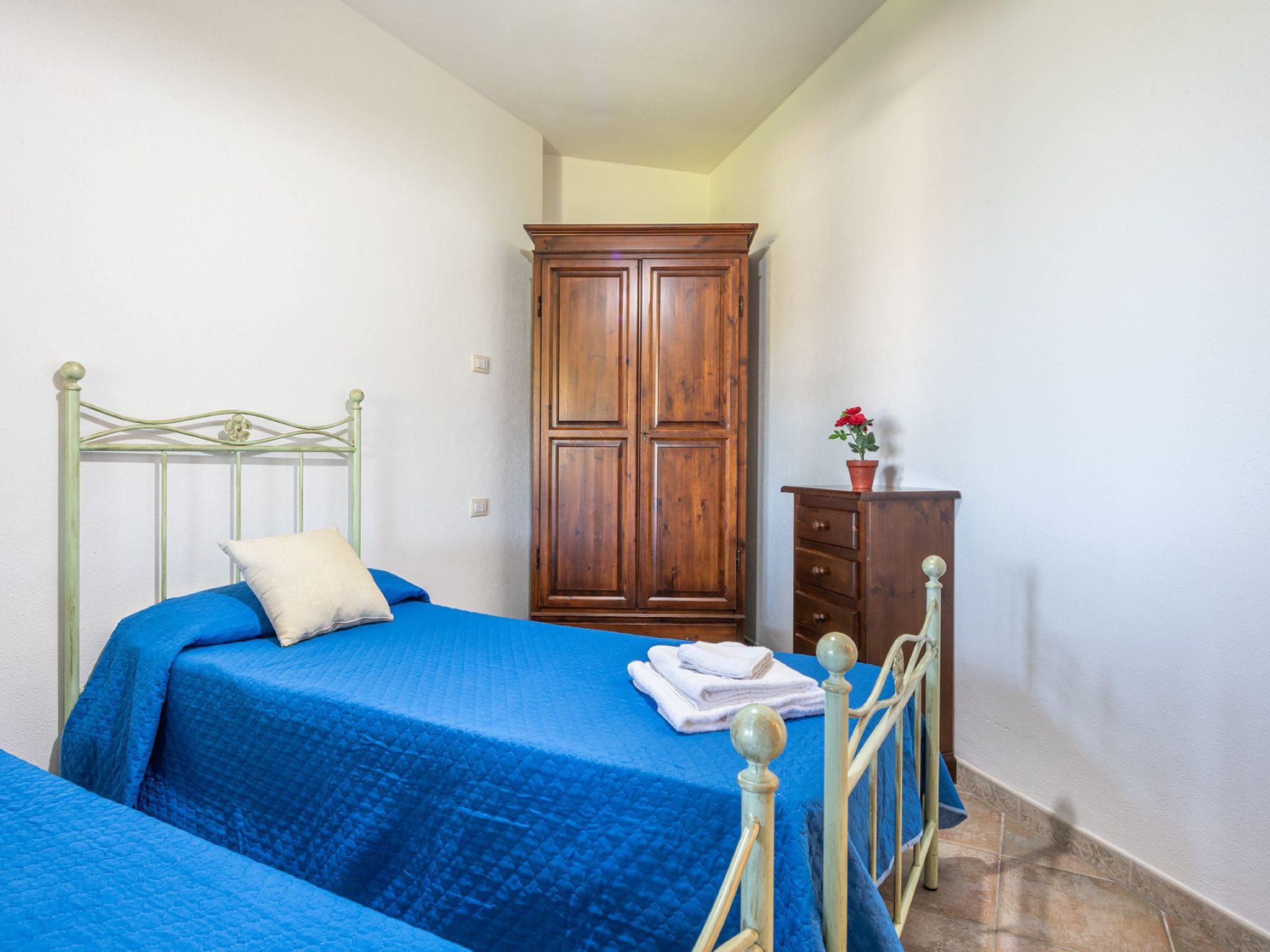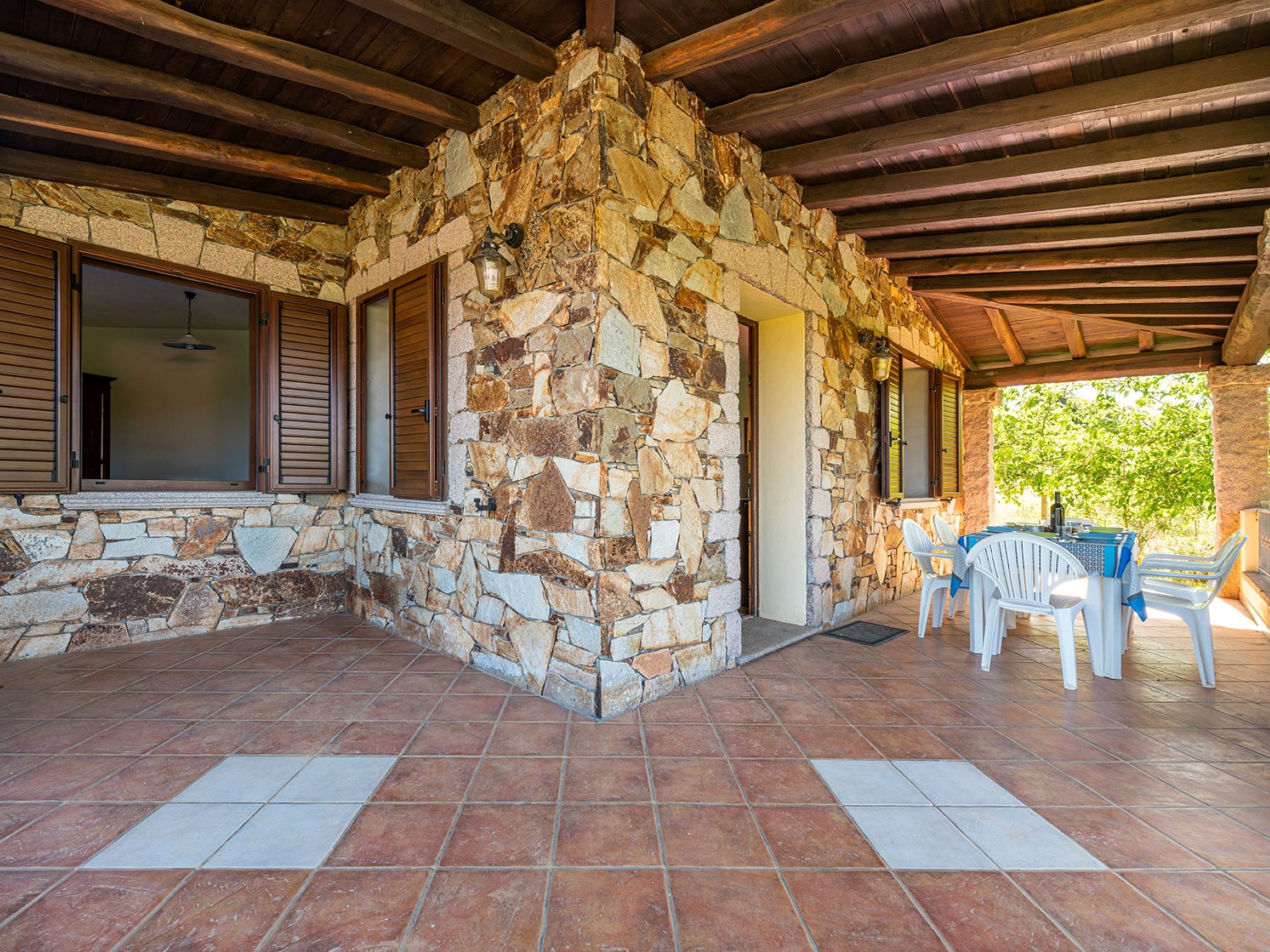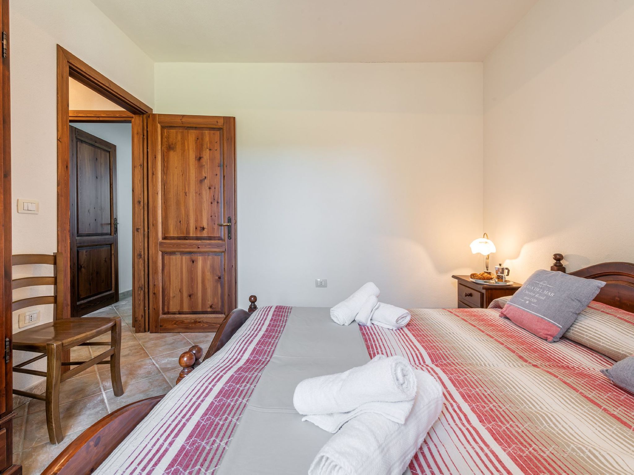 "Pompia 3", 3-Zimmer-Wohnung 60 m2, im erhöhten Erdgeschoss. Zweckmässig eingerichtet: Wohn-/Schlafzimmer mit 1 Diwanbett, Esstisch und TV. Ausgang zur Terrasse. 1 Zimmer mit 2 Betten. 1 Zimmer mit 1 Doppelbett. Kleine Küche (Backofen, 4 Flammen, Tiefkühler) mit Esstisch. Dusche/Bidet/WC. Terrasse überdacht. Terrassenmöbel. Schöne Sicht auf den Garten und die Landschaft. Zur Verfügung: Waschmaschine, Kinderhochstuhl, Babybett bis 2 Jahre (extra). Internet (WLAN, gratis). Parkplatz beim Haus. Bitte beachten: Nichtraucher-Haus. 1 Haustier/Hund erlaubt. Eigener Eingang. IT091085C2000Q5465