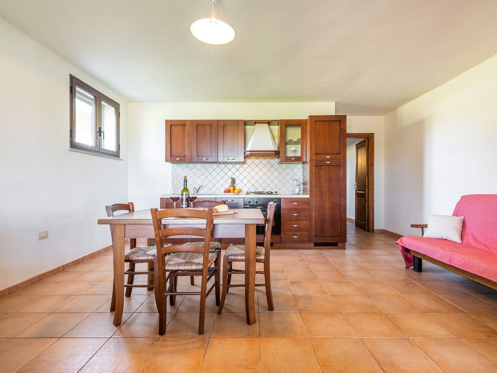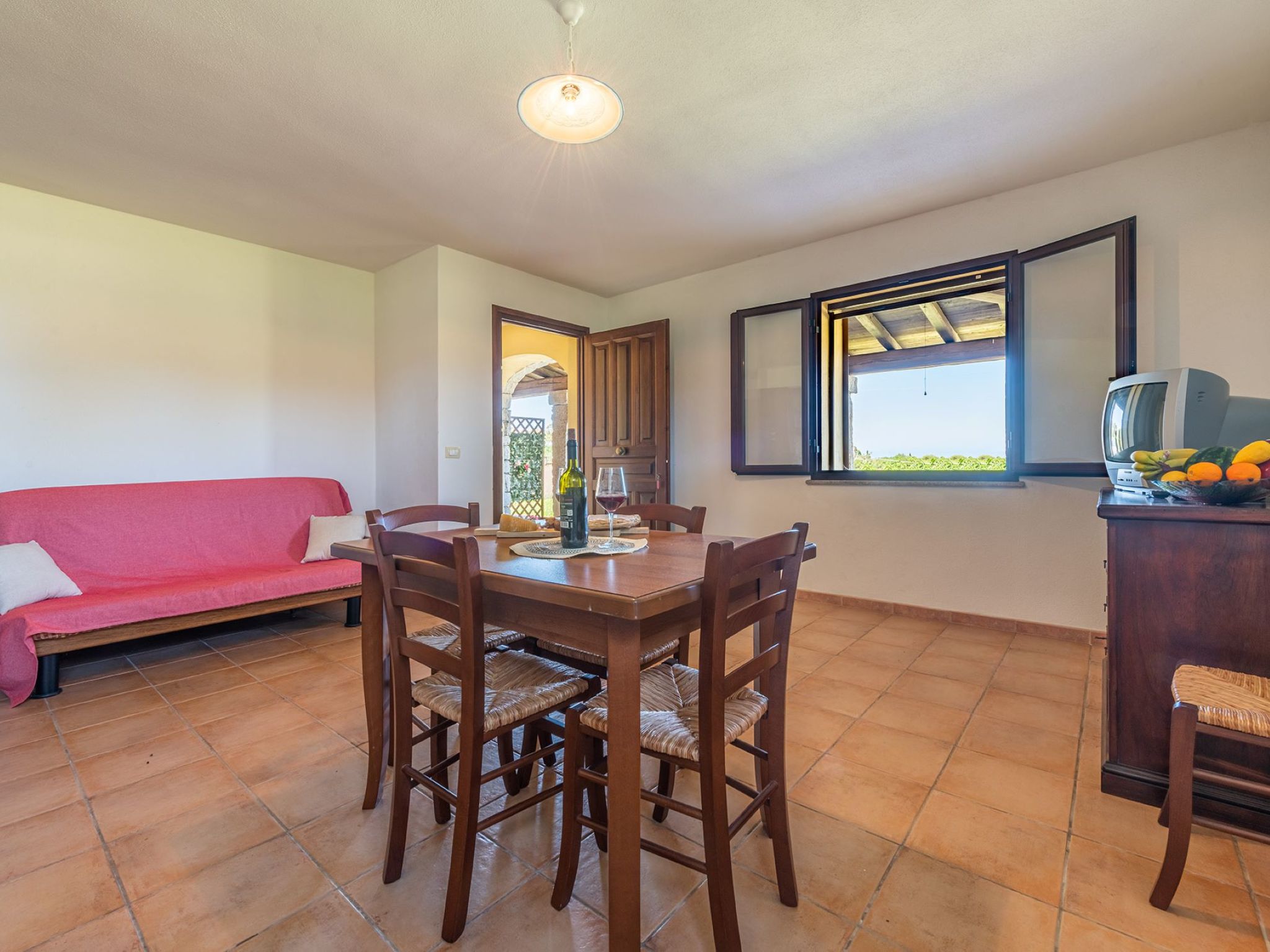 "Pompia 4", 3-Zimmer-Wohnung 60 m2, im Erdgeschoss. Zweckmässig eingerichtet: Wohn-/Schlafzimmer mit 1 Diwanbett, Esstisch und TV. Ausgang zur Terrasse. 1 Zimmer mit 2 Betten. 1 Zimmer mit 1 Doppelbett. Kochnische (Backofen, 4 Flammen, Tiefkühler) mit Esstisch. Dusche/Bidet/WC. Terrasse überdacht. Terrassenmöbel. Sicht auf den Garten. Zur Verfügung: Waschmaschine, Kinderhochstuhl, Babybett bis 2 Jahre (extra). Internet (WLAN, gratis). Parkplatz beim Haus. Bitte beachten: Nichtraucher-Haus. 1 Haustier/Hund erlaubt. Eigener Eingang. IT091085C2000Q5502