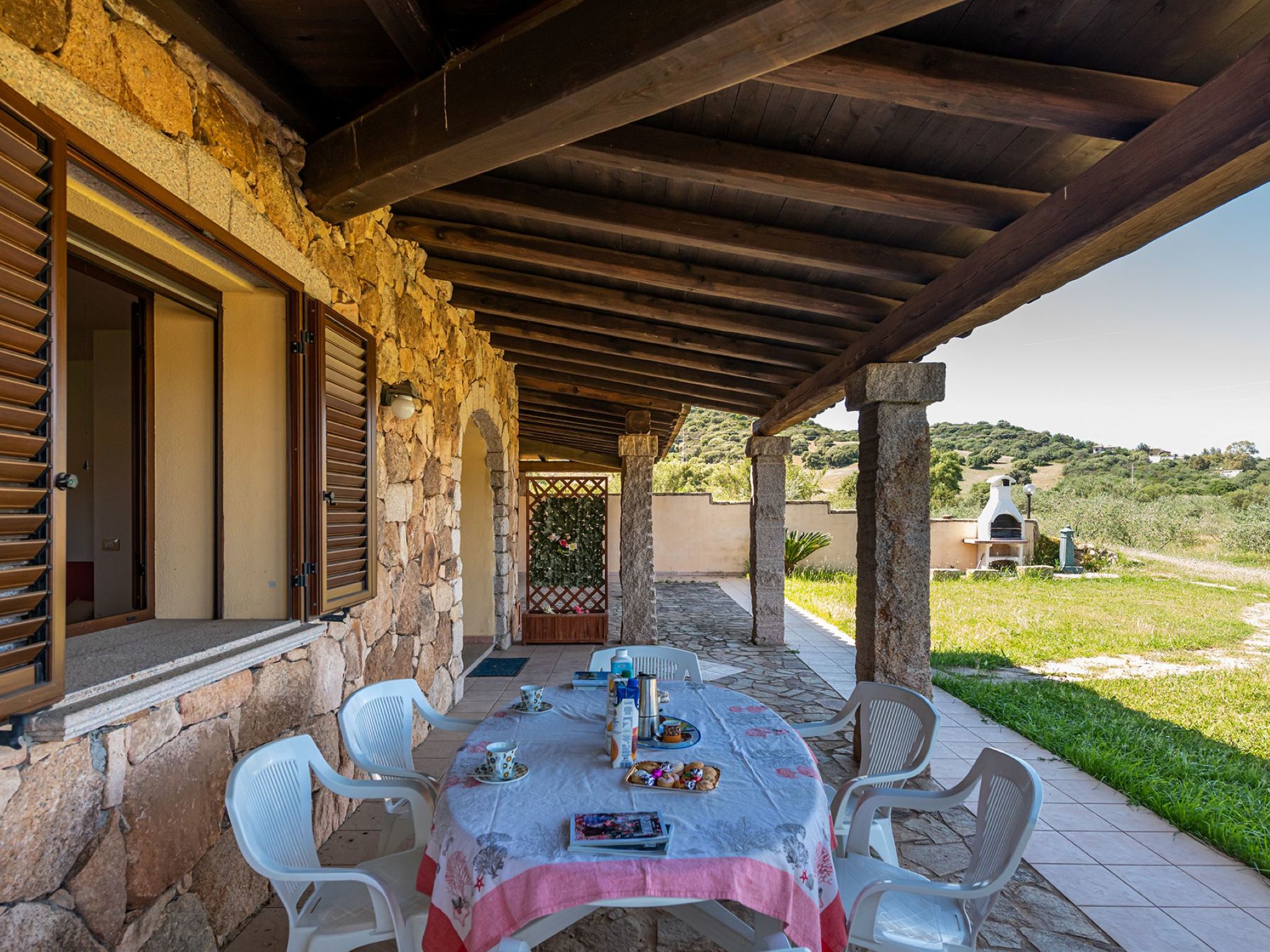 Die kleine ansprechende Residenz Casa Pompia mit insgesamt 6 Einheiten setzt sich aus 2 Gebäuden zusammen, die auf demselben Grundstück liegen, ca. 60 m voneinander entfernt. Kleine, kinderfreundliche, komfortable Residenz "Pompia", auf 2 Stockwerken, umgeben von Bäumen und Wiesen. 8 km vom Zentrum von Siniscola, 58 km vom Zentrum von Olbia, ruhige Lage, 1.8 km vom Meer. Zur Mitbenutzung: Garten. Grill. Zufahrt bis zum Haus. Treppenweg bis zum Haus. Parkplatz beim Haus. Supermarkt 2.2 km, Restaurant 2.2 km, Bar 2.2 km, Bushaltestelle 2.2 km, Sandstrand "Sa Petra Ruja" 1.8 km. Nahe gelegene Sehenswürdigkeiten: Capo Comino 13 km, Spiaggia La Caletta 5 km, Budoni 20 km, Punta Gurtugius 23 km, Grotta di Sa Conca 'e Locoli 18 km, Aeroporto/Porto di Olbia 56 km.