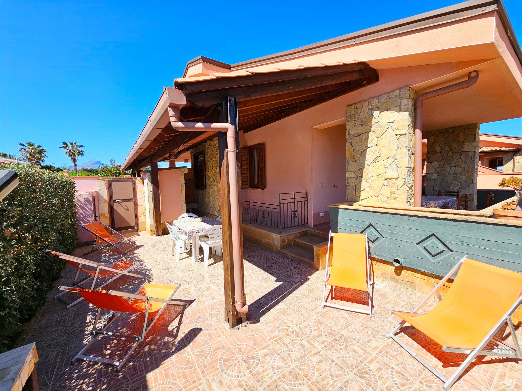 Costa Mediterranea Holiday House ist der ideale Ort, um einen Urlaub in Freiheit und Entspannung zu verbringen. Costa Mediterranea ist unser Vorschlag für einen alternativen und sicherlich günstigeren Urlaub mit dem Komfort eines Aufenthalts in einer gemütlichen Villa, der Möglichkeit, den Strand ohne Auto zu erreichen, da es 50 Meter vom Meer entfernt ist. Costa mediterranea ist eine geräumige, komfortable und unabhängige Villa: die Villa hat eine Wohnfläche von 150m² und ist mit allem ausgestattet, was Sie brauchen, um sich während Ihres Aufenthalts wie zu Hause zu fühlen. Die Villa verfügt über eine komfortable Küche mit Herd, Backofen, Kühlschrank und allem notwendigen Zubehör, eine Essecke, ein Badezimmer mit Dusche, Waschbecken, Toilette und Bidet sowie 3 geräumige Schlafzimmer. Die Villa ist auch mit Klimaanlage, Internet WI-FI , Waschmaschine, Ventilator und TV ausgestattet. Der Außenbereich der Villa hat eine Veranda, die als Essbereich genutzt werden kann, einen großen Garten und einen Grillplatz. Im Garten gibt es auch eine Dusche, eine Toilette, ein Waschbecken und ein Fußwaschbecken, die für lange Nachmittage beim Sonnenbaden oder bei der Rückkehr vom Meer sehr nützlich sind. Der Privatparkplatz für Autos und Motorräder ist kostenlos. Sie werden während Ihres gesamten Aufenthalts eine freundliche, gastfreundliche, einfache und zuverlässige Atmosphäre vorfinden, in der Sie alle Informationen und Ratschläge zu Orten, Veranstaltungen und Ereignissen erhalten, die Sie benötigen, um einen wunderschönen Urlaub nach Ihren Bedürfnissen zu verbringen. Außerdem ist die Villa nur 300 Meter vom Bahnhof Campofelice di Roccella entfernt, und an der Strandpromenade finden Sie im Umkreis von 400 Metern mehrere Bars und Restaurants. Der nächstgelegene Supermarkt ist 600 m von der Villa entfernt. Das Haus befindet sich in Campofelice di Roccella, ganz in der Nähe der Strandpromenade. Campofelice di Roccella gehört zur Gemeinde Cefalù, von der es etwa sieben Kilometer entfernt ist. Basisinformationen - Erlaubte Haustiere: 2 - Art d. Gebäudes: Reihenhaus - Etage, auf der sich das Objekt befindet: EG - Gesamtanzahl d. Stockwerke im Gebäude über EG: 2 - Baujahr: 2000 - Schlafzimmeranzahl: 3 - Badezimmeranzahl: 2 Top Merkmale - WLAN - Klimaanlage: teilweise - Heizung: teilweise - Balkon - Terrasse - Garten: zur alleinigen Nutzung - komplett eingefriedet (mit Mauer, Zaun oder Hecke) - hundesicher durch einen Zaun (komplett eingezäunt) - Private PKW-Stellplätze insgesamt für diese Unterkunft: 2 - ? davon Garagenstellplätze: keinen - ? davon Carport-Stellplätze: 1 - ? davon private Außen­stellplätze: keinen Schlafen Schlafzimmer 1 - Doppelbett (größer als 1,80 m Breite) - Kinder-/Babybett Schlafzimmer 4 - Doppelbett (größer als 1,80 m Breite) - 2x Einzelbett Schlafzimmer 7 - 3x Einzelbett Badezimmer Badezimmer 1 - Dusche - Waschbecken - Toilette - Bidet - Föhn - Tageslicht Badezimmer 4 - Dusche - Waschbecken - Toilette - Föhn - Tageslicht Kochen/Wohnen - Kühl-/Gefrierschrank: Gefrierfach, Tiefkühlschrank, Kühlschrank - Herd: Gasherd, Herd - Dunstabzugshaube - Backofen - Toaster - Wasserkocher - Geschirrtücher - Anzahl Esstische: 3 - Gesamtzahl Sitzplätze: 15 Entertainment - Fernseher: TV, Antenne/DVBT-TV, Kabel-TV Für Kinder - Kinderstuhl Hauswirtschaft - Waschmaschine: zur alleinigen Nutzung im Objekt - Bügeleisen - Ventilator: 2 - Kohlenmonoxid-Melder Außenbereich - Veranda - Dachterrasse - Outdoormöbel - Grill: Grill - Außendusche Umgebung - Aussicht: Meer/See - nächstgelegene Ortsmitte: 2,0 km - Lebensmittelhandel: 600 m - Bars/Clubs/Ausgehen: 500 m - Cafés/Restaurants: 200 m - Bahnhof: 300 m - Flughafen: 80,0 km - nächste Haltestelle ÖPNV: 1,0 km - Strand: 50 m - Sandstrand: 50 m - Meer: 50 m - Öffentliches Schwimmbad: 500 m - Golfplatz: 3,0 km Besonderheiten - Anglerfreundlich
