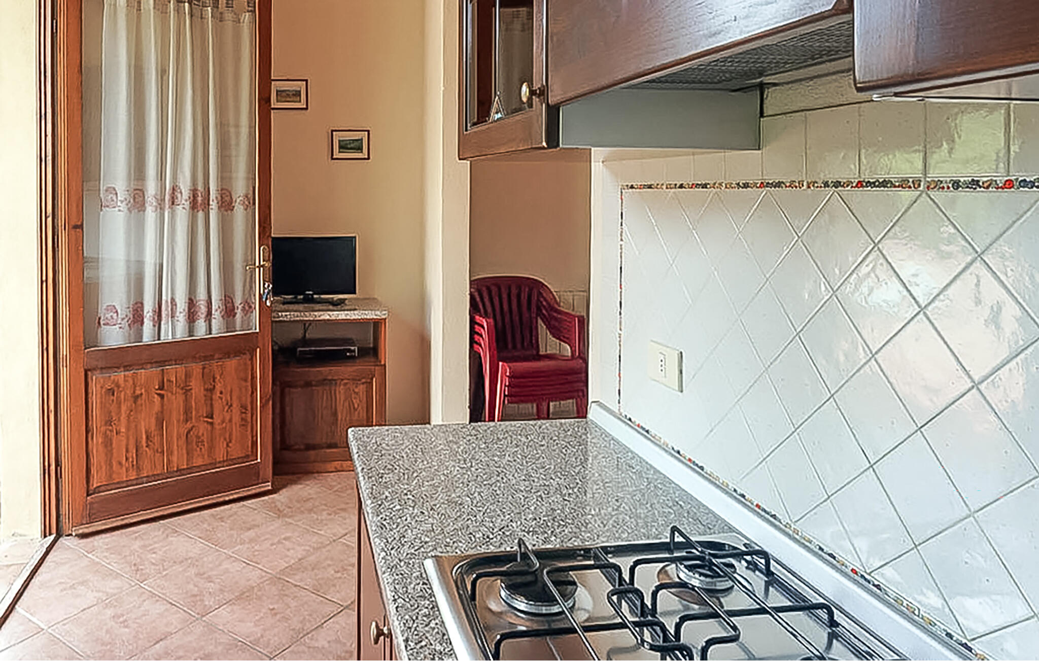Schlafzimmer(1x Doppelbett(en)), Wohnraum(1x Schlafsofa,Matratze,Sonstiges), Wohnraum/Küche, Badezimmer(WC. Warmes und kaltes Wasser, Dusche), Terrasse oder Ähnliches(Terrasse/Balkon)