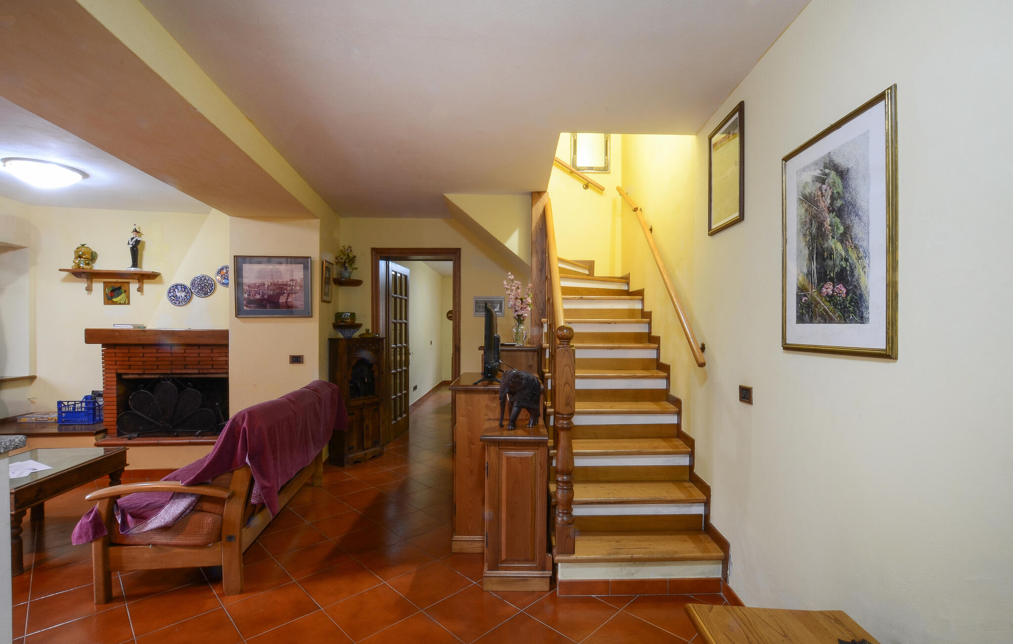 Treten Sie ein und erleben Sie eine wohnliche Atmosphäre mit klassischer Ausstattung. Der Wohnbereich ist mit Sofas, Sesseln und einem Kamin ausgestattet und lädt zu entspannten Stunden ein. Nutzen Sie den Essbereich mit massivem Holztisch für gemeinsame Mahlzeiten. Die Einrichtung ist traditionell und funktional zugleich. Bereiten Sie in der schönen, separaten Küche gemeinsam Ihre Urlaubsgerichte zu.