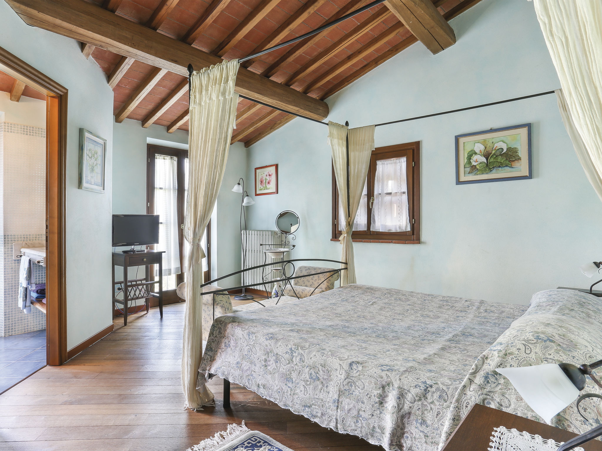 De H D. - Aufenthaltsdauer: 23.04.2022 Zeer mooi huis maar 'drie badkamers' en 'vier kamers' is wat overdreven. Er is te weinig privacy wanneer je het met 6 personen gaat bewonen. 2 x 2 maximaal. Prachtige ligging. Voorzieningen niveau in Lamporecchio beperkt. Geen tussentijdse schoonmaak&schoon linnengoed.