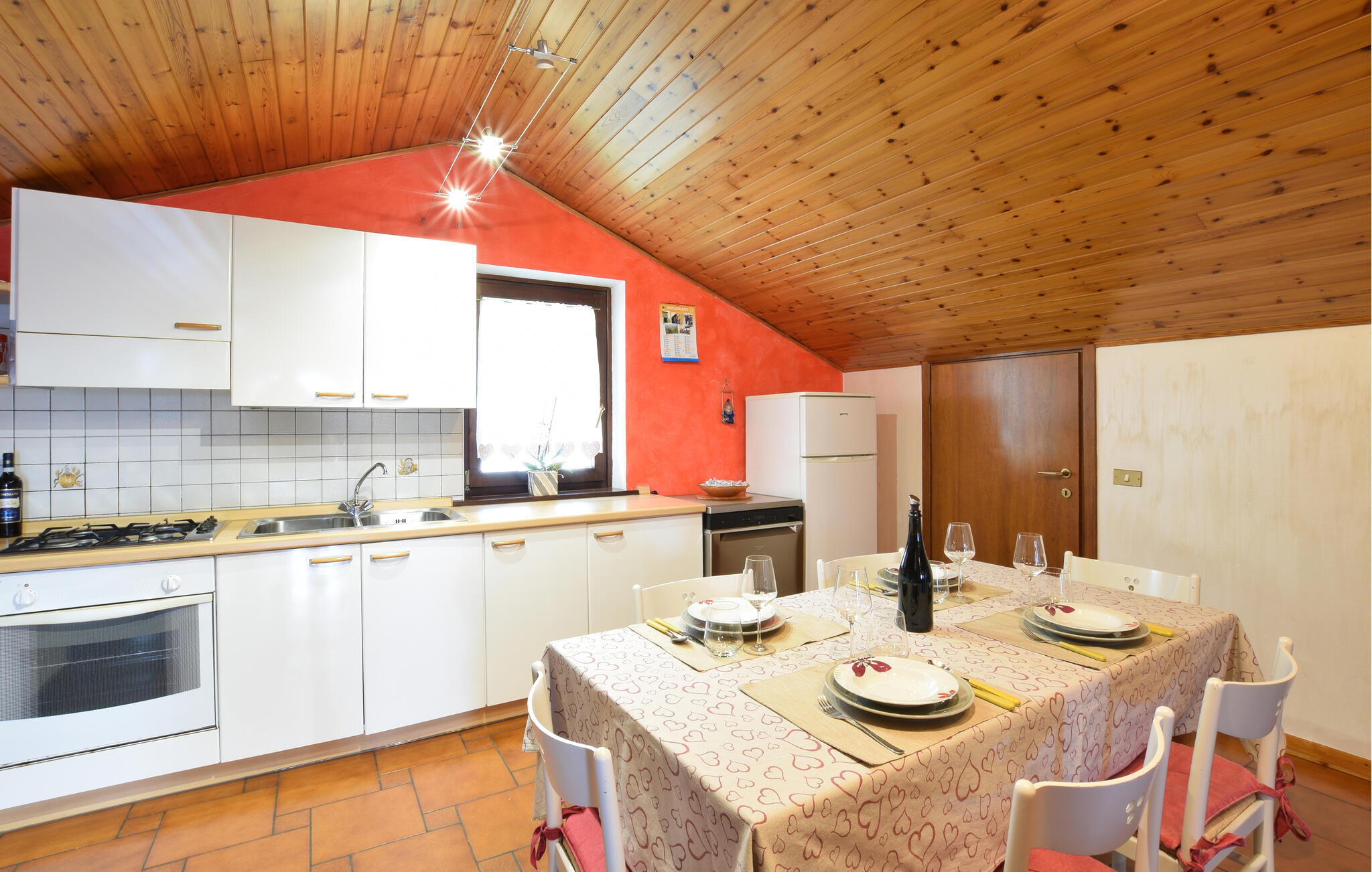 Diese geräumige Ferienwohnung bietet Ihnen eine behagliche Basis für einen abwechslungsreichen Aktivurlaub in den Dolomiten. Bereiten Sie hier stärkende Gerichte zu, planen Sie Ihre Ausflüge bei entspannten Mahlzeiten, entfachen Sie den Kaminofen und machen Sie es sich nach einem langen Tag an der frischen Luft mit einem Brettspiel im einladenden Wohnzimmer bequem.