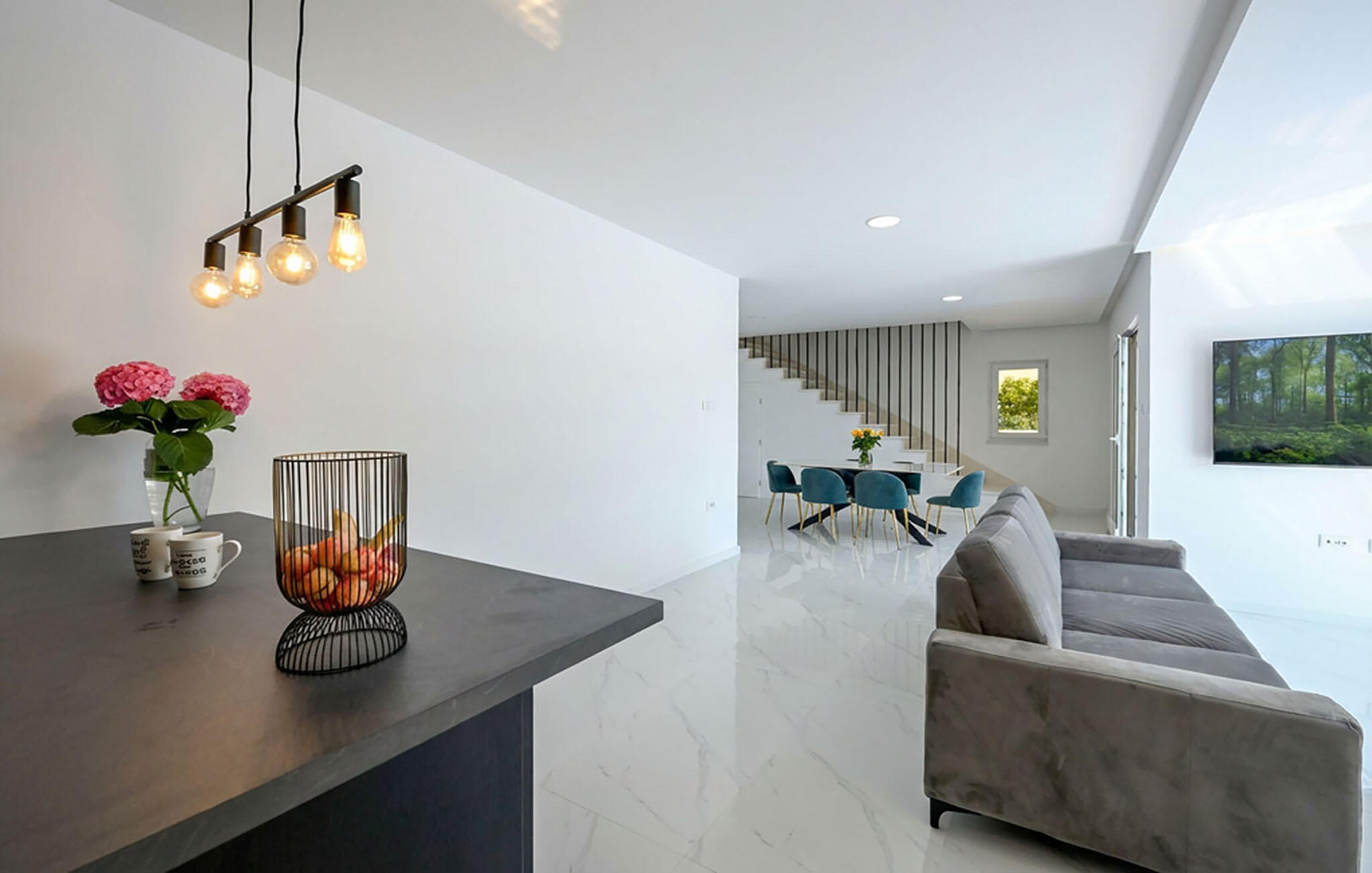 Mit Platz für die ganze Familie begrüßt Sie dieses einladende Haus und bietet mit modern möblierten Räumen alles für eine erholsame Auszeit. Freuen Sie sich auf gemütliche Abende, wenn Sie von Ihren Unternehmungen zurückkehren, speisen Sie gemeinsam und machen Sie es sich später auf den Sofas bequem, streamen Sie einen Film und plaudern Sie noch lange in geselliger Runde.