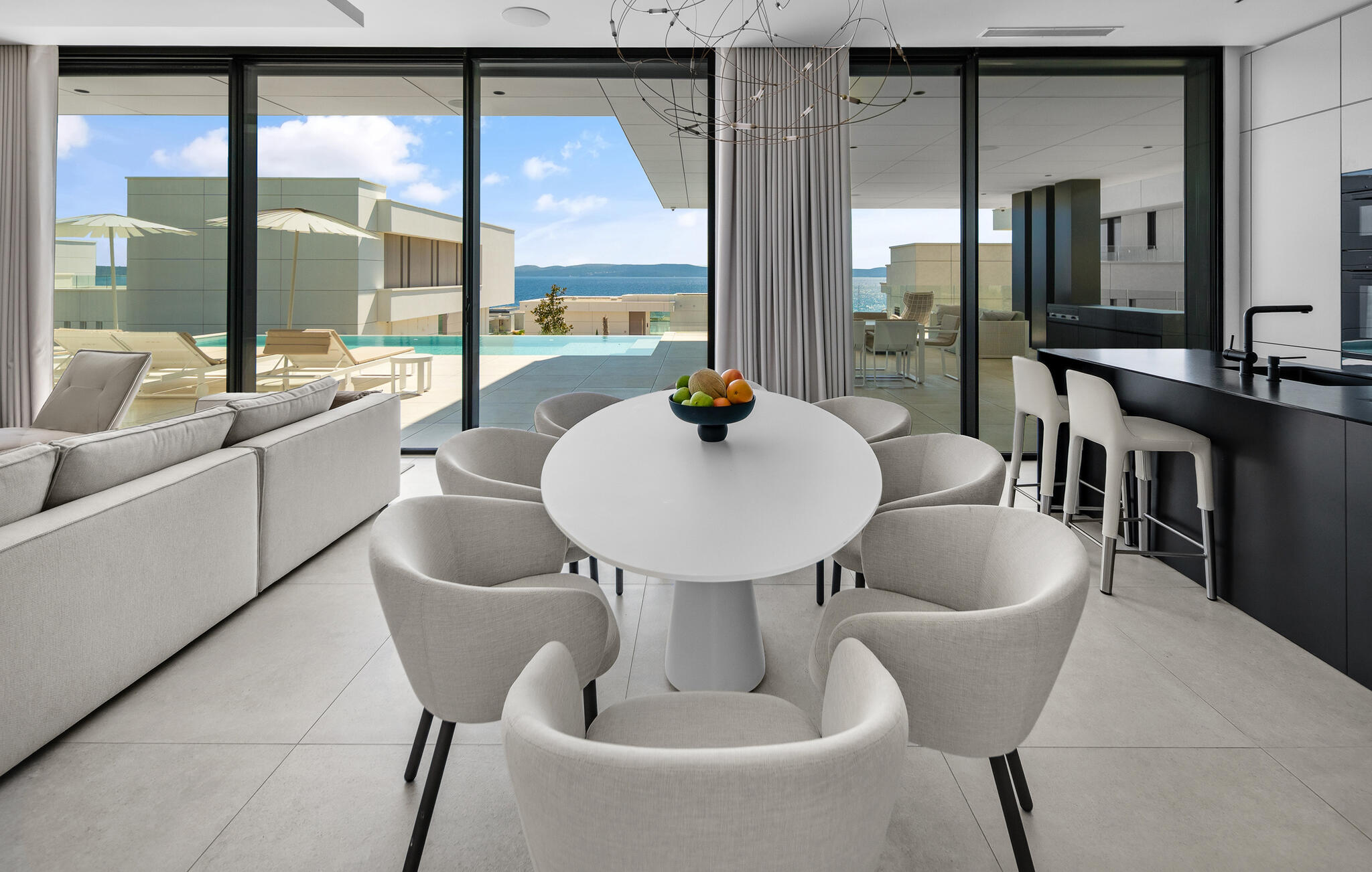 Tauchen Sie gleich morgens in den Pool, schwimmen Sie gemächlich ein paar Bahnen oder spielen Sie eine Runde Wasserball. Frühstücken Sie auf der Terrasse und genießen Sie die leichte Brise, die vom Meer herüberweht. Lehnen Sie sich behaglich auf einer Sonnenliege zurück, machen Sie ein Nachmittagsschläfchen im Schatten oder lesen Sie ein gutes Buch.