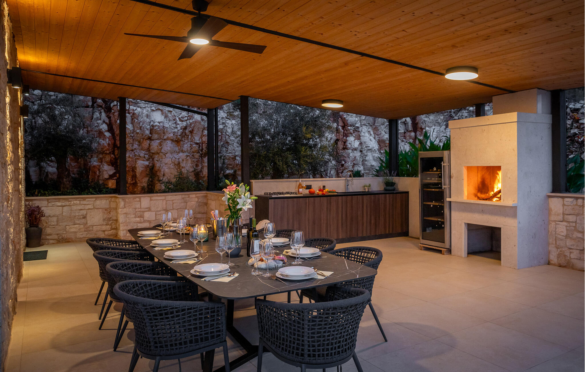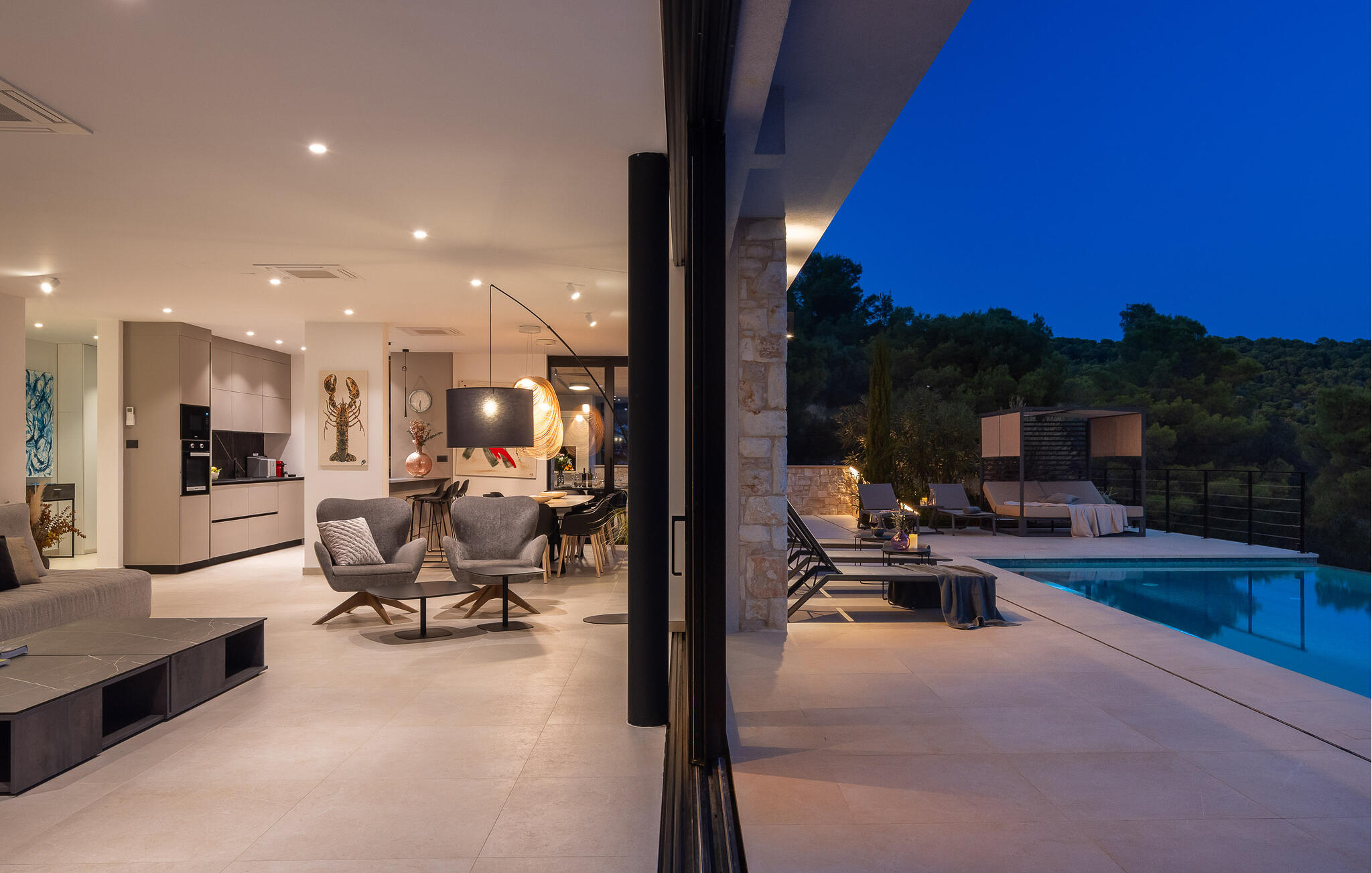 Die Villa Divine View befindet sich auf der Insel Vis in der gleichnamigen Stadt, die zu den romantischsten Orten der Welt zählt. Diese wunderschöne Stadt wird jedem Besucher ein unvergessliches Abenteuer und wunderbare Erinnerungen an seinen Traumurlaub bescheren. Wenn Sie dem hektischen Alltag entfliehen und sich und Ihren Lieben einen schönen Urlaub gönnen möchten, dann ist Divine View die richtige Villa für Sie! Die Villa wurde 2022 im zeitgenössischen Baustil erbaut und bietet ihren Gästen 435 m2 Wohnfläche, während die Gesamtfläche des Grundstücks 1082 m2 beträgt. Die Entfernung zum nächsten Meer beträgt nur 400 Meter, was eine ausgezeichnete Gelegenheit für eine angenehme Erfrischung im sauberen und klaren Adriatischen Meer darstellt. Ebenso können Sie von dieser Villa aus einen wunderschönen Blick auf das Meer genießen, egal ob Sie sich auf der Außenterrasse oder im Schlafzimmer befinden. Die Villa „Divine View“ bietet Platz für maximal 16 Personen, die optimale Anzahl liegt bei 10. Sie werden bequem in 5 Schlafzimmern (200 x 200) untergebracht, und alle diese Zimmer verfügen über ein eigenes Badezimmer mit Dusche. Im 1. Stock befinden sich 3 Zimmer und im 2. Stock zwei weitere. Im Erdgeschoss gibt es eine voll ausgestattete Küche, in der Sie köstliche Mahlzeiten für die ganze Familie zubereiten können, sowie ein Esszimmer mit Esstisch. Im Wohnzimmer gibt es eine Couch, zwei Sessel, einen Fernseher und einen Couchtisch. Das Wohnzimmer führt direkt zur Außenterrasse, wo sich ein beheizter Pool von 65 m2 befindet. Daneben gibt es 10 Sonnenliegen, auf denen Sie sich beim Lesen Ihres Lieblingsbuchs entspannen können. Auf der Terrasse gibt es auch einen Holzkohle- oder Holzgrill im Freien. Unterhaltsame Inhalte, die Jung und Alt begeistern, sind Tischtennis, Billard, Tischfußball und PlayStation. Echten Luxus bietet außerdem der romantische Whirlpool, in dem Sie laue Sommerabende mit Ihren Lieben verbringen können. Zu den weiteren Einrichtungen, die Ihnen während Ihres Aufenthalts zur Verfügung stehen, gehören eine Waschmaschine, ein Bügeleisen, ein Kinderbett und ein Futterspender. Ebenso stehen bei Bedarf als Zusatzbett noch 3 Schlafsofas (140x200) zur Verfügung, die sich in 3 Schlafzimmern befinden. Der Hof der Villa ist komplett eingezäunt und bietet 3 private Parkplätze, außerdem verfügt die Villa über ein Ladegerät für ein Elektroauto. Vis ist bekannt für sein mildes mediterranes Klima mit heißen Sommern, bietet abwechslungsreiche Strände und unglaublich schöne Buchten. Stiniva ist definitiv der berühmteste Strand auf der Insel Vis und man kann sagen, dass er auch zu den berühmtesten Stränden Kroatiens zählt. Die Stadt Vis liegt auf der Nordostseite der Insel in einer natürlich geschützten Bucht. Baden Sie im klaren Meer, erkunden Sie die Sehenswürdigkeiten in der Nähe und lassen Sie sich vom Charme der Insel und der Stadt Vis verwöhnen! Willkommen in der Villa Divine View!