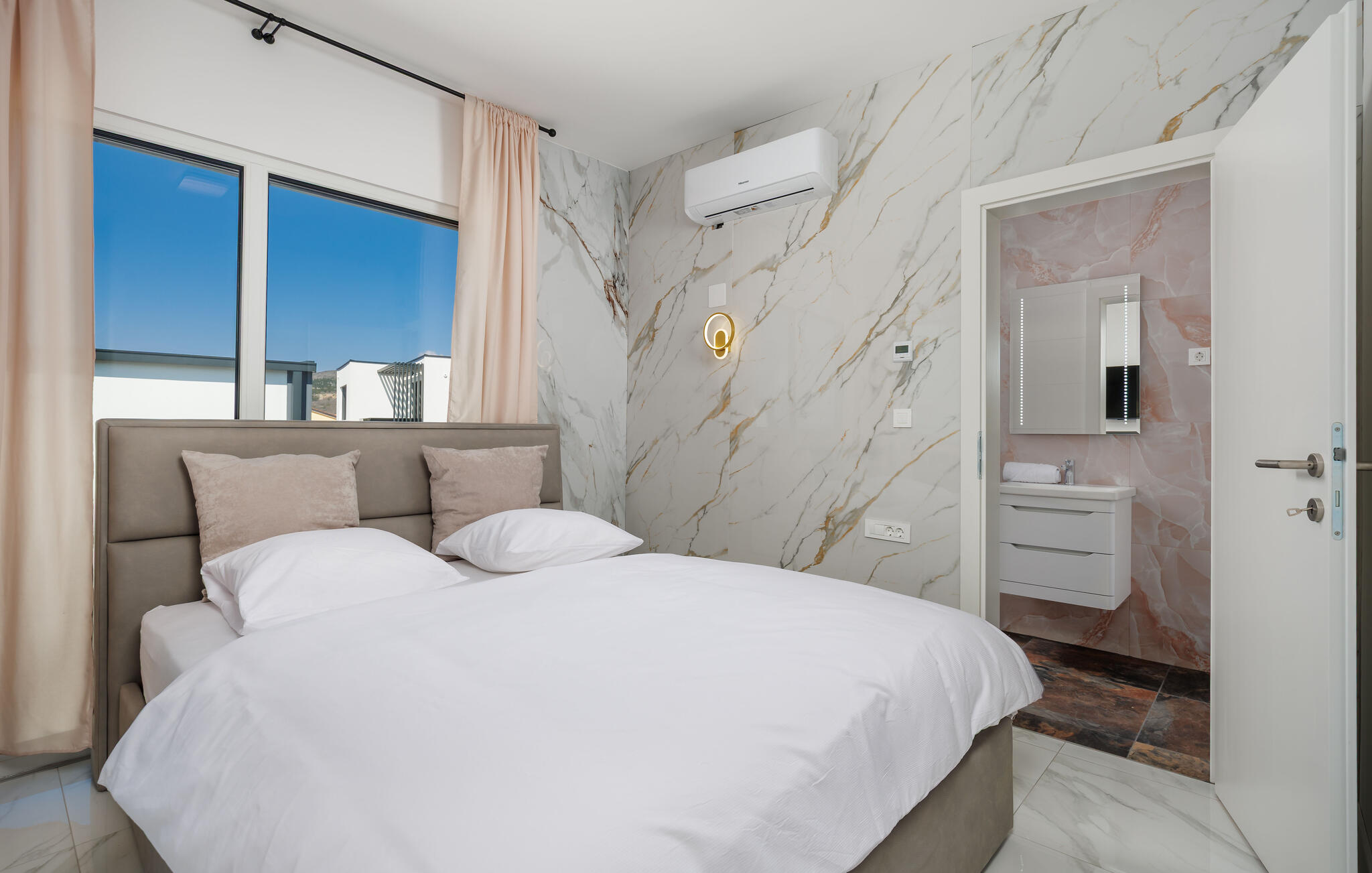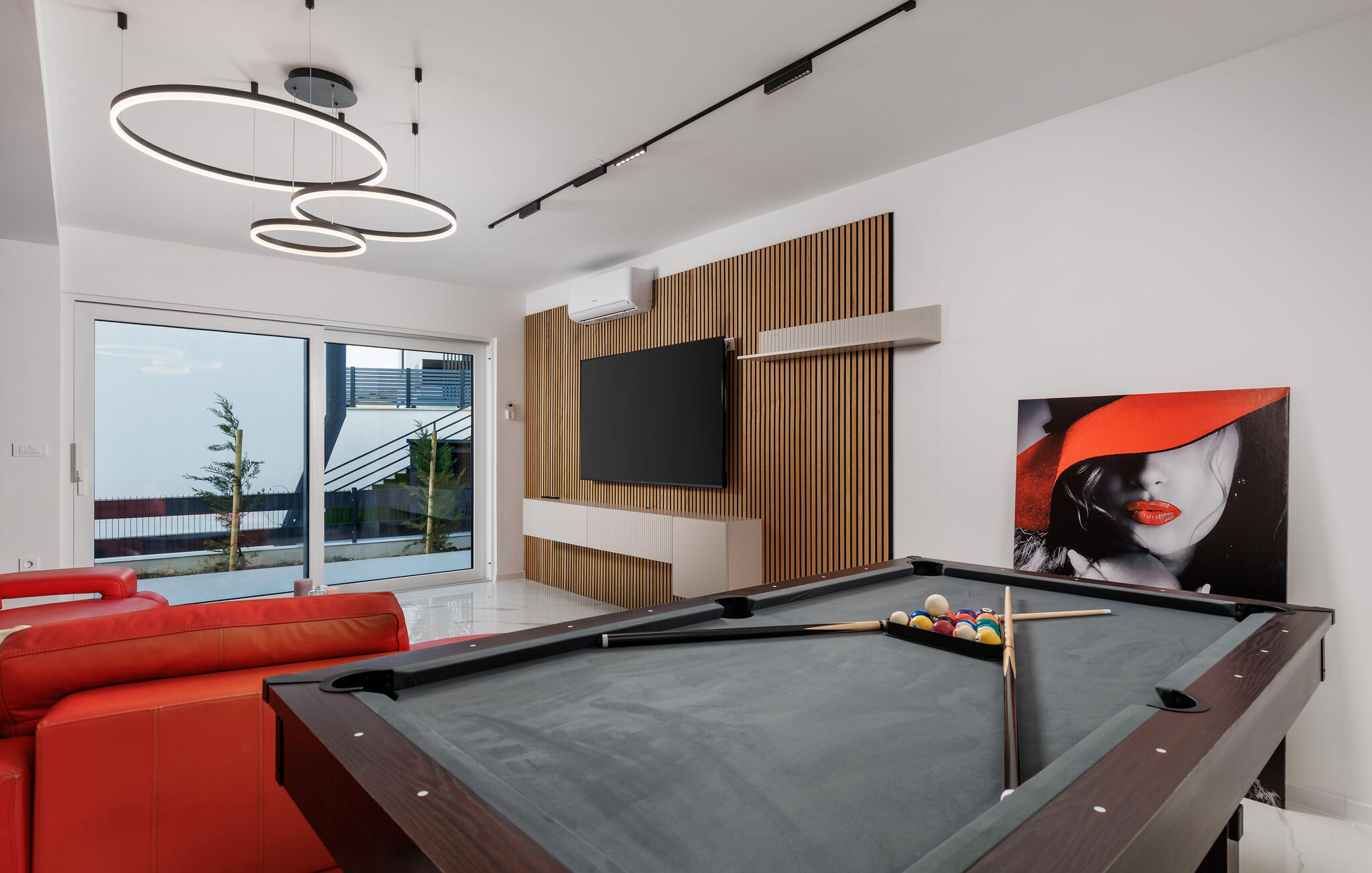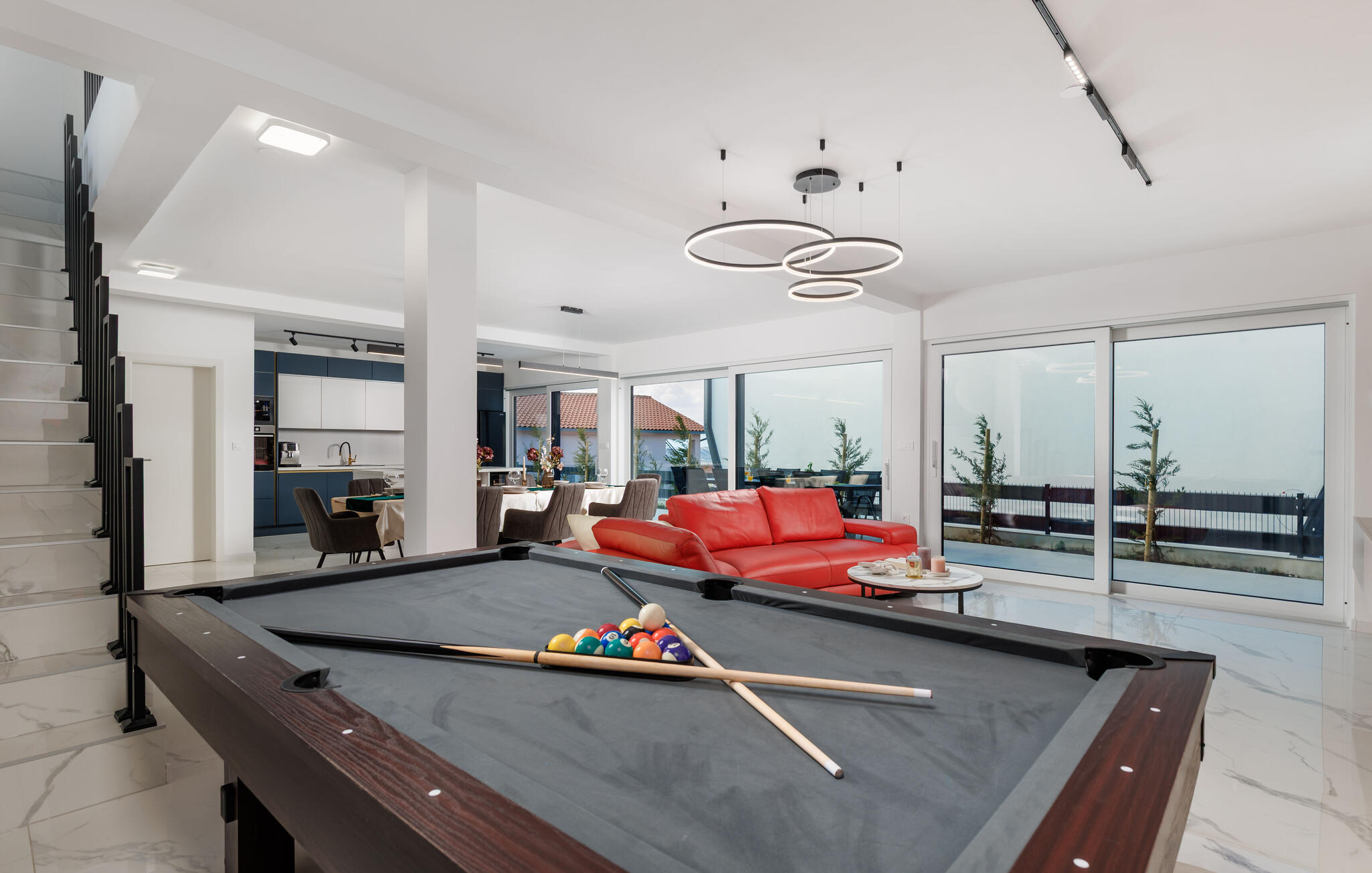 Diese moderne und geräumige Villa begeistert mit hochwertigem, minimalistischem Design und bietet reichlich Platz, um ihre zahlreichen Extras mit einer größeren Familie oder Gruppe von Freunden zu genießen. Zaubern Sie kulinarische Highlights, finden Sie für stilvolle Mahlzeiten zusammen und nehmen Sie abends für einen spannenden Film auf dem eleganten Sofa Platz, spielen Sie eine Runde Billard oder entspannen Sie im Innenpool.