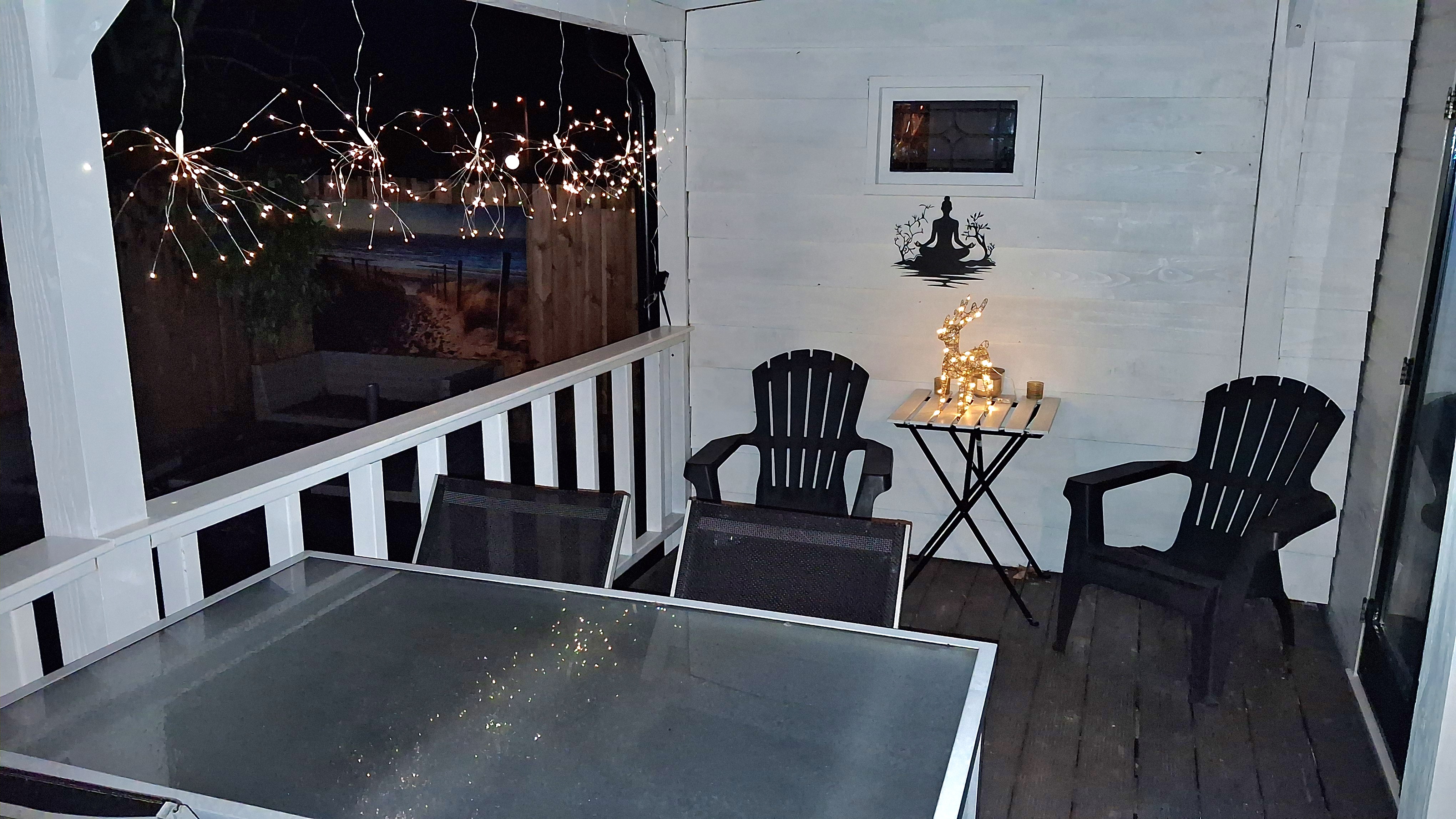 Der Außenbereich überzeugt mit einem vollständig eingezäunten Garten, der viel Privatsphäre bietet. Auf der Terrasse mit bequemer Loungegarnitur, Esstisch und Sonnenschirm lässt sich wunderbar entspannen. Dank der Überdachung können Sie hier sowohl tagsüber als auch abends gemütlich sitzen. Eine Grillmöglichkeit steht ebenfalls zur Verfügung, und der eigene Parkplatz befindet sich direkt am Chalet.