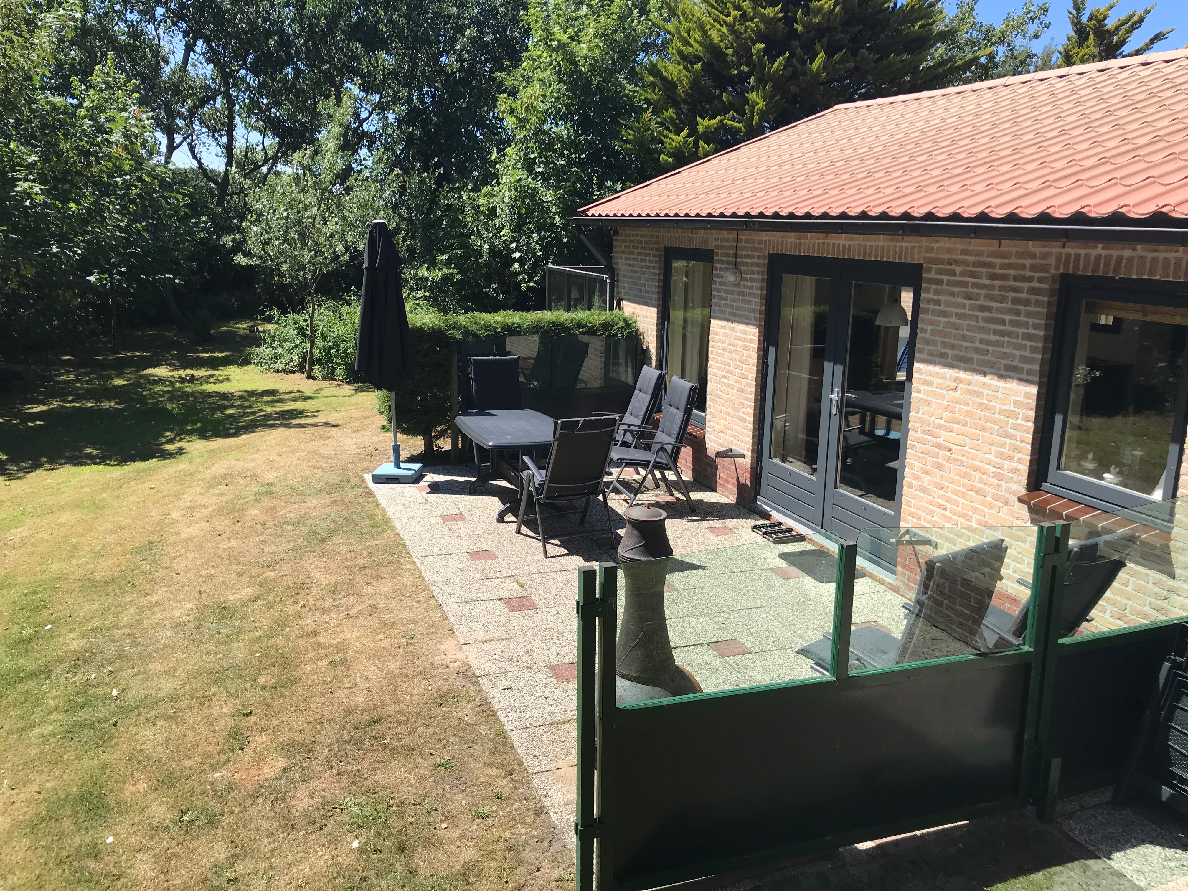 Der Garten umgibt das Haus und bietet dank dichter Bepflanzung viel Privatsphäre. Die Süd- und Westterrassen sind jeweils mit Tisch und Stühlen ausgestattet und laden zu sonnigen Stunden im Freien ein. WLAN, bezogene Betten sowie ein Parkplatz direkt am Haus gehören ebenfalls zur Ausstattung.