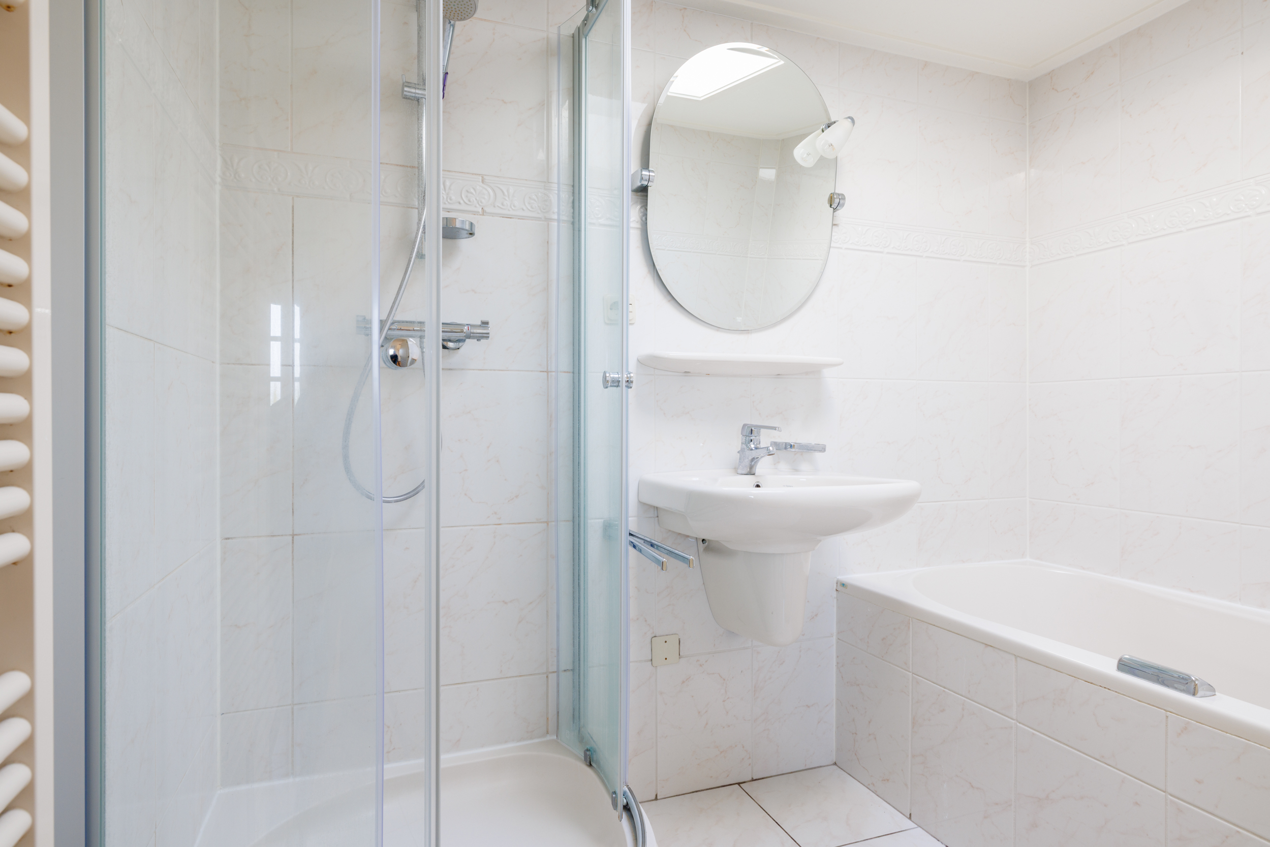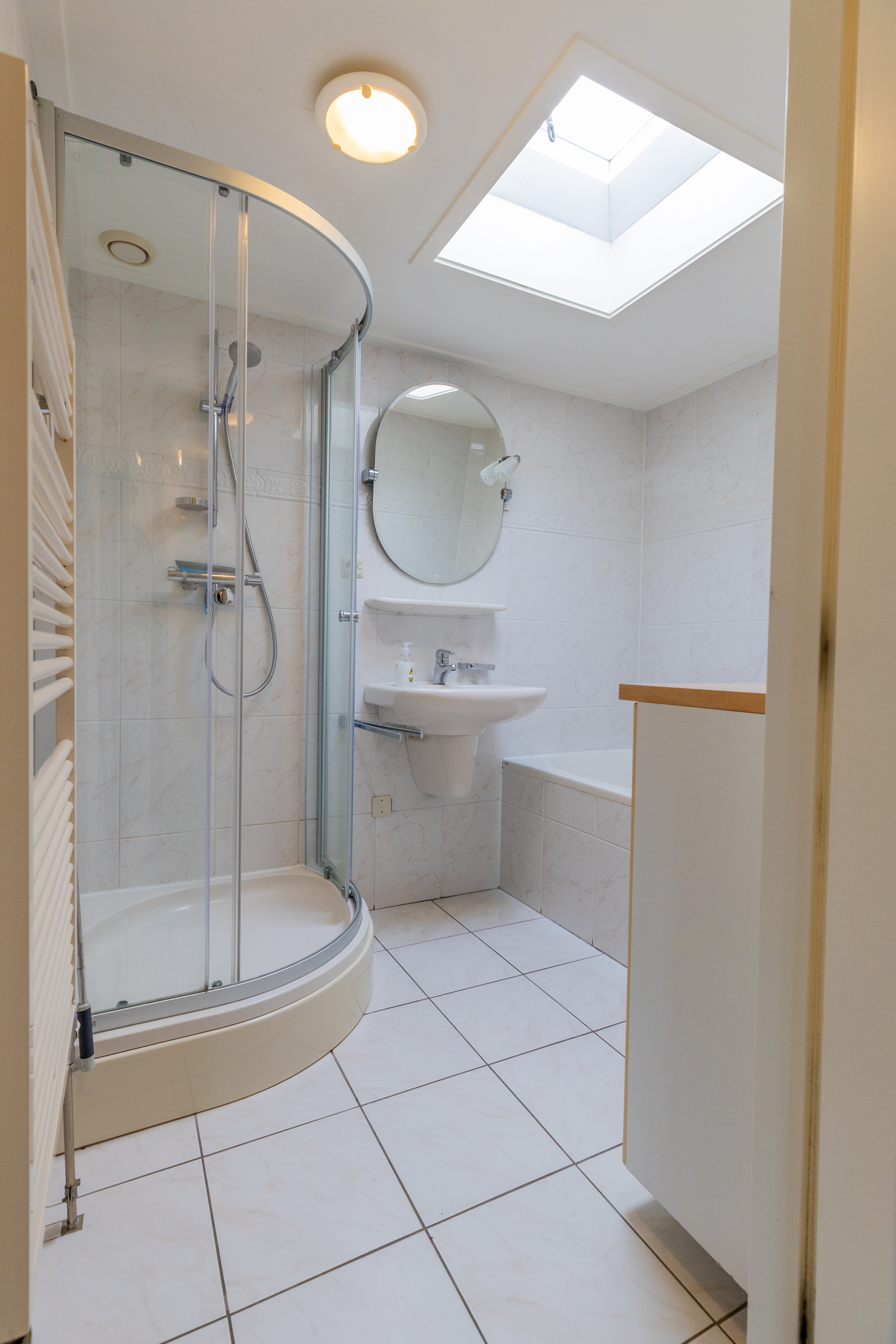De badkamer van circa 6 m² is compleet ingericht met een bubbelbad, douche en wastafel. Daarnaast is er een apart toilet in de hal.