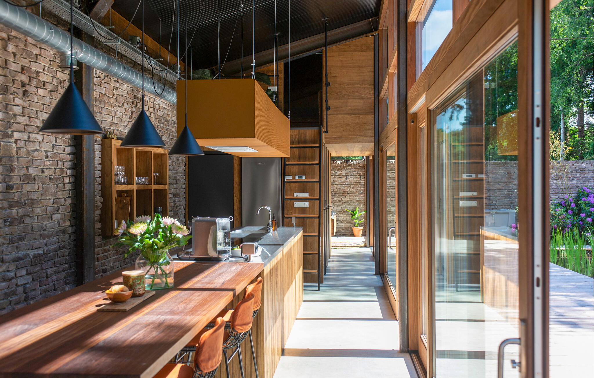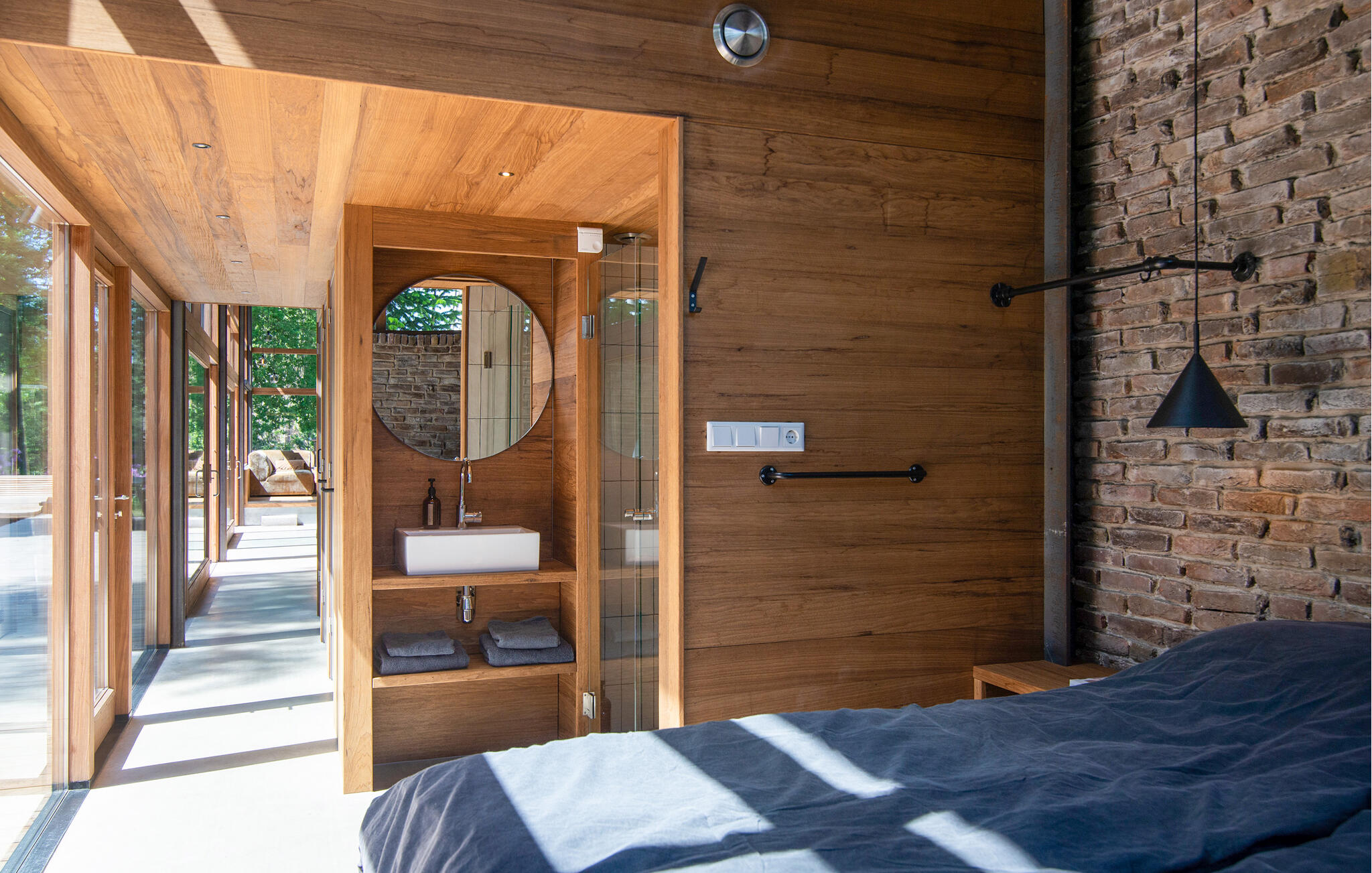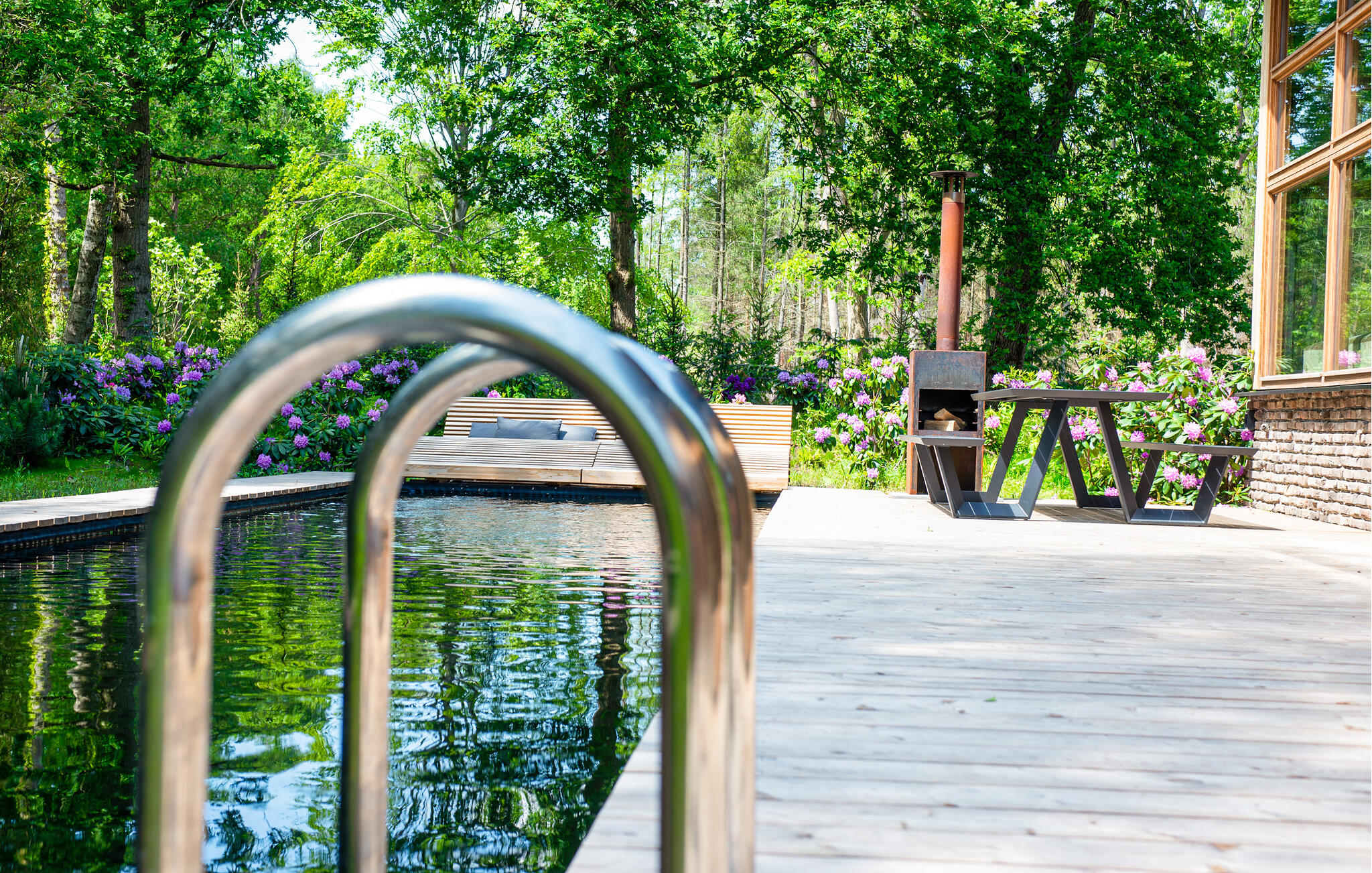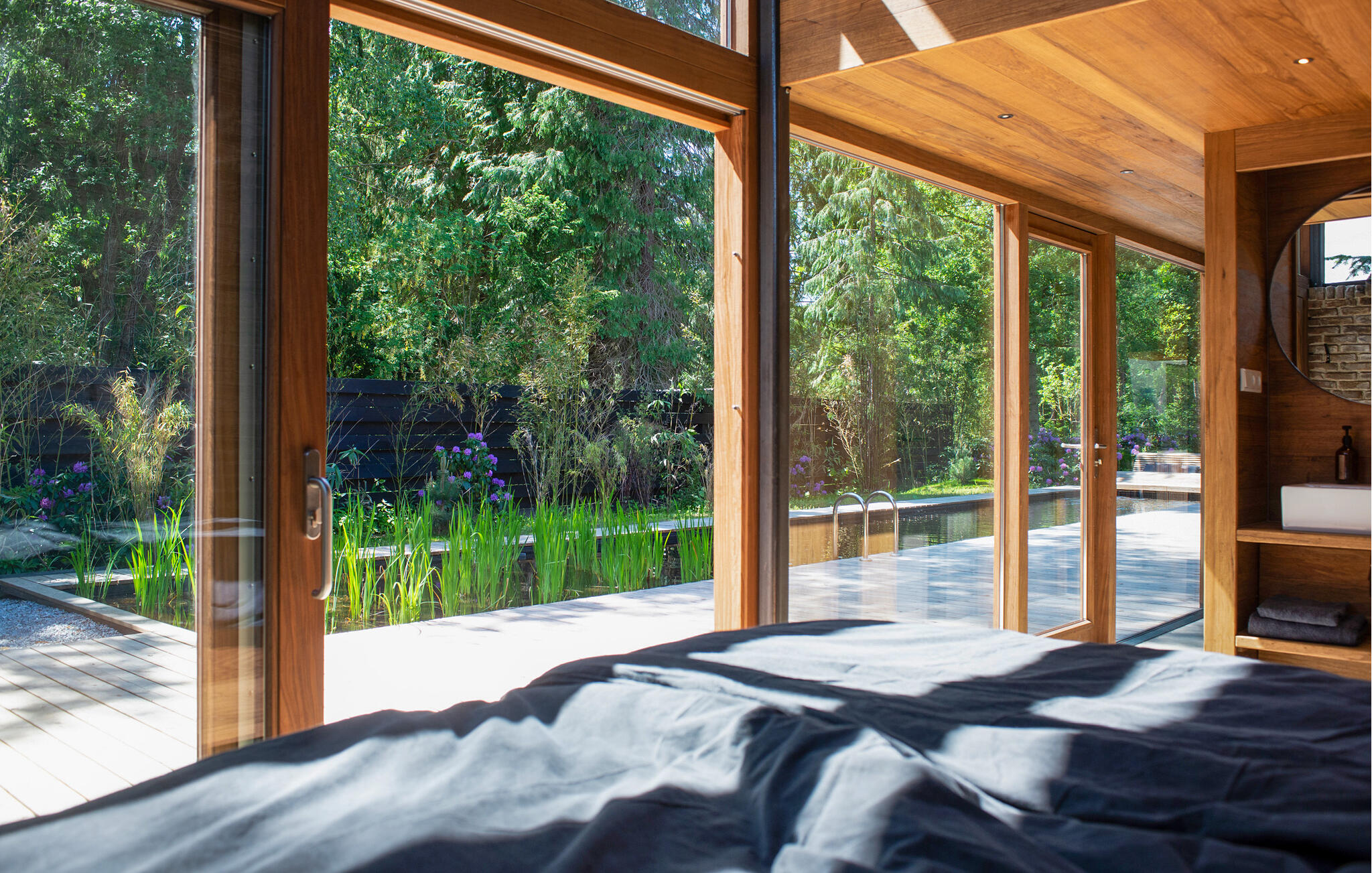 Nyd jeres ophold i dette exceptionelle hus, der på imponerende vis kombinerer moderne arkitektur med rolige naturlige omgivelser. Sæt jer godt til rette i den rummelige sofa i opholdsstuen, der er placeret lige foran gulv-til-loft-vinduerne. Brug den centralt monterede pejs til hyggelige aftener og se flammerne varme det åbne rum op. Tilbered måltider i det stilfulde køkken med dets lange arbejdsbord og integrerede morgenmadsbar, eller saml jer omkring det store træbord til fælles måltider. Tag jer tid til at læse eller nyde udsigten, som kan nydes fra næsten hvor som helst i opholdsstuen. Udenfor kan I slentre langs de brede trægange, der snor sig elegant omkring poolen. Vælg en plads på solterrassen eller slap af på loungebænken ved vandet for at slappe af i slutningen af dagen. Den frodige landskabspleje og den høje naturstensmur skaber en privat atmosfære, ideel til rolige øjeblikke udenfor. Besøg MORE Museum med dets imponerende samling af hollandsk modernisme. Tag en cykeltur gennem skovene i Veluwezoom Nationalpark eller vandr langs IJssel-floden, hvis bredder er smukke i alle årstider. Besøg Deventer med dens historiske gamle bydel og charmerende butikker, eller nyd regionale specialiteter på caféerne i Gorssels landsbycentrum.