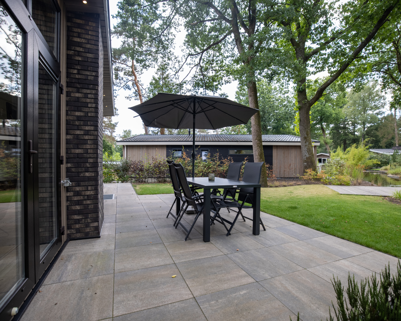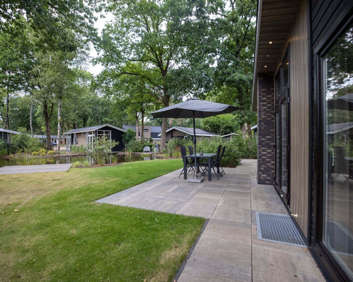 Deze vakantiewoning is aan een vijverpartij gelegen. Vanaf uw eigen terras of vlonder geniet u van het uitzicht over het water en de groene omgeving.