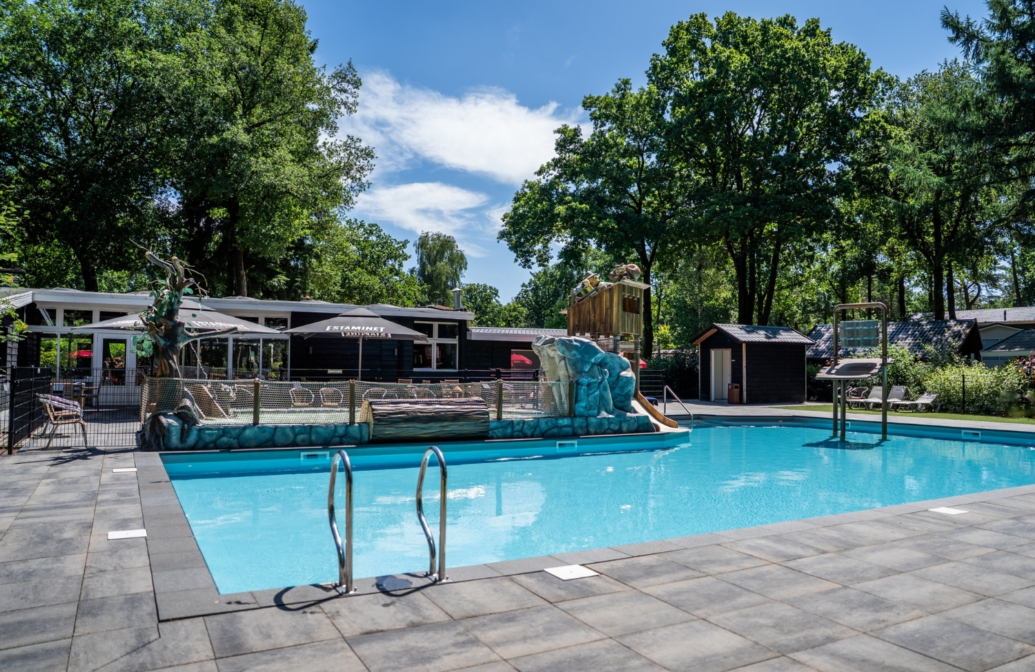 Dieser Ferienpark liegt in den Wäldern von Hoenderloo mitten in der Veluwe, weniger als 3 km vom Nationalpark Hoge Veluwe entfernt. Hier finden Gäste ein umfangreiches Angebot an Luxus-Ferienhäusern. Dank der vielseitigen Umgebung gibt es viele Möglichkeiten für einen wunderschönen Urlaub auf der Veluwe. Der Park bietet Einrichtungen für Jung und Alt. Es gibt ein beheiztes Freibad und ein Planschbecken für Kinder, verschiedene Spielgeräte sowie Verpflegungsmöglichkeiten und Unterhaltung während der Schulferien. Es besteht auch die Möglichkeit, an der Rezeption Fahrräder zu mieten. Wer diesen Park mit seinem Hund besucht, kann einen schönen Spaziergang auf der Veluwe unternehmen. Folgende Freilaufgebiete erwarten Sie: Kootwijkerduin, Harskamp, `t Leesten und die Speulder- und Sprielderbos. Vom Park aus können Sie die einzigartige Umgebung mit dem Auto, dem Fahrrad oder zu Fuß erkunden.