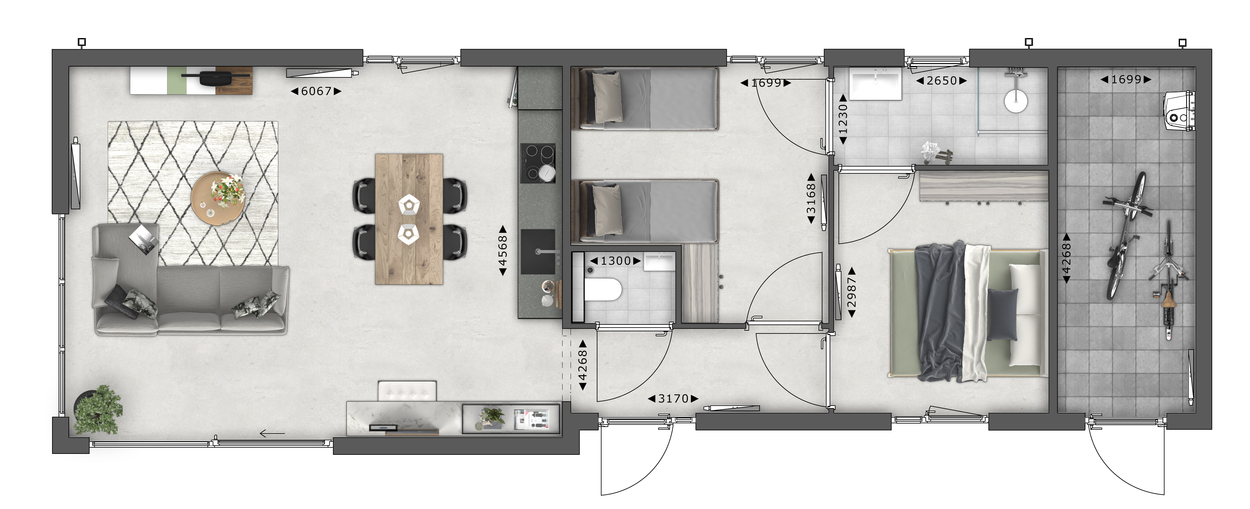 Die Ferienvilla Amalia 4 ist ein modernes Ferienhaus für bis zu 4 Personen und bietet mit einem großzügigen Wohnzimmer und offener Küche den idealen Rahmen für entspannte Urlaubstage. Große bodentiefe Fenster und eine Schiebetür lassen viel Tageslicht herein und schaffen eine helle, freundliche Atmosphäre, in der man sich sofort wohlfühlt.