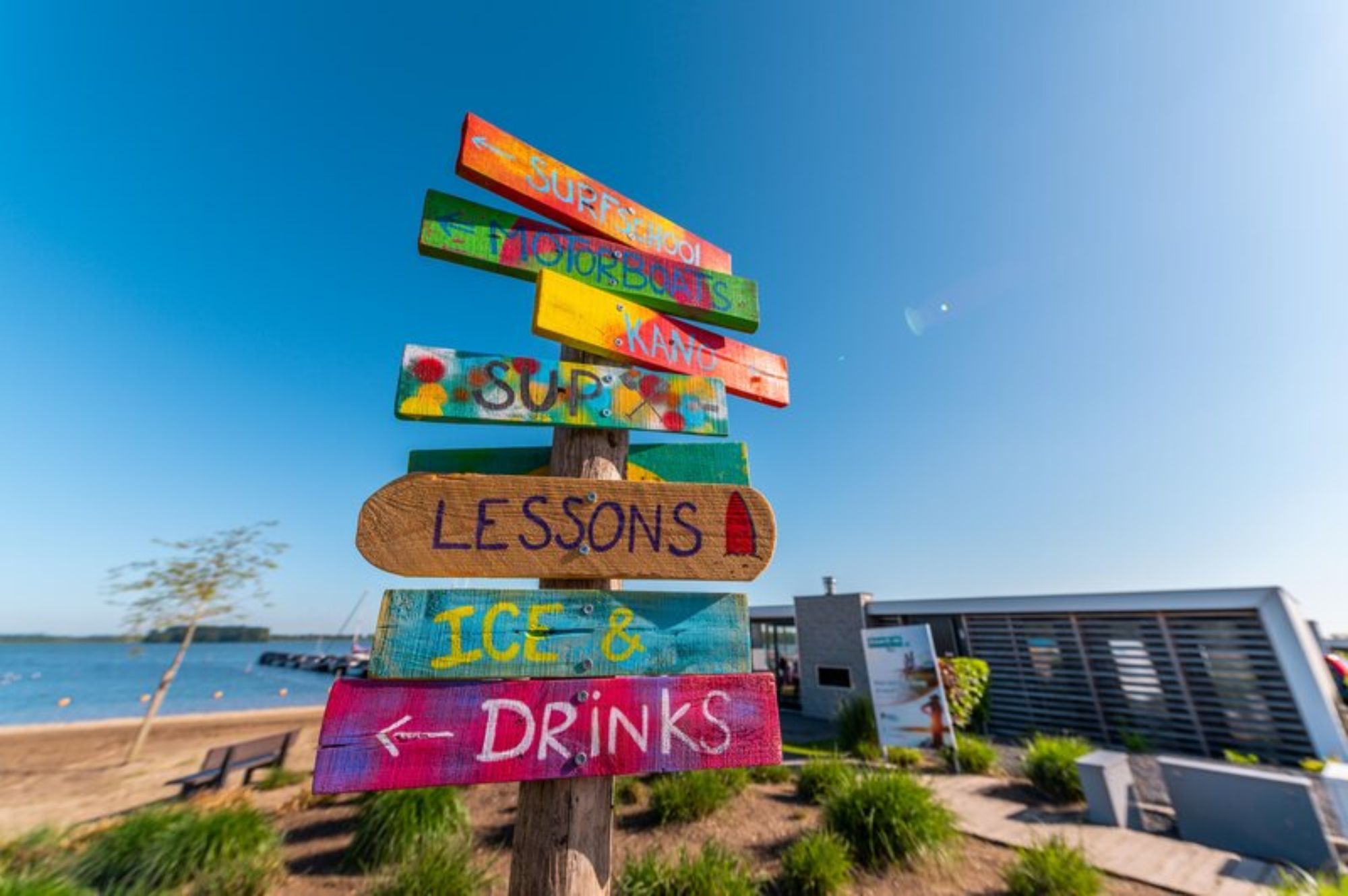 Erkunden Sie das glitzernde Wasser des Veluwemeer. Dieser Ferienpark am Veluwemeer bietet eine Vielzahl von Attraktionen. Naturliebhaber werden von der atemberaubenden Umgebung des Parks begeistert sein. Weitläufige Polder, malerische Wälder und ausgedehnte Heidelandschaften – die Landschaftsvielfalt in der Umgebung von Nunspeet ist beeindruckend. Von Nunspeet aus können Sie endlose Rad- und Wandertouren durch die weitläufigen Wälder in der Nähe von Vierhouten, Elspeet und Epe unternehmen. Sehenswert sind auch die Sandebenen der Veluwe, wie Hulshorster Zand und De Haere Doornspijk. Im großzügigen Freibad können Sie sich an heißen Tagen abkühlen, schwimmen und sonnenbaden. Es ist geschlossen vom 1. Oktober bis 31. März oder bei kaltem Wetter. Der Strand am Veluwemeer ist nur wenige Gehminuten vom Ferienpark entfernt. Verbringen Sie einen sonnigen Tag am Strand oder machen Sie einen entspannten Spaziergang: Das Wasser des Sees ist flach und somit ideal für Kinder. Leider sind Hunde am Strand nicht gestattet. Der Ferienpark bietet eine einzigartige Lage für Wassersport und Erholung auf dem Wasser. Probieren Sie Windsurfen, Kanufahren oder leihen Sie sich ein Tretboot aus. Im Wassersportzentrum Windy Waters können Sie (während der Ferienzeiten) an verschiedenen Aktivitäten, Kursen und Privatstunden mit einem erfahrenen Lehrer teilnehmen. Erleben Sie einen Tag auf dem Veluwemeer mit einem Boot. Segeln Sie zu den schönen Stränden oder den verschiedenen Inseln im See. Erkunden Sie die Gegend mit Fahrrädern oder E-Choppern, die am Park gemietet werden können. Fragen Sie an der Rezeption nach Wander- und Radwegen in der Umgebung. Das Restaurant auf dem Park bietet köstliche Gerichte für jedermann, zubereitet mit frischen Produkten. Auch an die Kinder wird gedacht: Während der (Schul-)Ferien bietet der Park Unterhaltungsaktivitäten für alle Altersgruppen. Der Park organisiert sportliche Aktivitäten, aber auch tolle Shows und kreative Bastelaktivitäten. Außerdem gibt es verschiedene interaktive Spielgeräte, die das Spielen im Freien auf ein ganz neues Niveau heben. Hunde sind im Park herzlich willkommen! Praktisch: Für die Beseitigung von Hundekot gibt es spezielle Kotbeutel. So bleibt der Park für alle sauber. In der Umgebung des Parks gibt es viele Wanderwege und Naturparks für einen Spaziergang mit dem Hund. An Silvester ist das Feuerwerk auf dem Parkgelände nicht gestattet. Das Anzünden von Feuerwerkskörpern ist jedoch auf öffentlichen Straßen außerhalb des Parks gestattet. Daher sind im Ferienpark Geräusche von Feuerwerkskörpern aus der Umgebung zu hören.