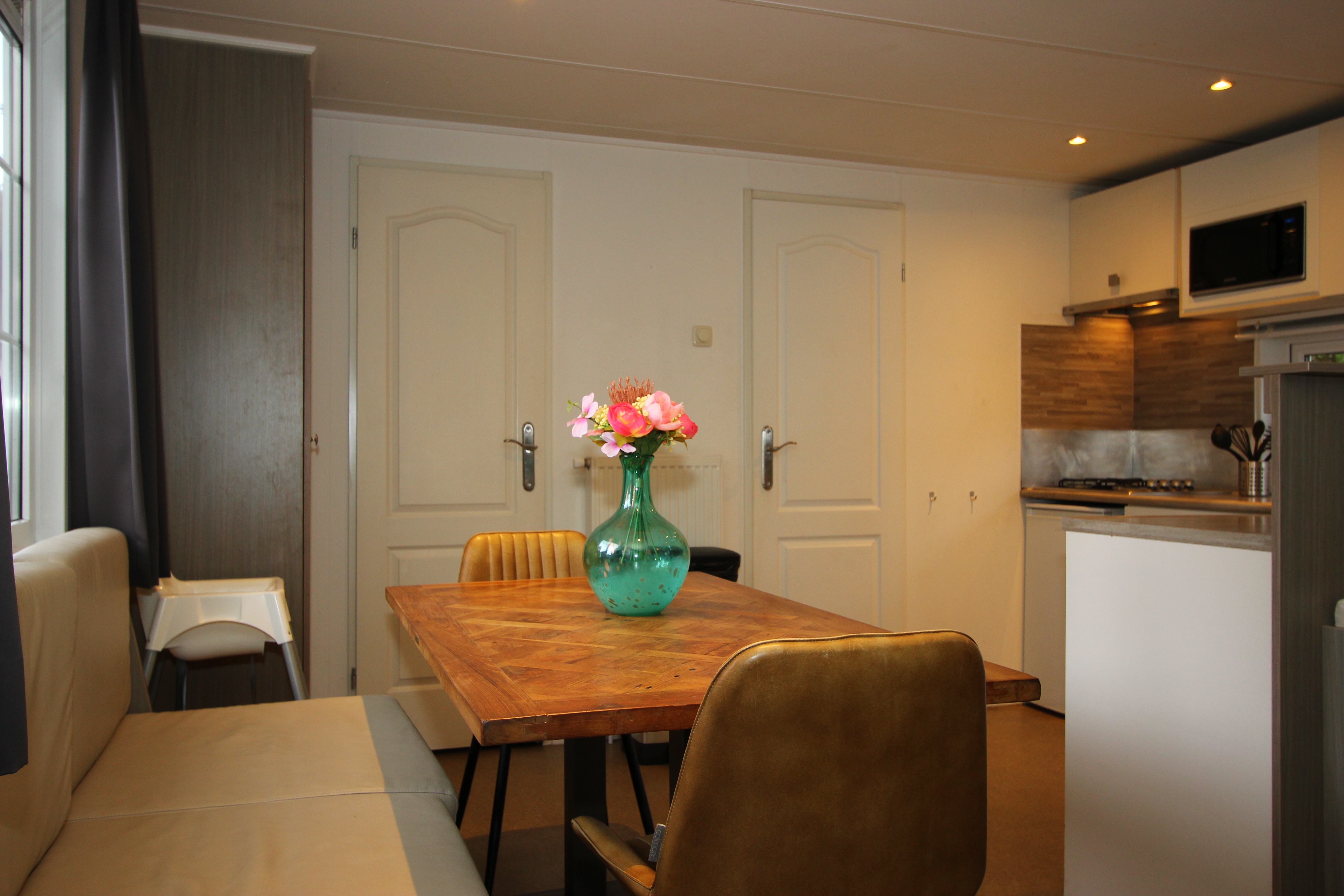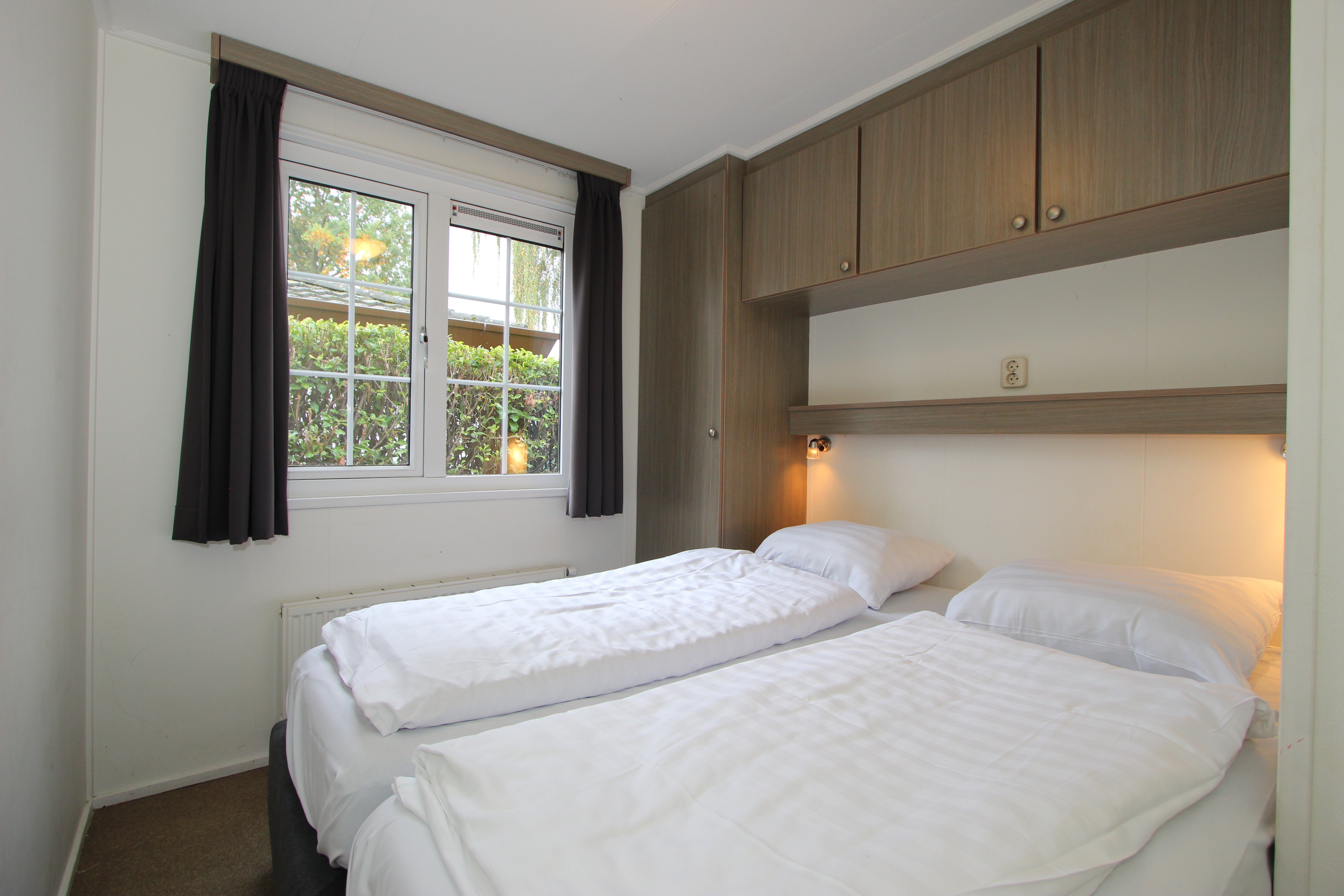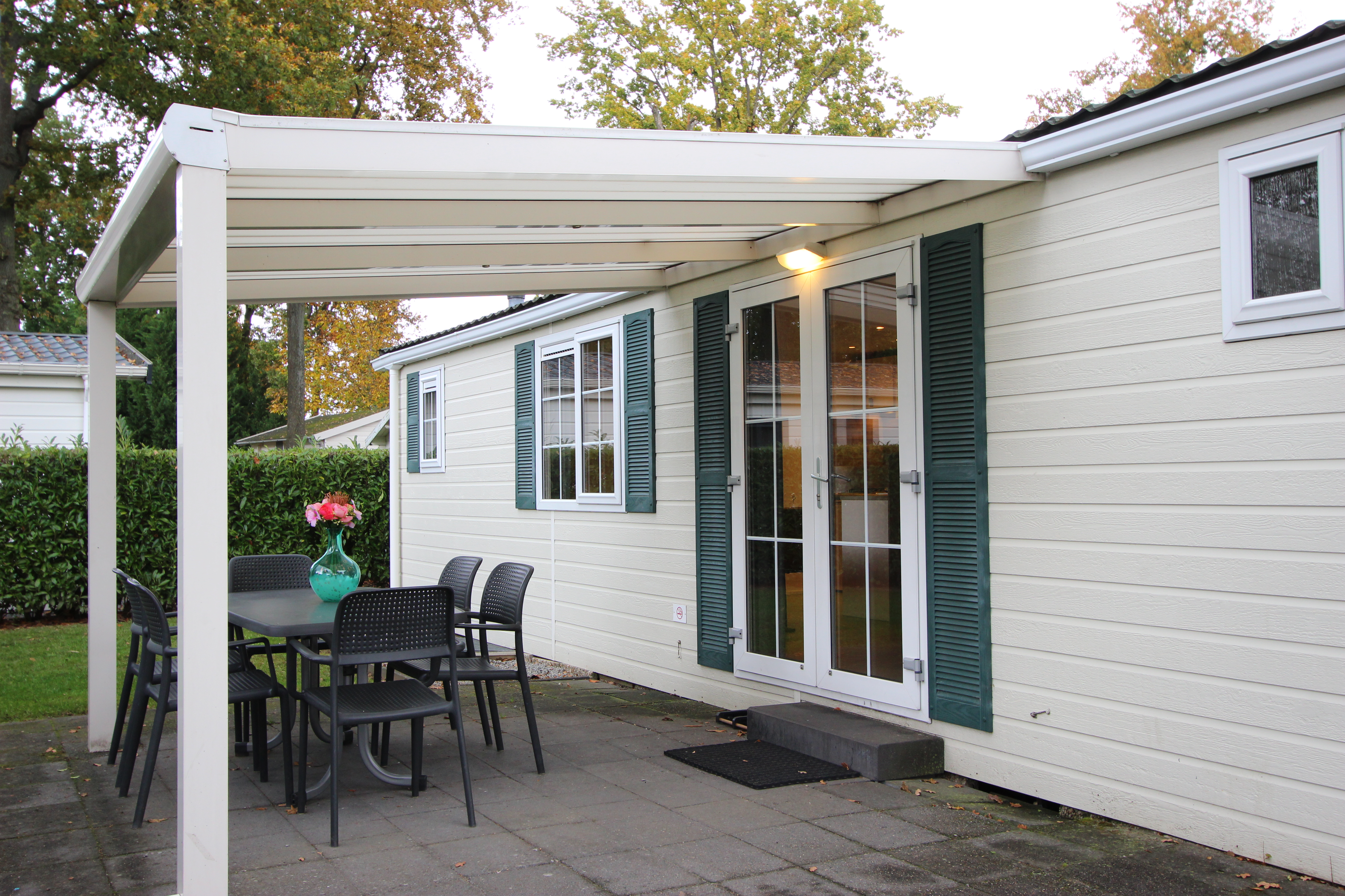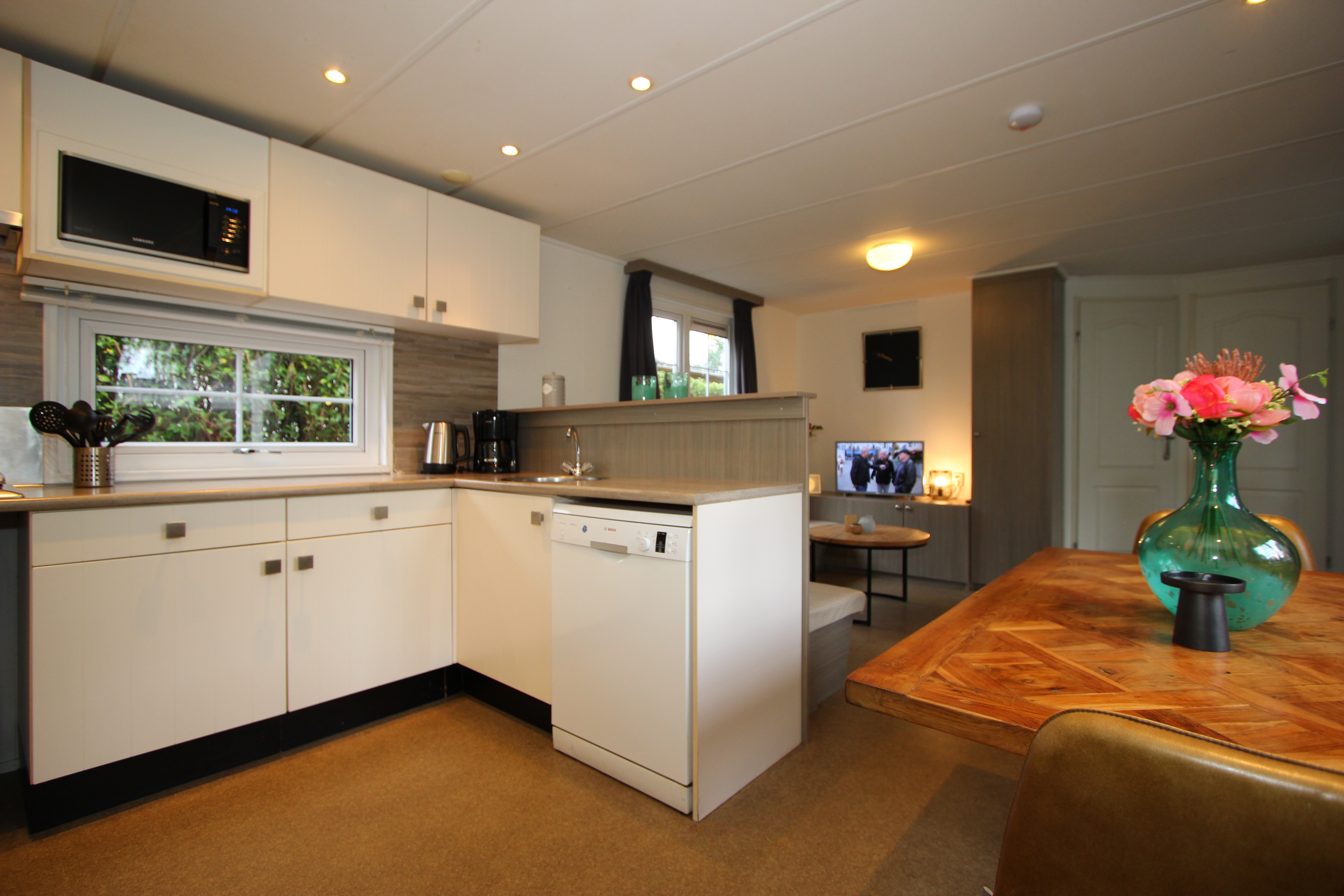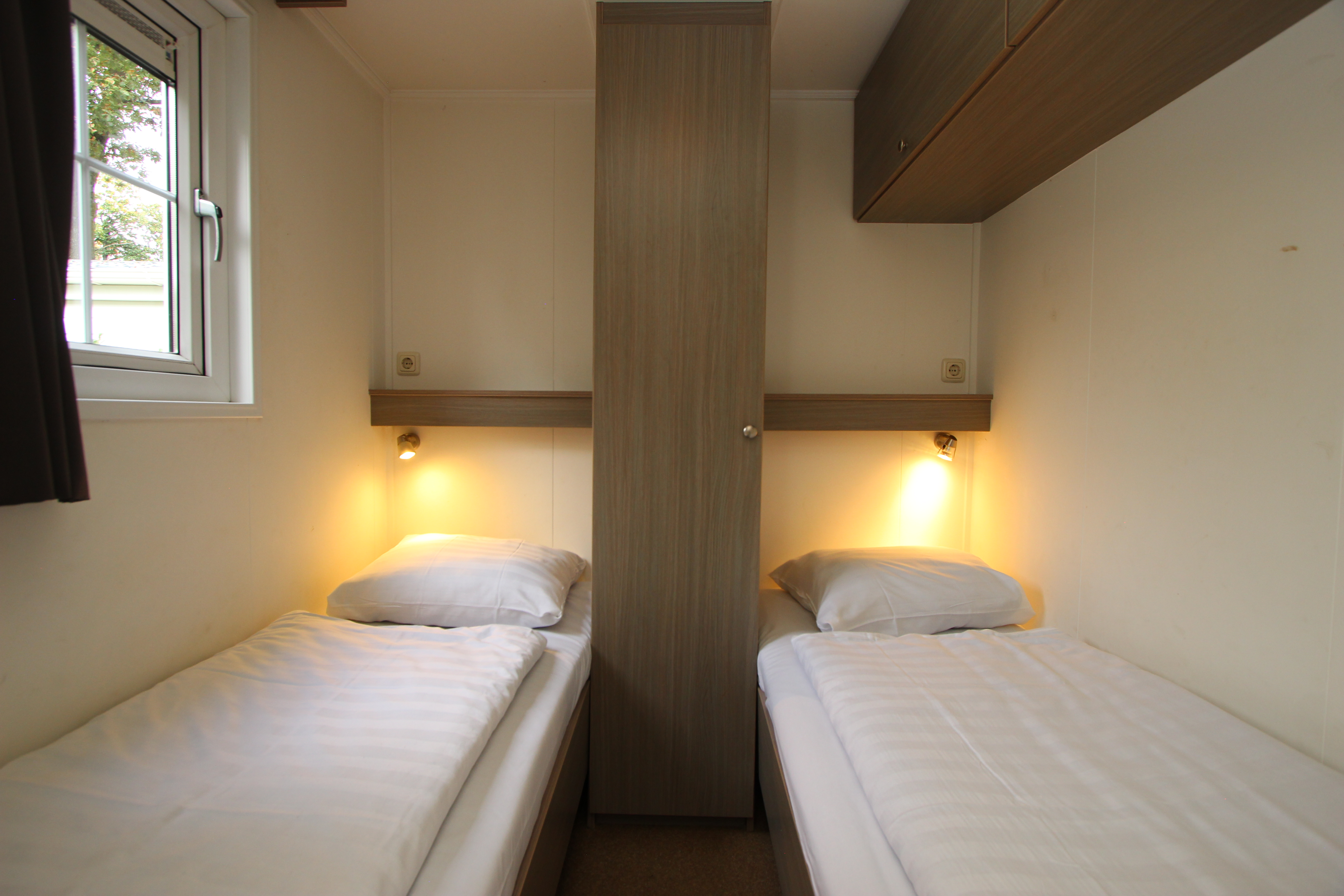 Berkel 6 ist ein freistehendes, ebenerdiges Chalet mit allen Annehmlichkeiten für einen entspannten Aufenthalt mit 6 Personen. Im Wohnzimmer befindet sich eine Sitzecke mit Fernseher, ein Essbereich und eine Küche mit Mikrowelle, Wasserkocher und Kaffeemaschine. Das Chalet hat 3 Schlafzimmer, 2 Schlafzimmer mit 2 Einzelbetten und 1 Schlafzimmer mit einem Etagenbett. Das Badezimmer hat eine Toilette, eine Dusche und ein Waschbecken. Im Außenbereich des Berkel 6 lädt eine möblierte, gemütliche Terrasse zum Verweilen ein. Am Haus befindet sich ein Parkplatz für ein Auto. Das WLAN ist kostenfrei nutzbar.