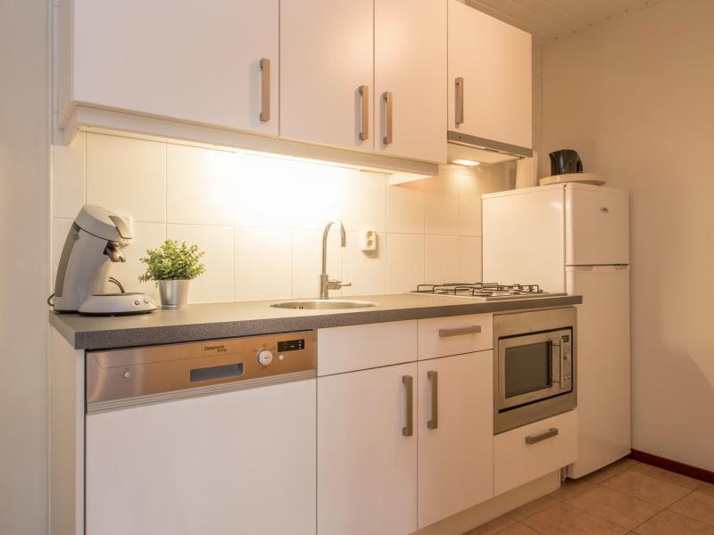 Parterre: Eingang, offene Küche mit Kochplatte, Wasserkocher, Kaffeemaschine(senseo pads), Kombi-Mikrowelle, Geschirrspüler, Kühlschrank, Tiefkühlschrank , Wohn/Esszimmer mit Esstisch, Sitzecke , Schlafzimmer mit Doppelbett , Badezimmer mit Dusche, Waschbecken, Toilette Garten(alleinige Nutzung, teilweise umzäunt), 1x Parkplatz(von außen erreichbar, auf allgemeinen Parkplatz)