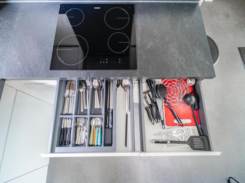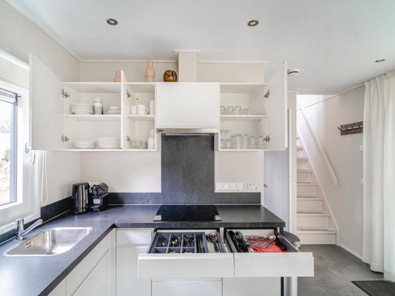 Parterre: offene Küche mit Kochplatte(4 Kochplatten, Induktion), Wasserkocher, Dunstabzugshaube, Kaffeemaschine(nespresso cups), Kombi-Mikrowelle, Geschirrspüler, Kühlschrank(+ Gefrierfach) , Wohn/Esszimmer mit TV(Flatscreen, smart TV), Esstisch, Sitzecke , Schlafzimmer mit Badezimmer mit Doppelbett(2 Einzelbetten, Zwei Einzelbettdecken), Dusche(ebenerdige Dusche, Regen), Waschbecken, Toilette, Heizung(elektrisch) , Toilette mit Toilette , Klimaanlage